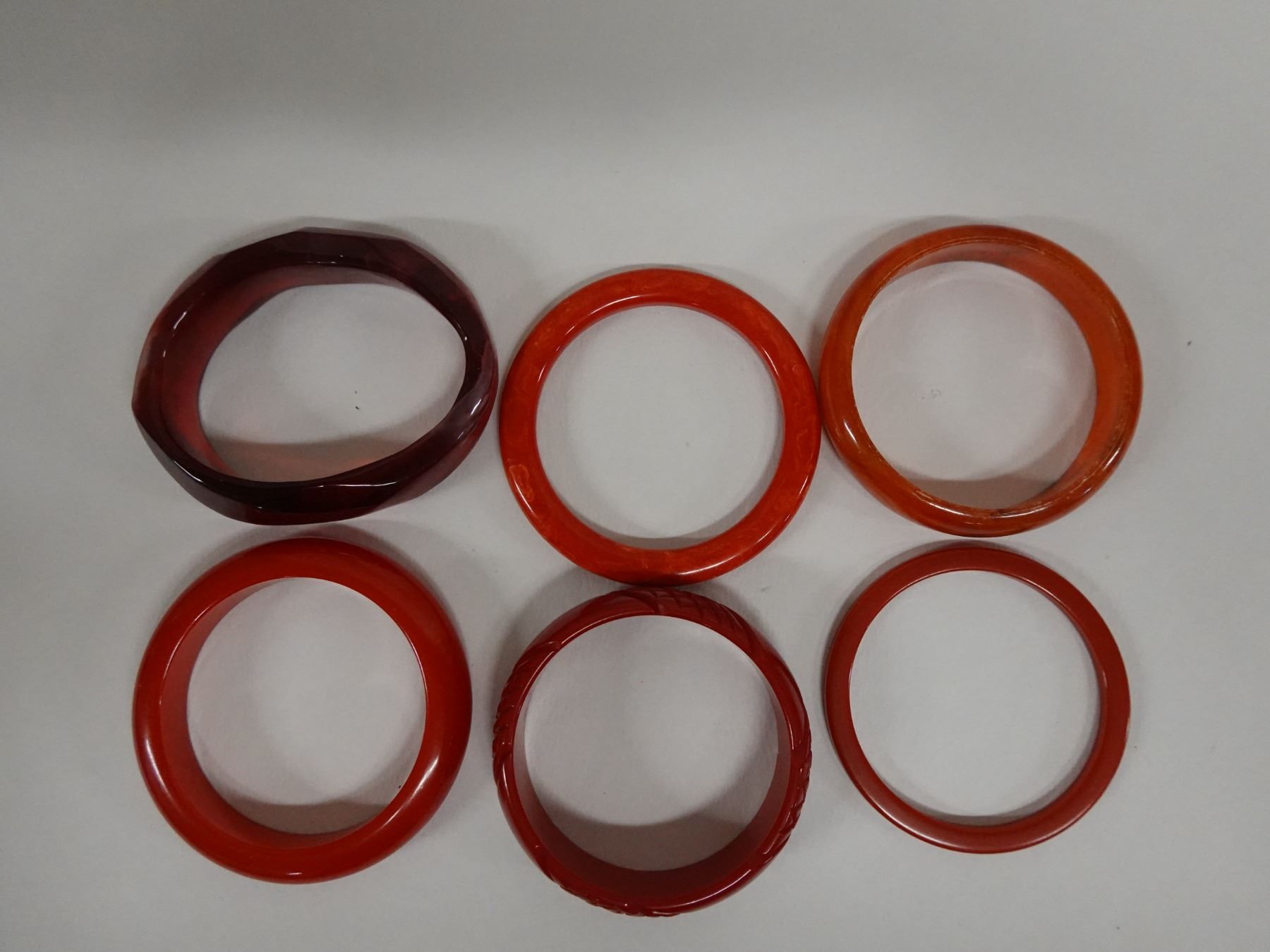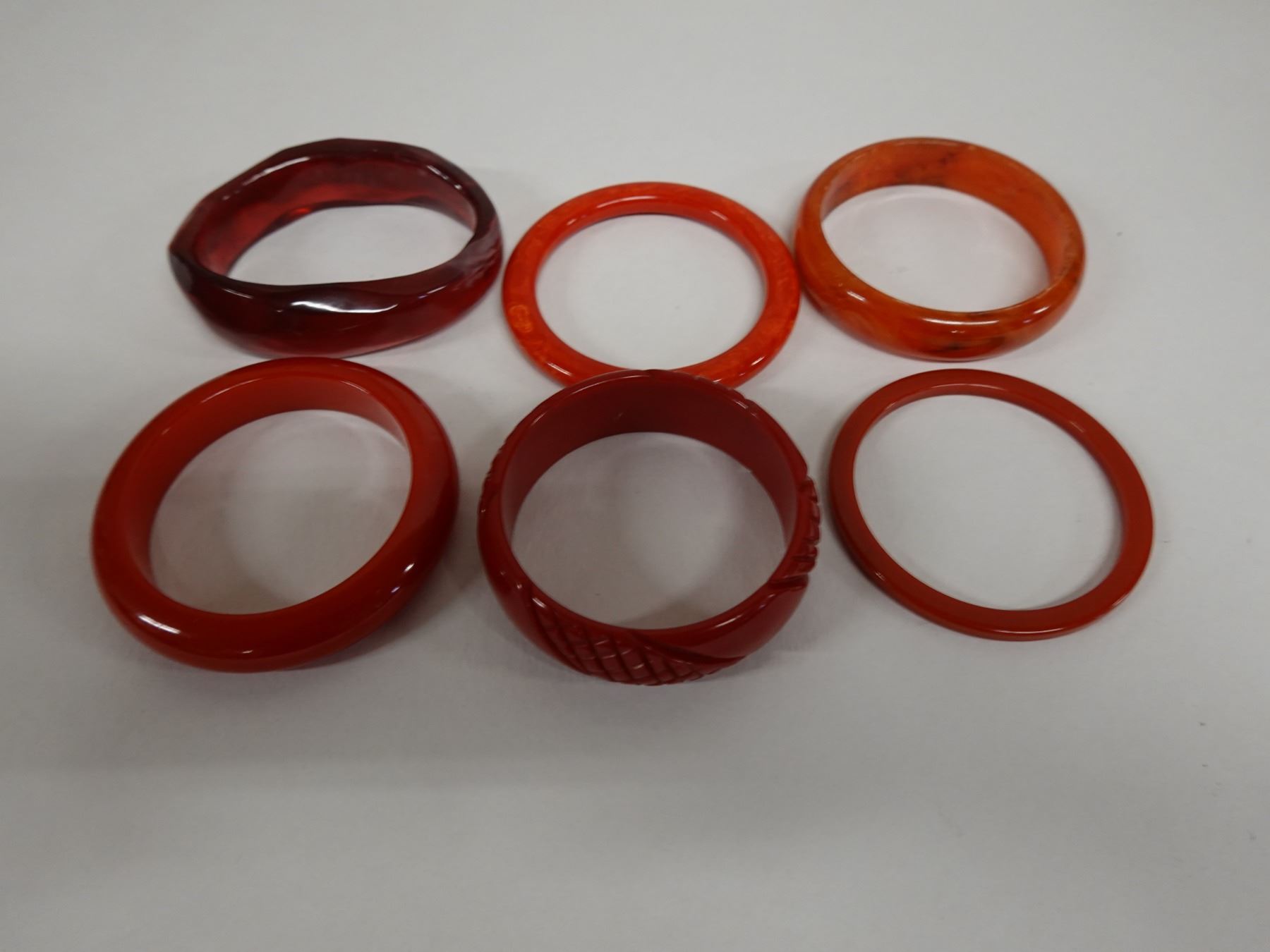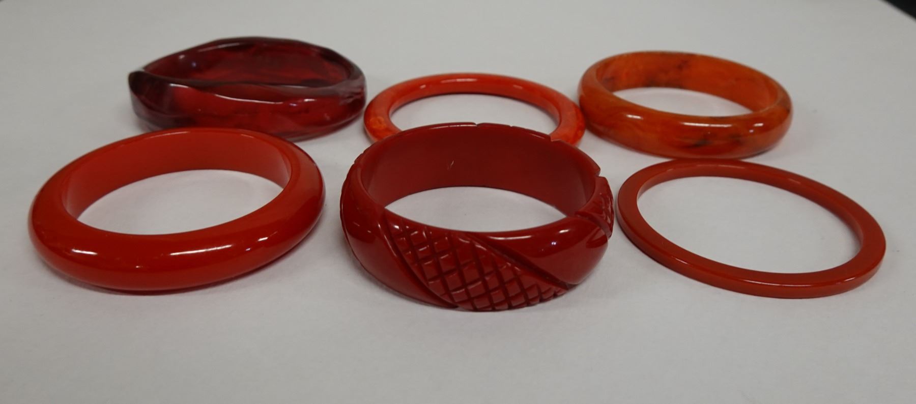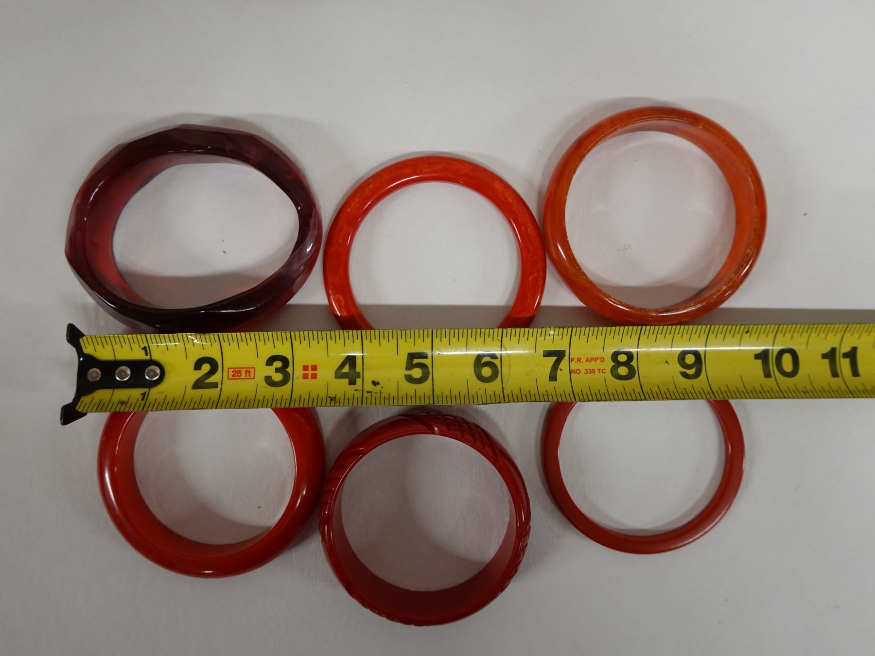 Qty 6 Red Bangle Bracelets, Misc Styles & Sizes