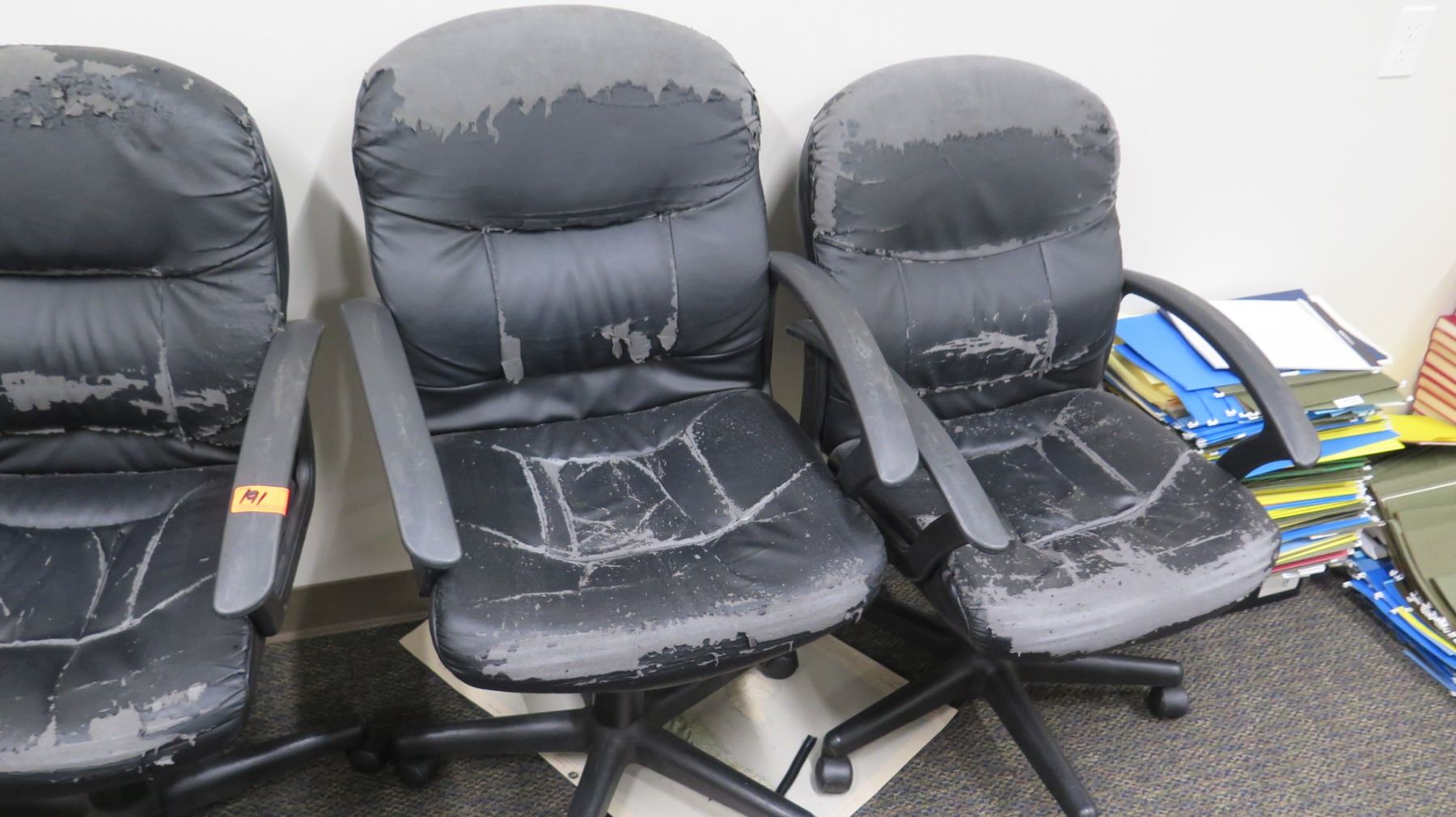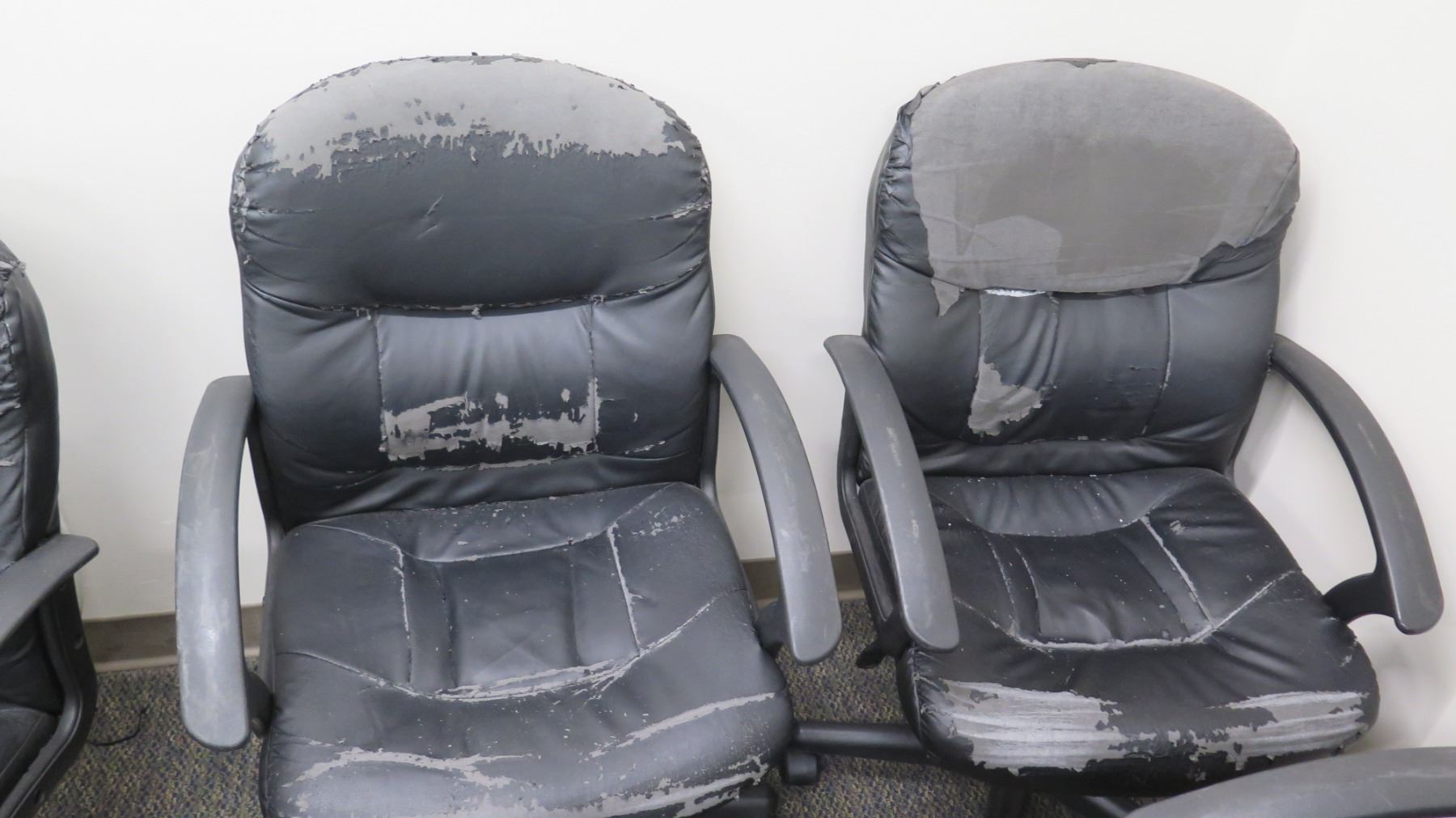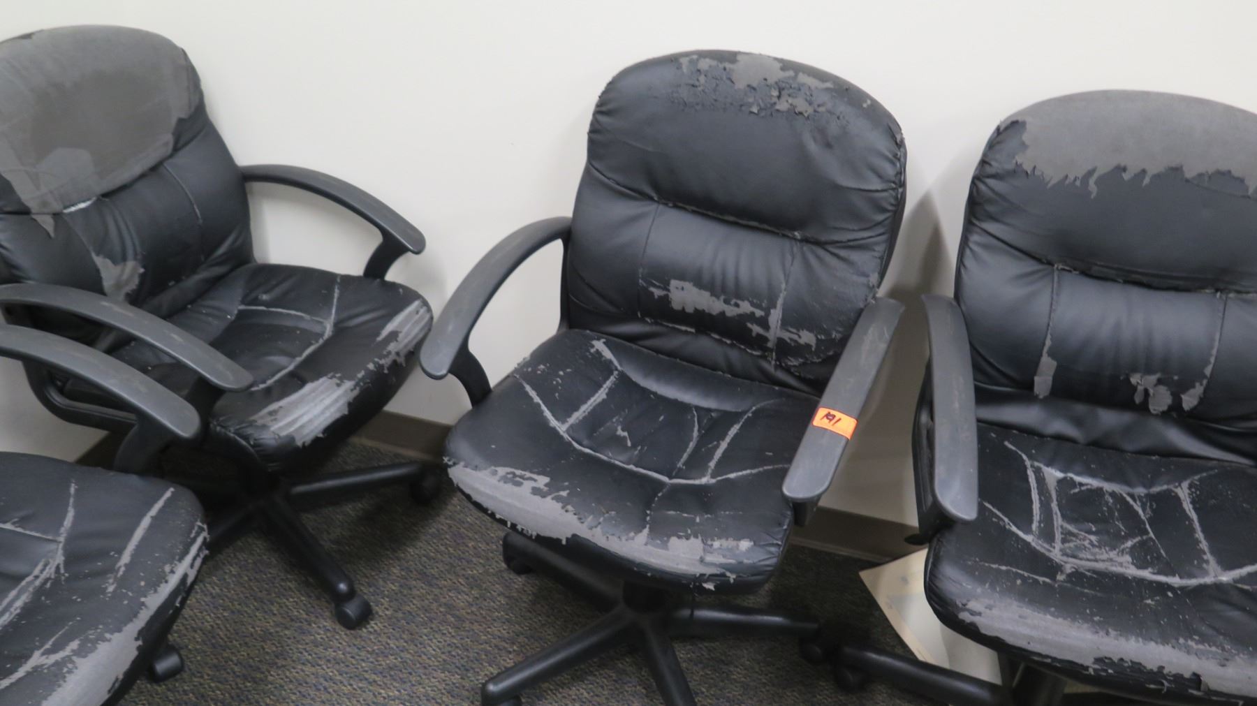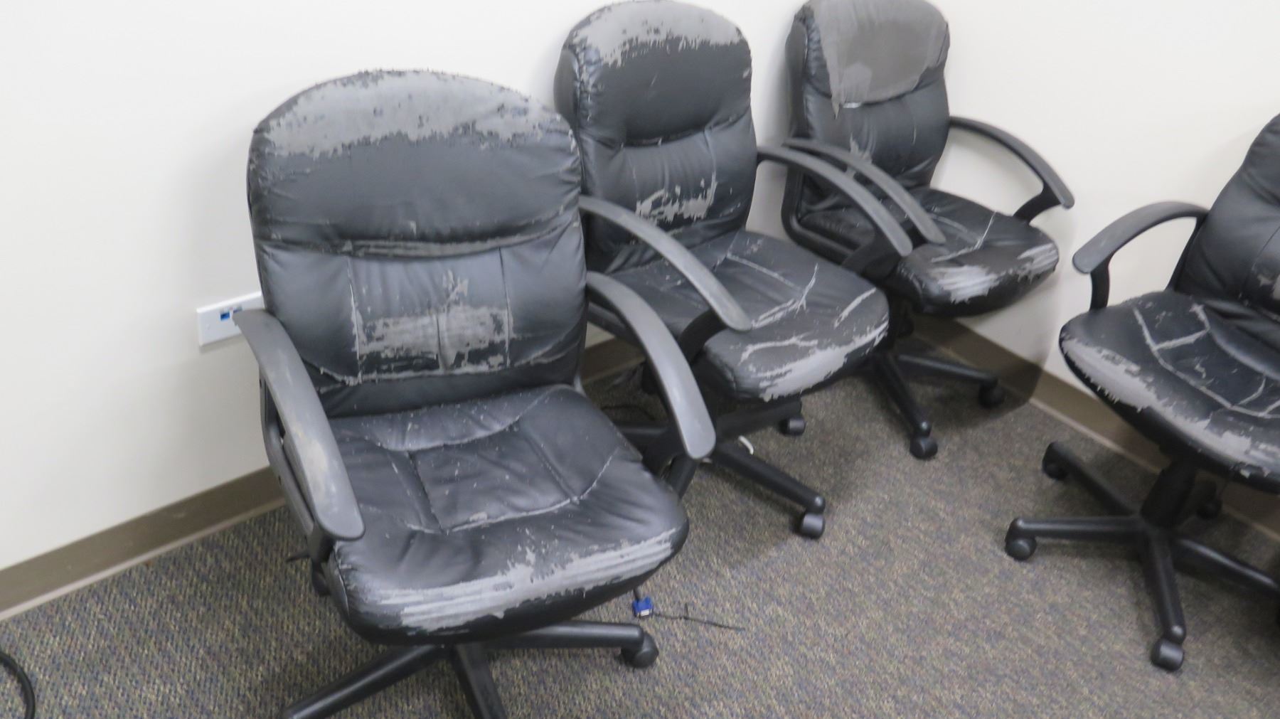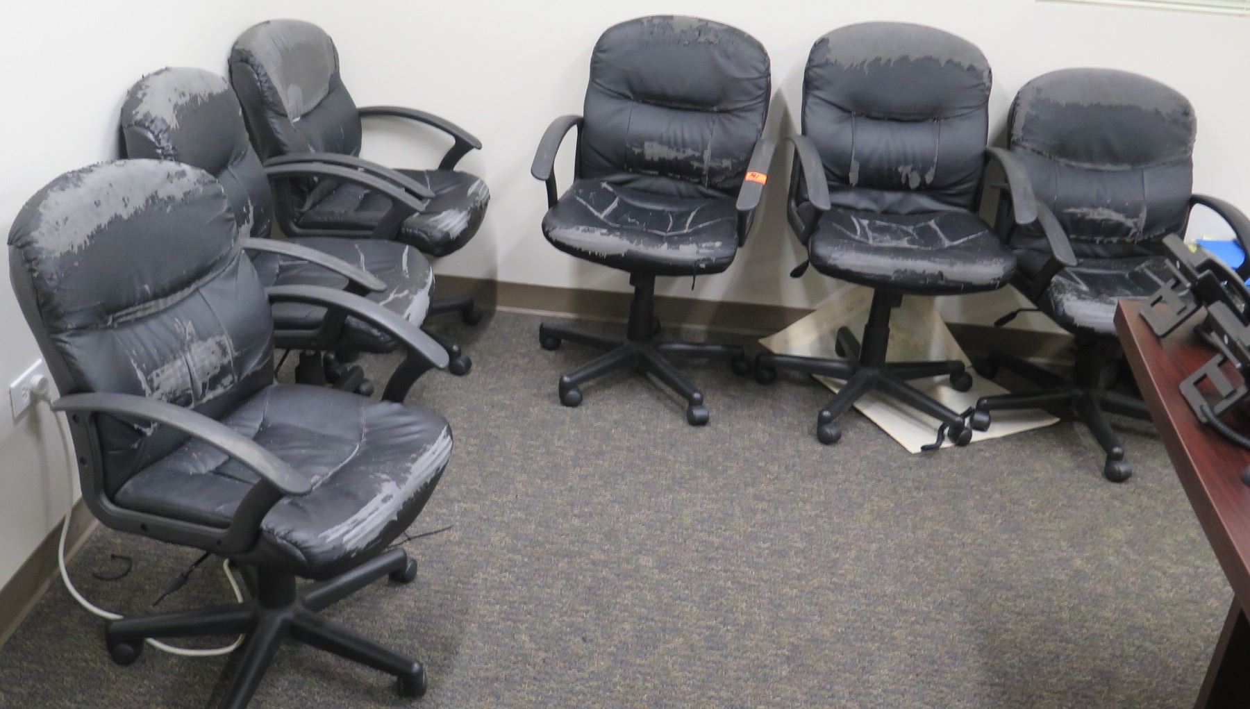 Qty 6 Rolling Black Office Chairs on Wheels (Shows Some Wear)