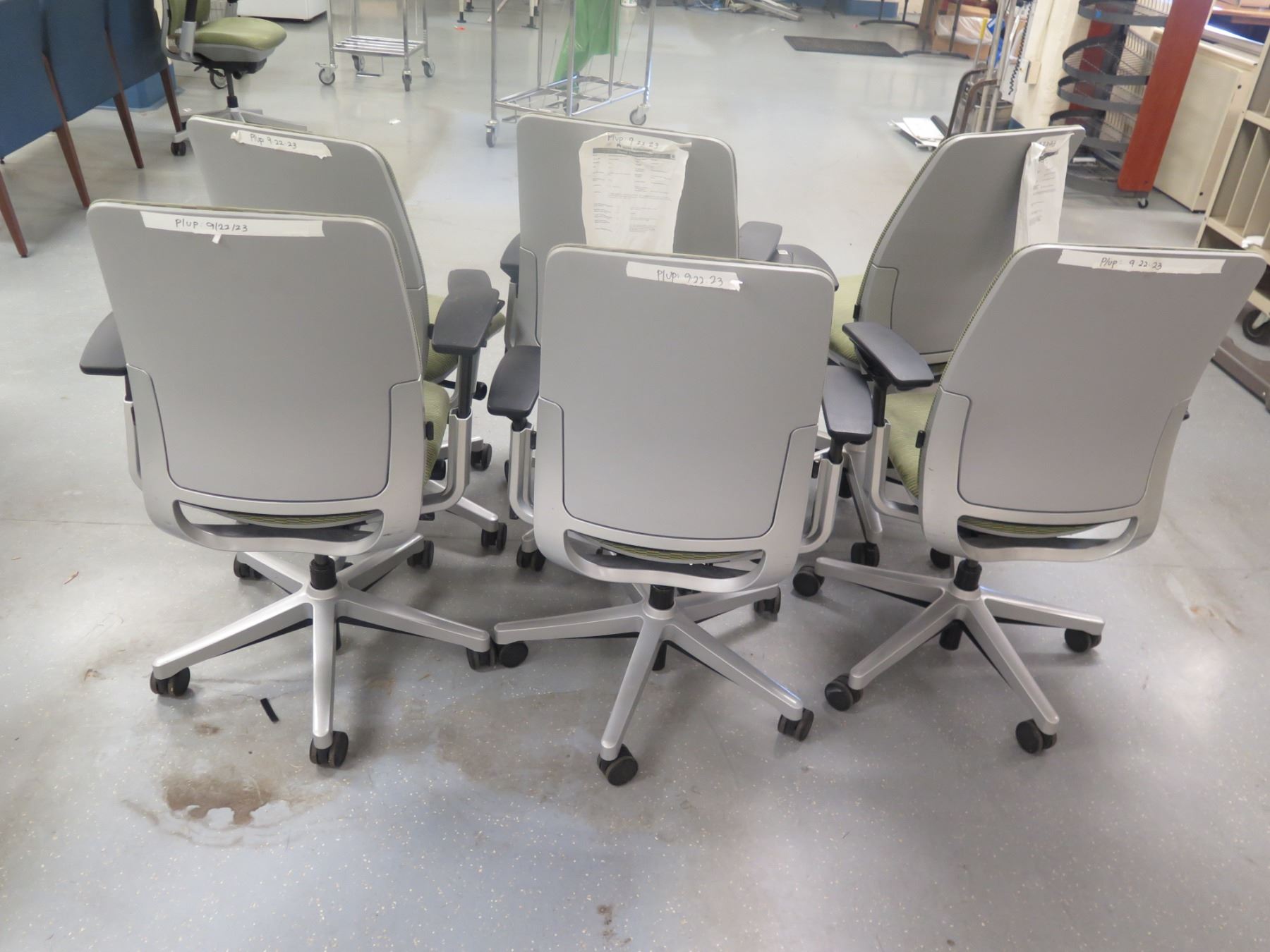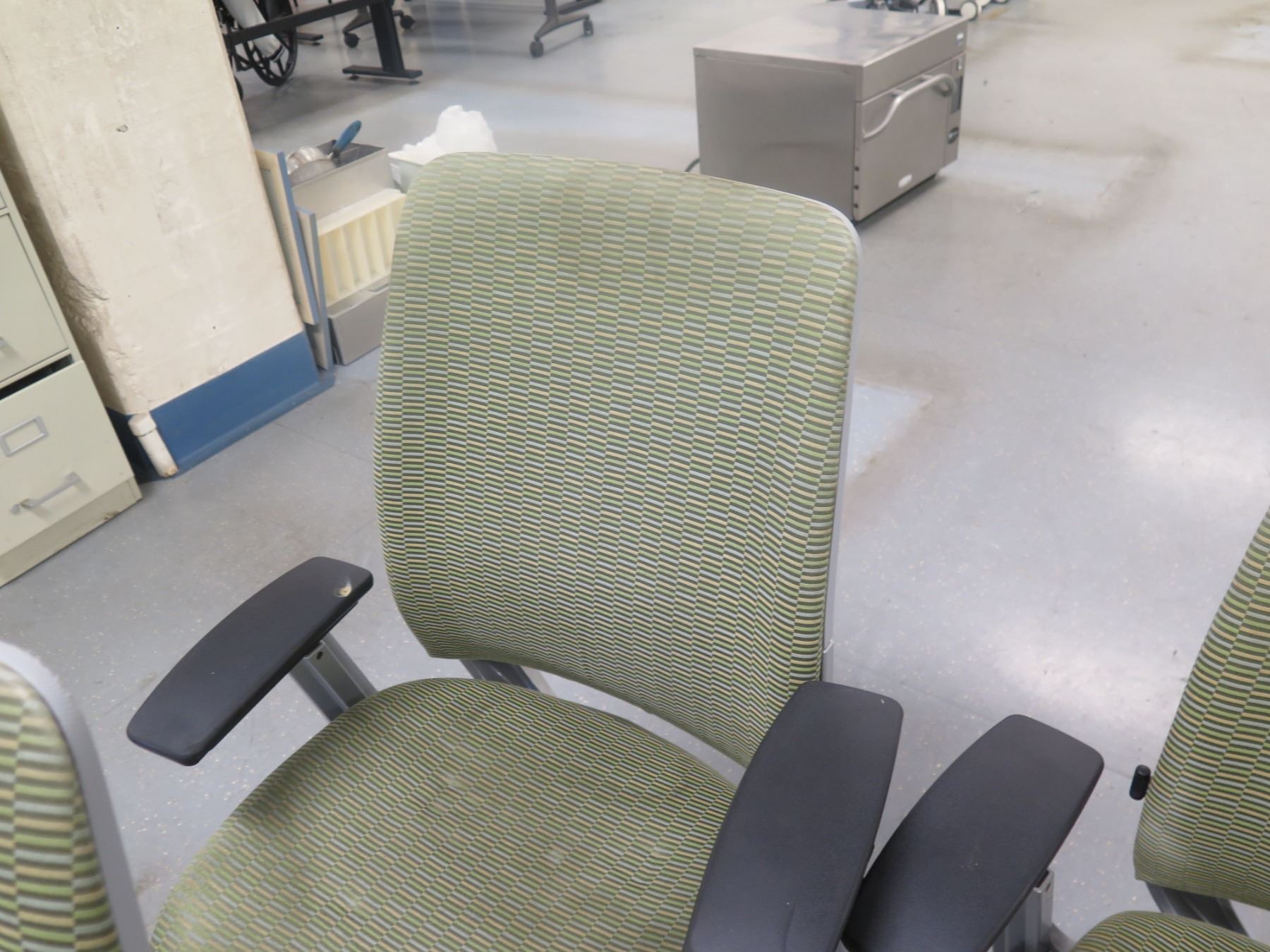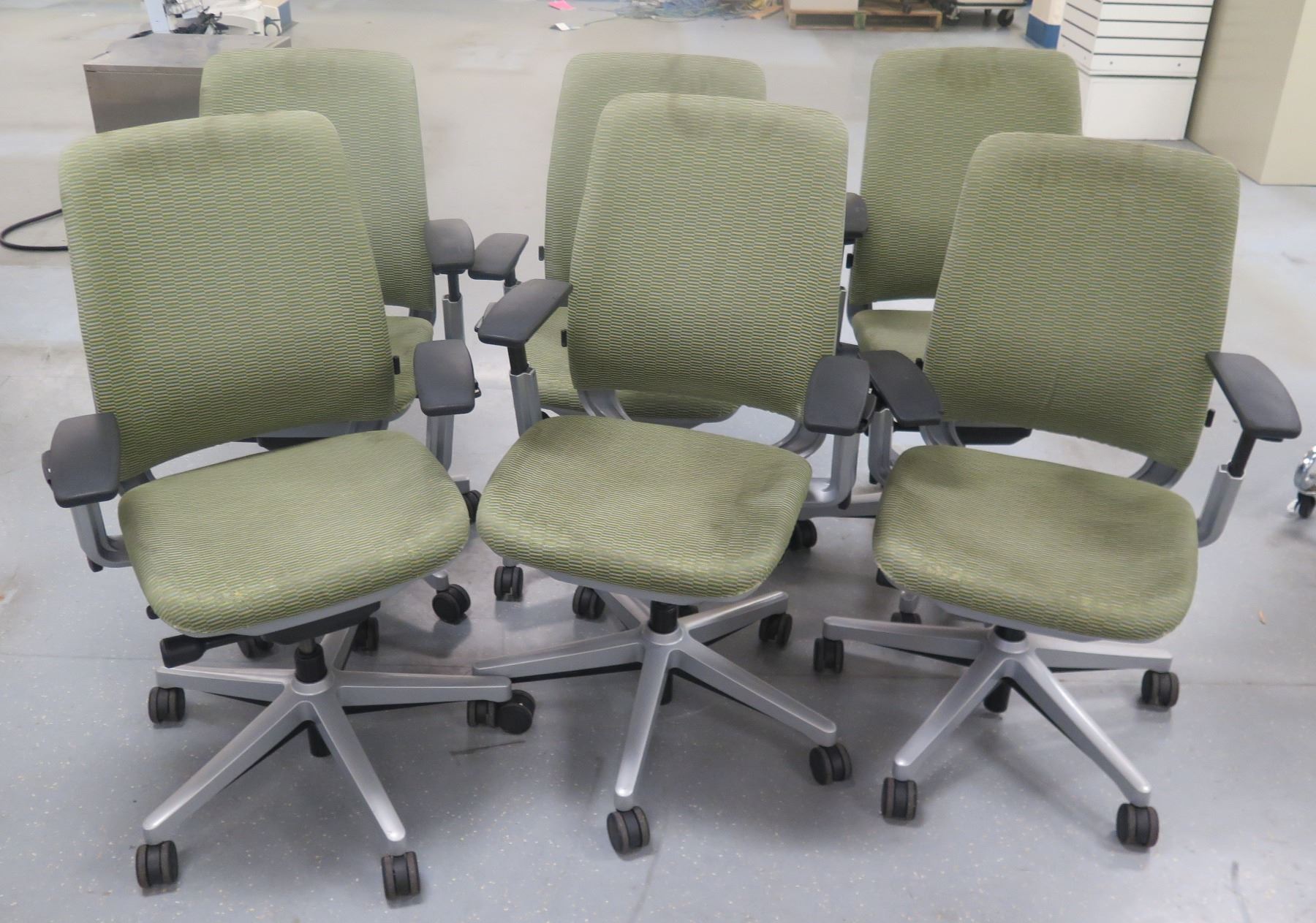 Qty 6 Rolling Office Armchairs w/ Upholstered Backs & Seats
