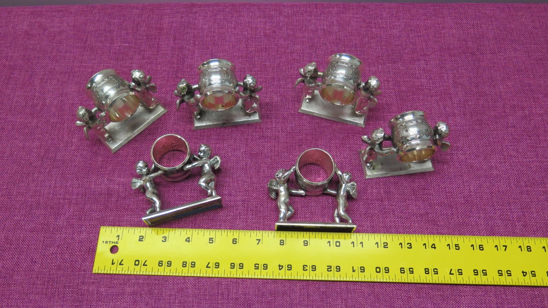 Qty 6 Silver-Tone Metal Cupid Napkin Rings