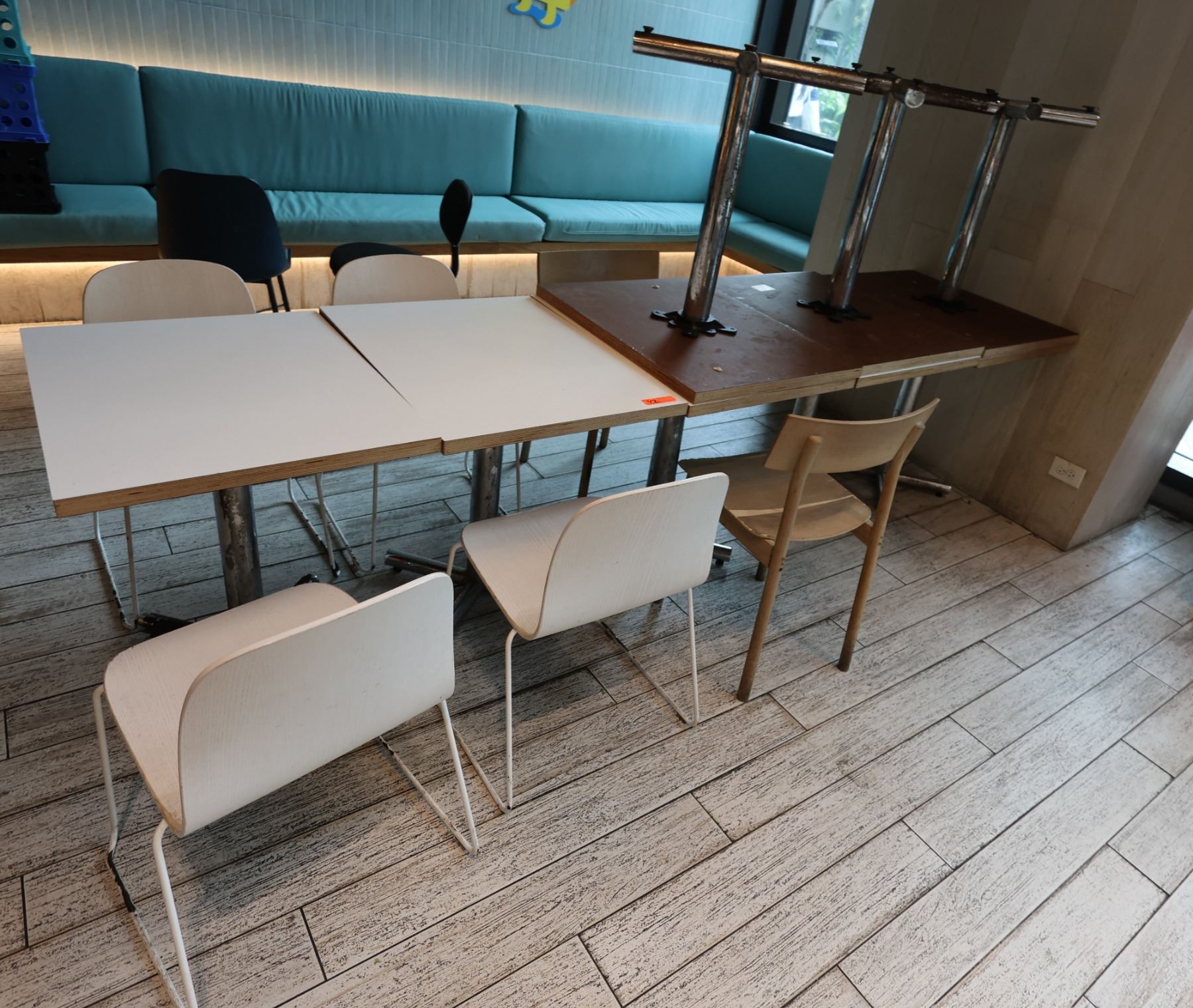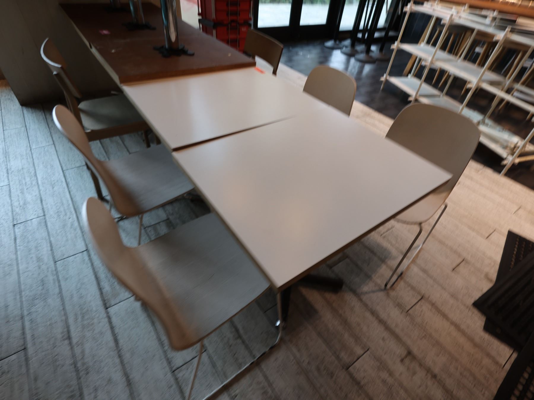 Qty 6 Tables w/ Pedestal Bases 30" x 24" x 29"H w/ 6 Chairs