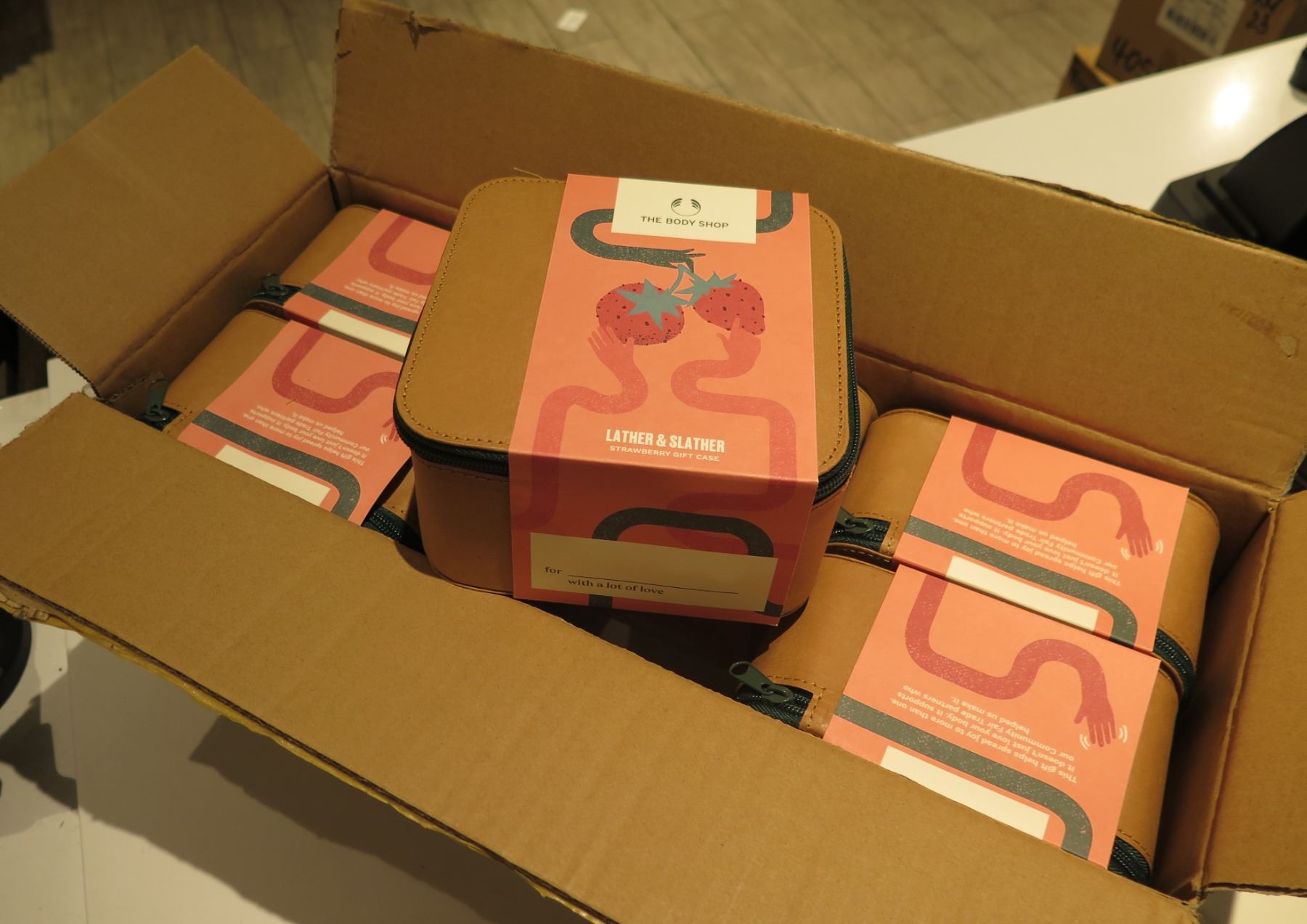 Qty 6 The Body Shop Lather & Slather Strawberry Gift Cases