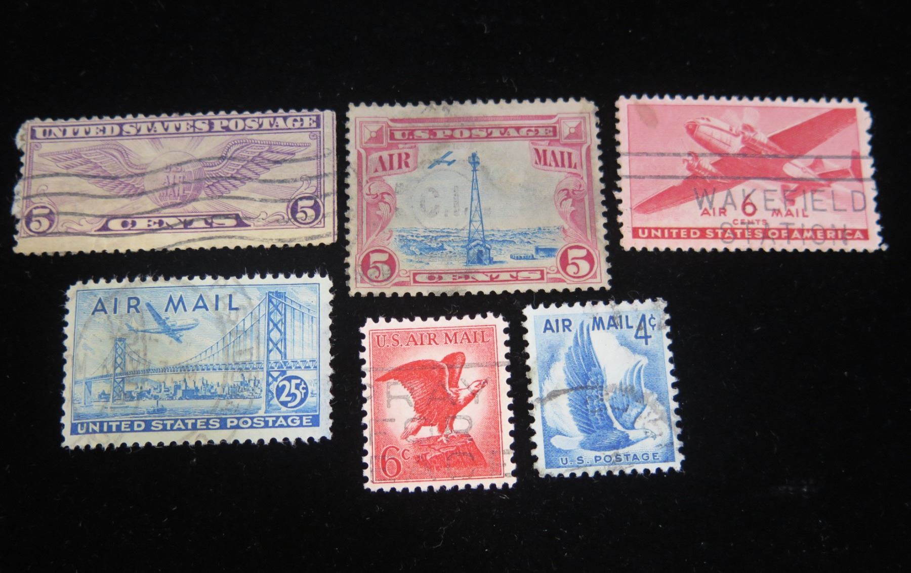 Qty 6 USA Air-Mail Stamps, Misc Denominations