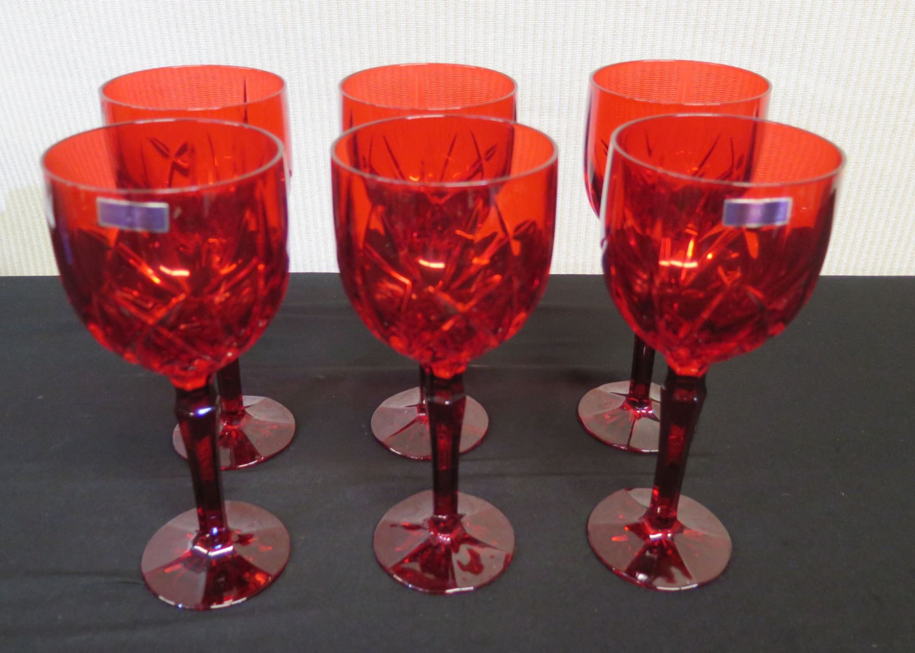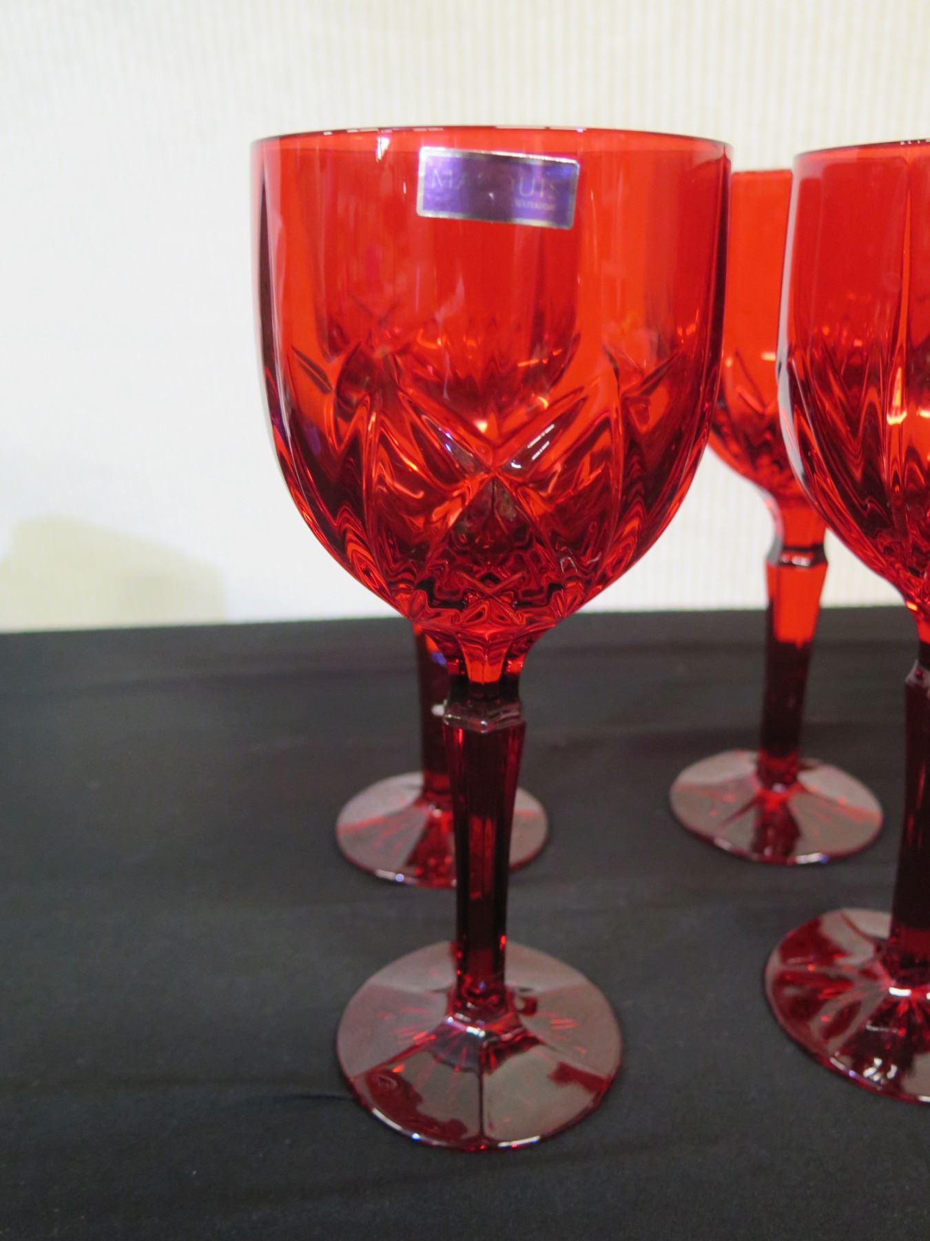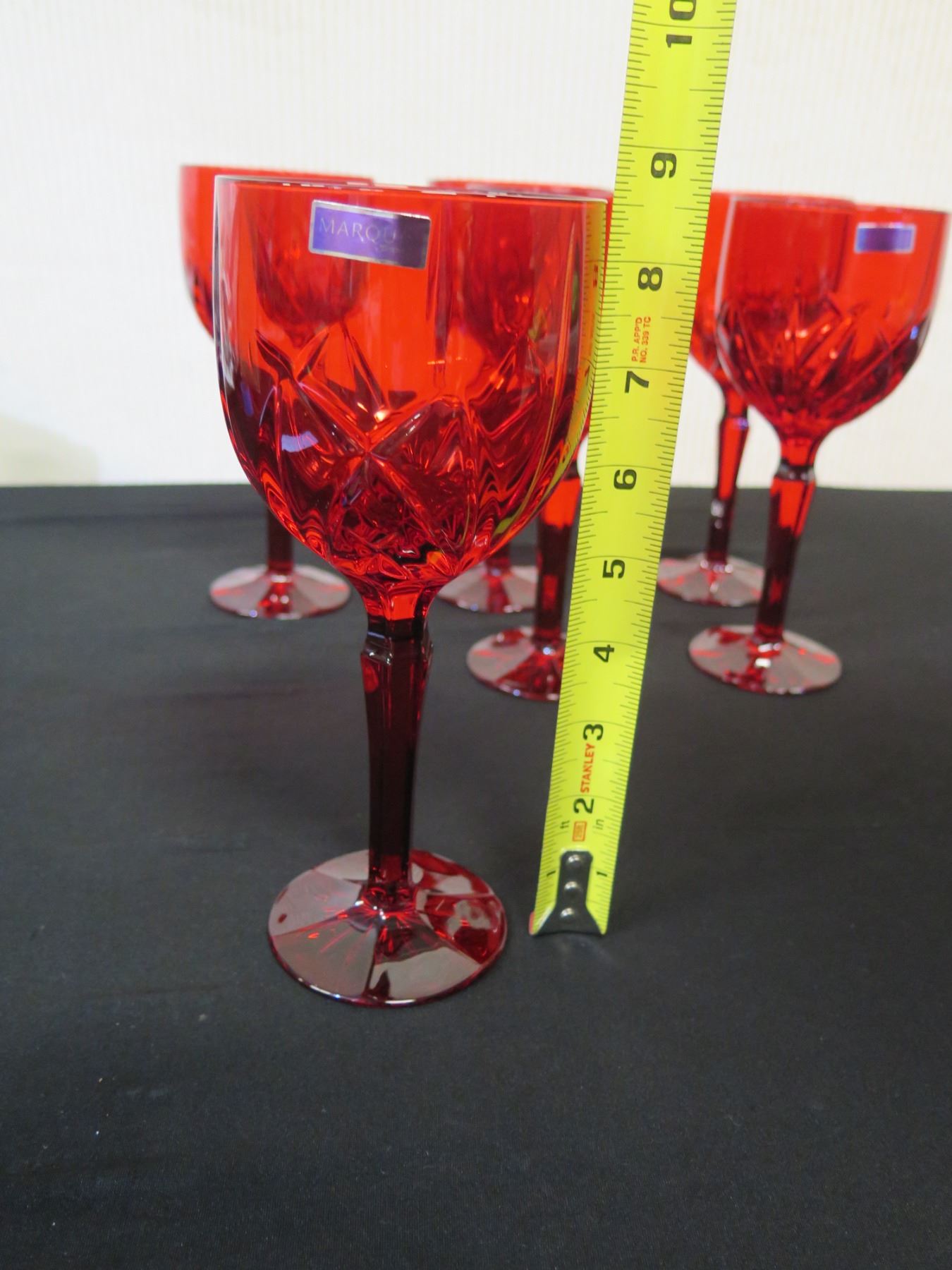 Qty 6 Waterford Marquis Red Stemmed Beverage Ware 3.75" Dia, 8.5" H