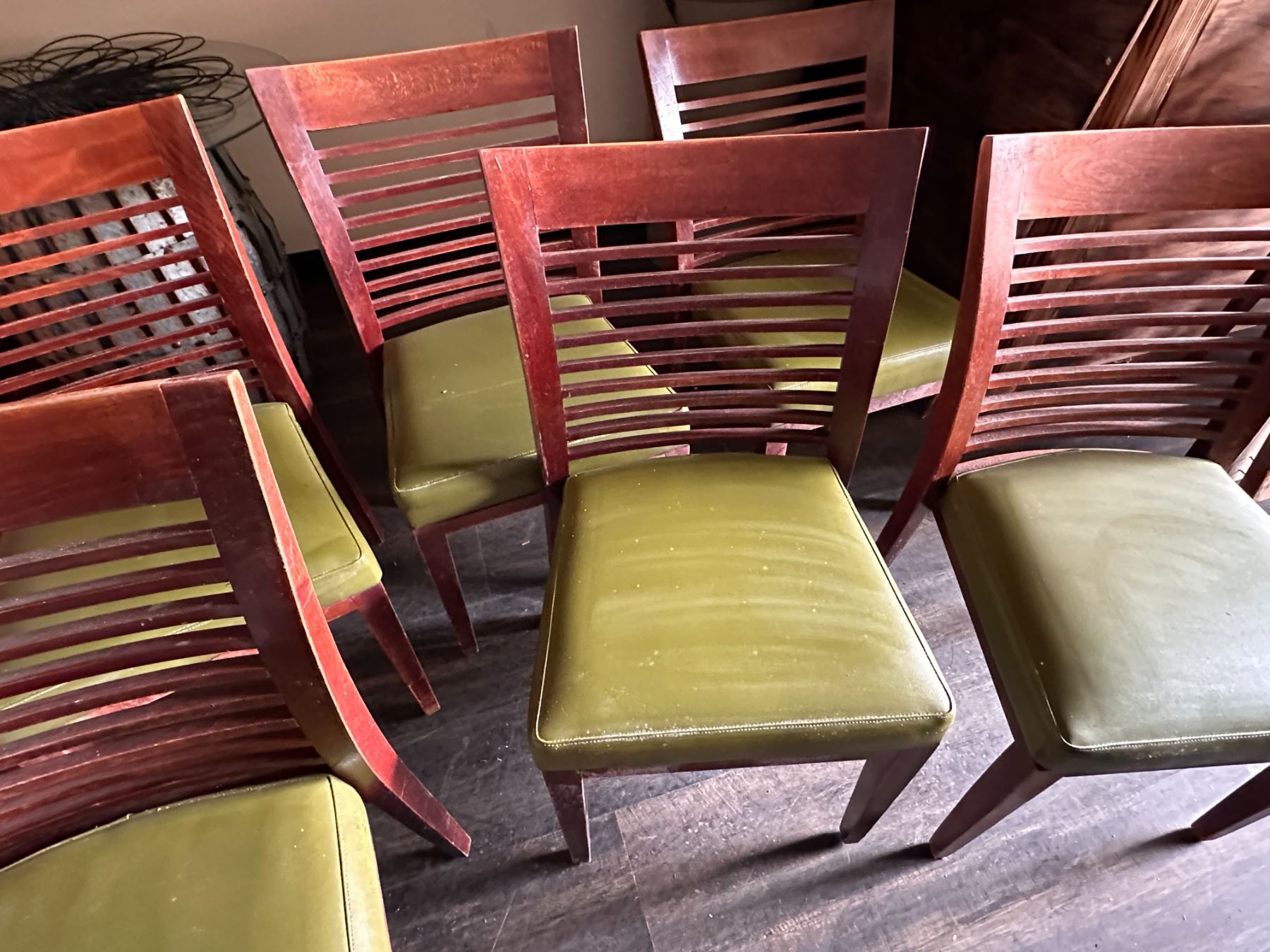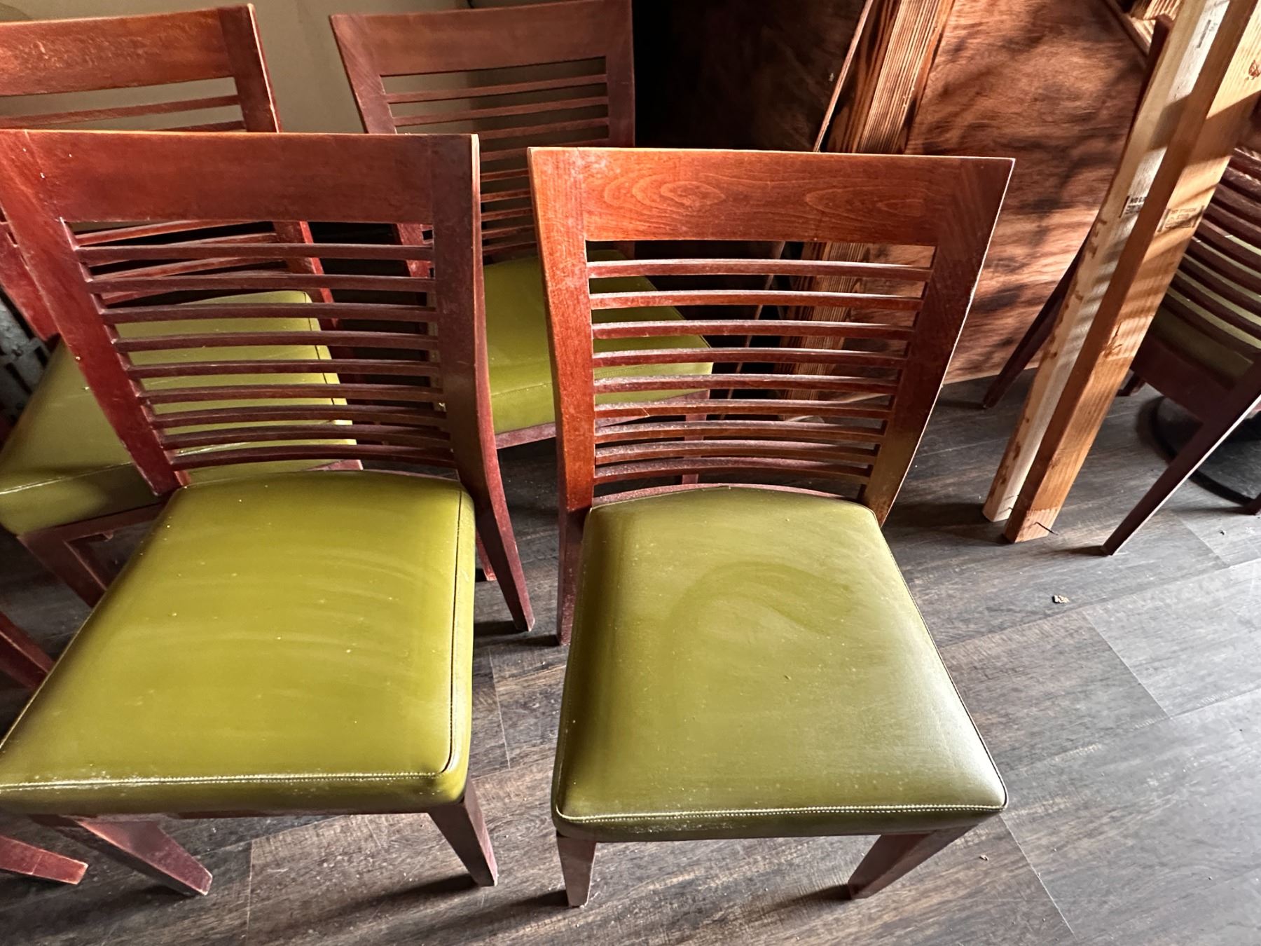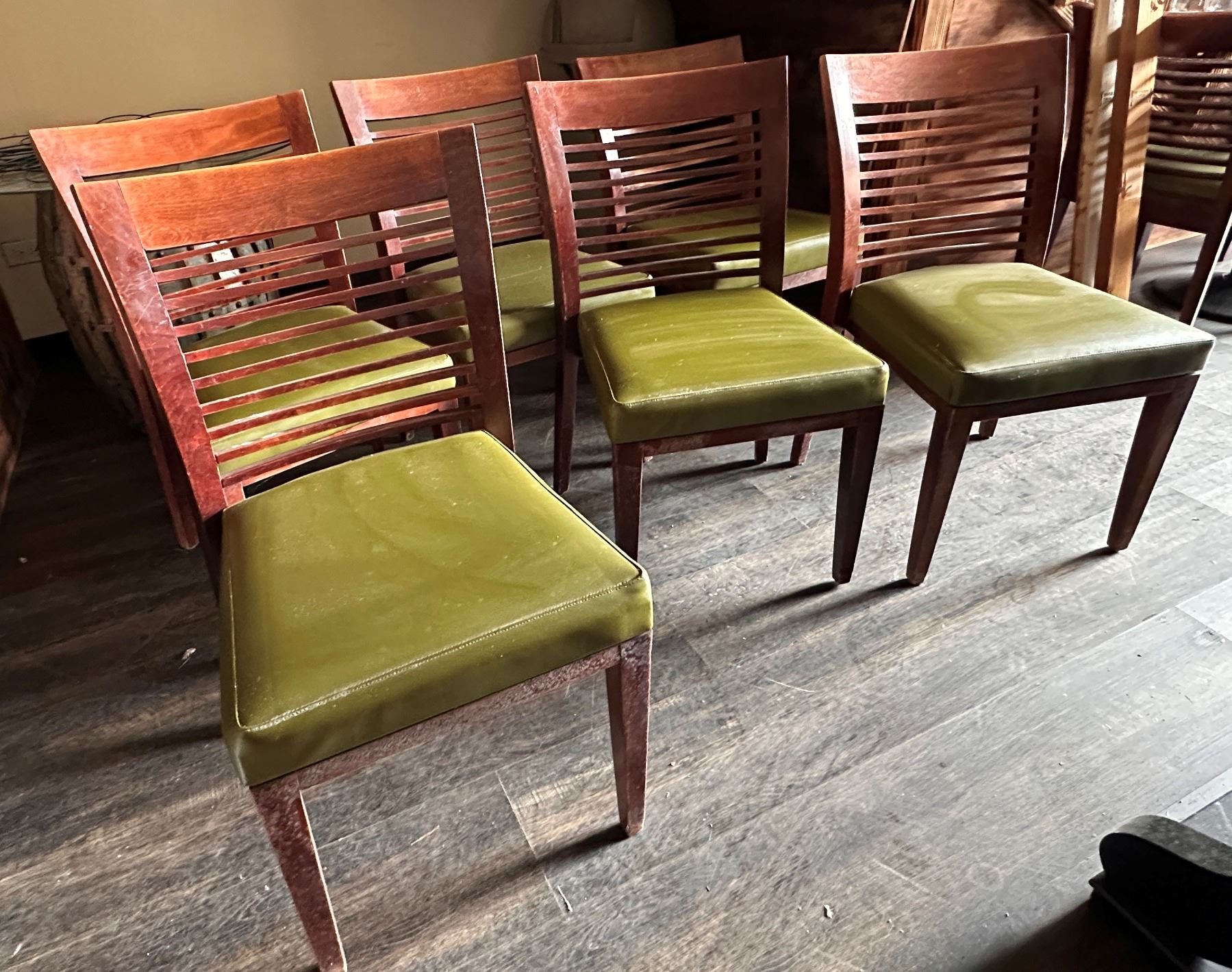 Qty 6 Wooden Chairs w/ Slatted Backs & Upholstered Seats 17" x 16" x 33.5"H