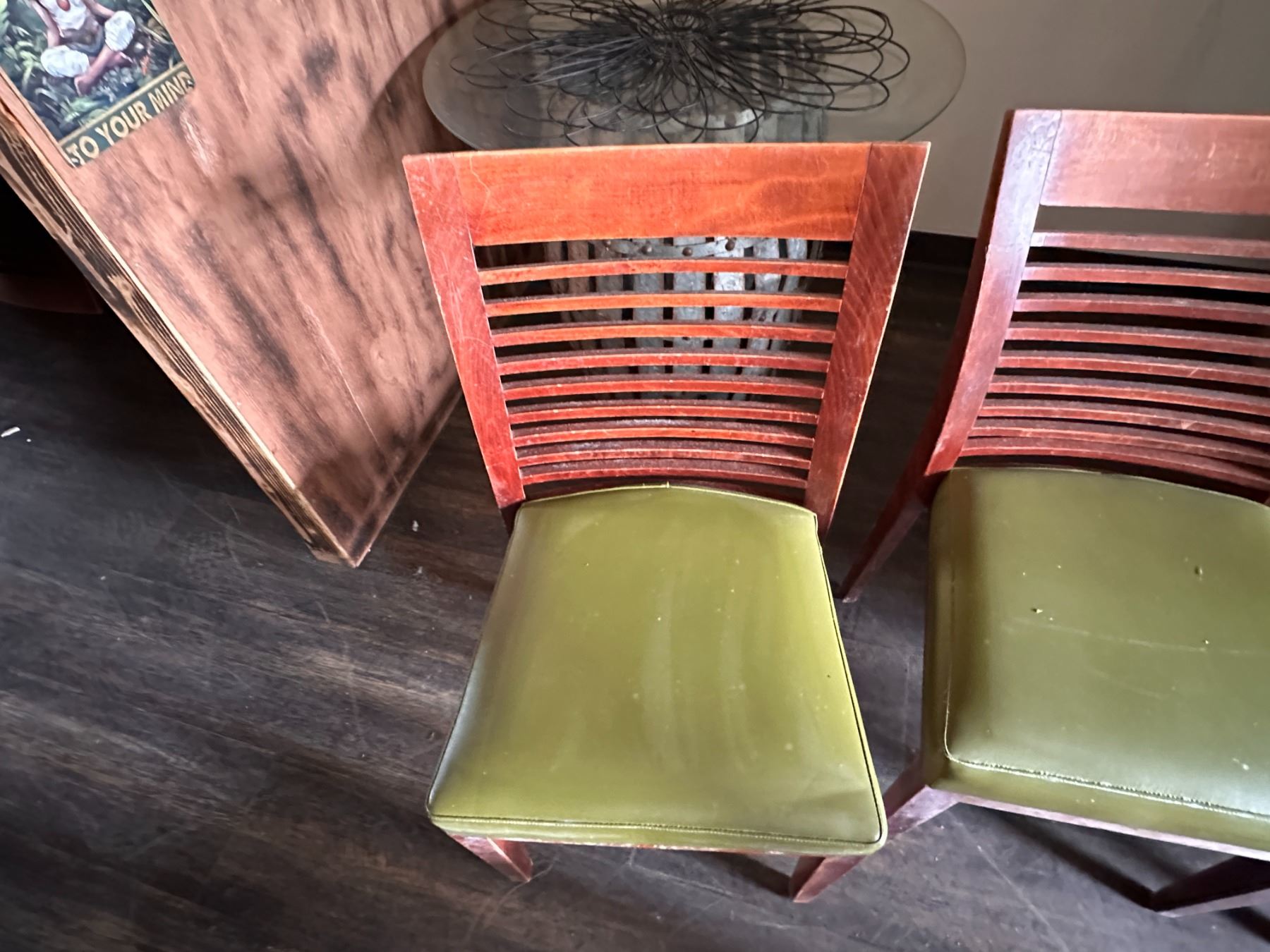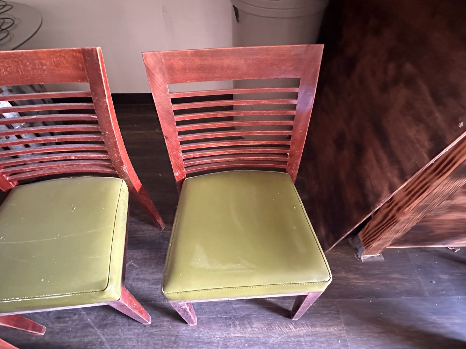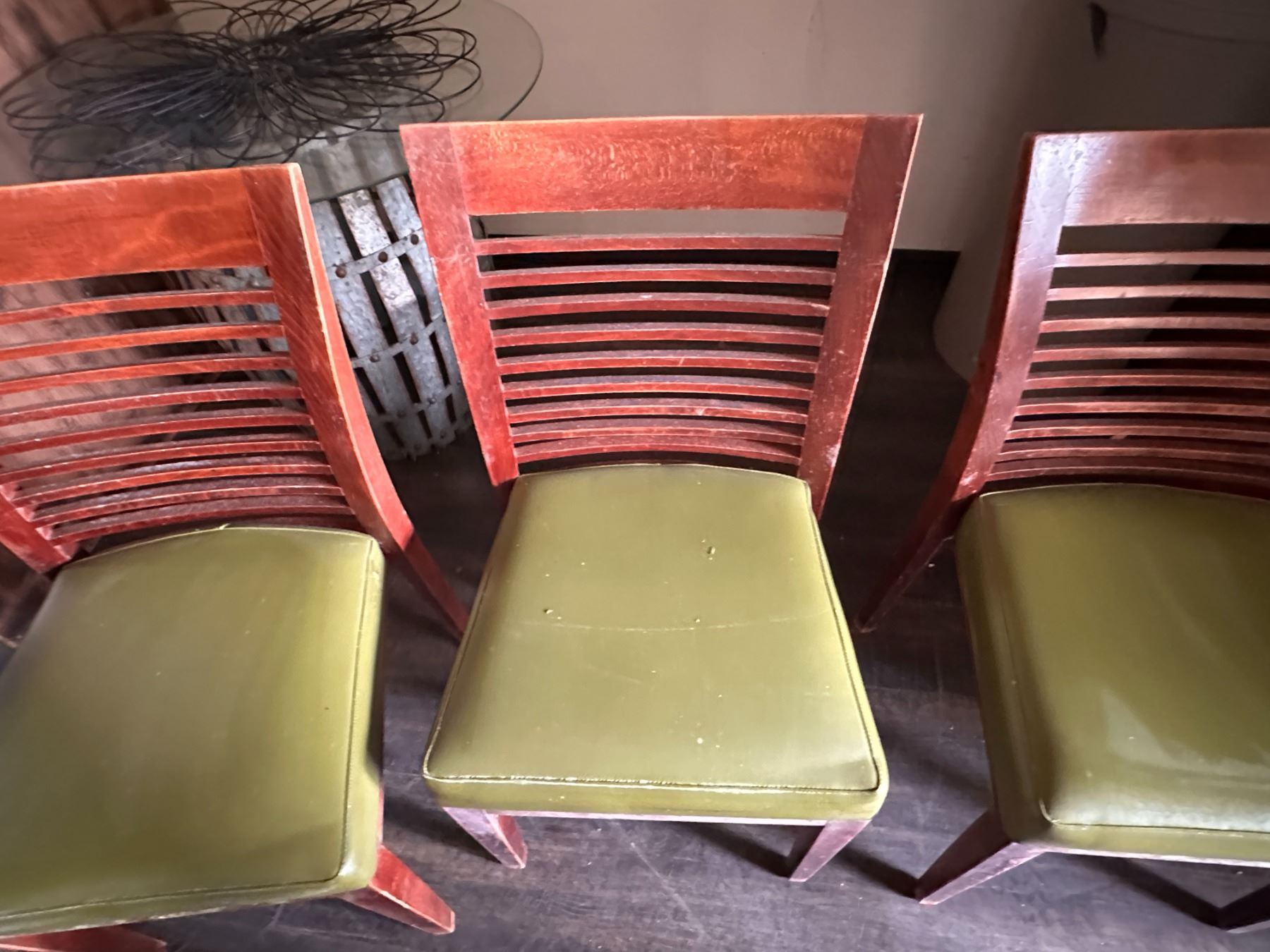 Qty 6 Wooden Chairs w/ Slatted Backs & Upholstered Seats 17" x 16" x 33.5"H