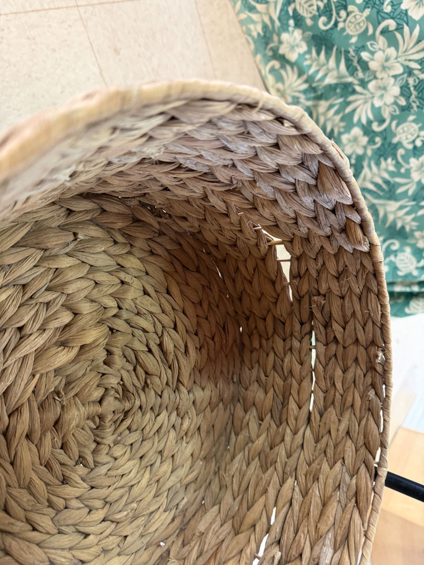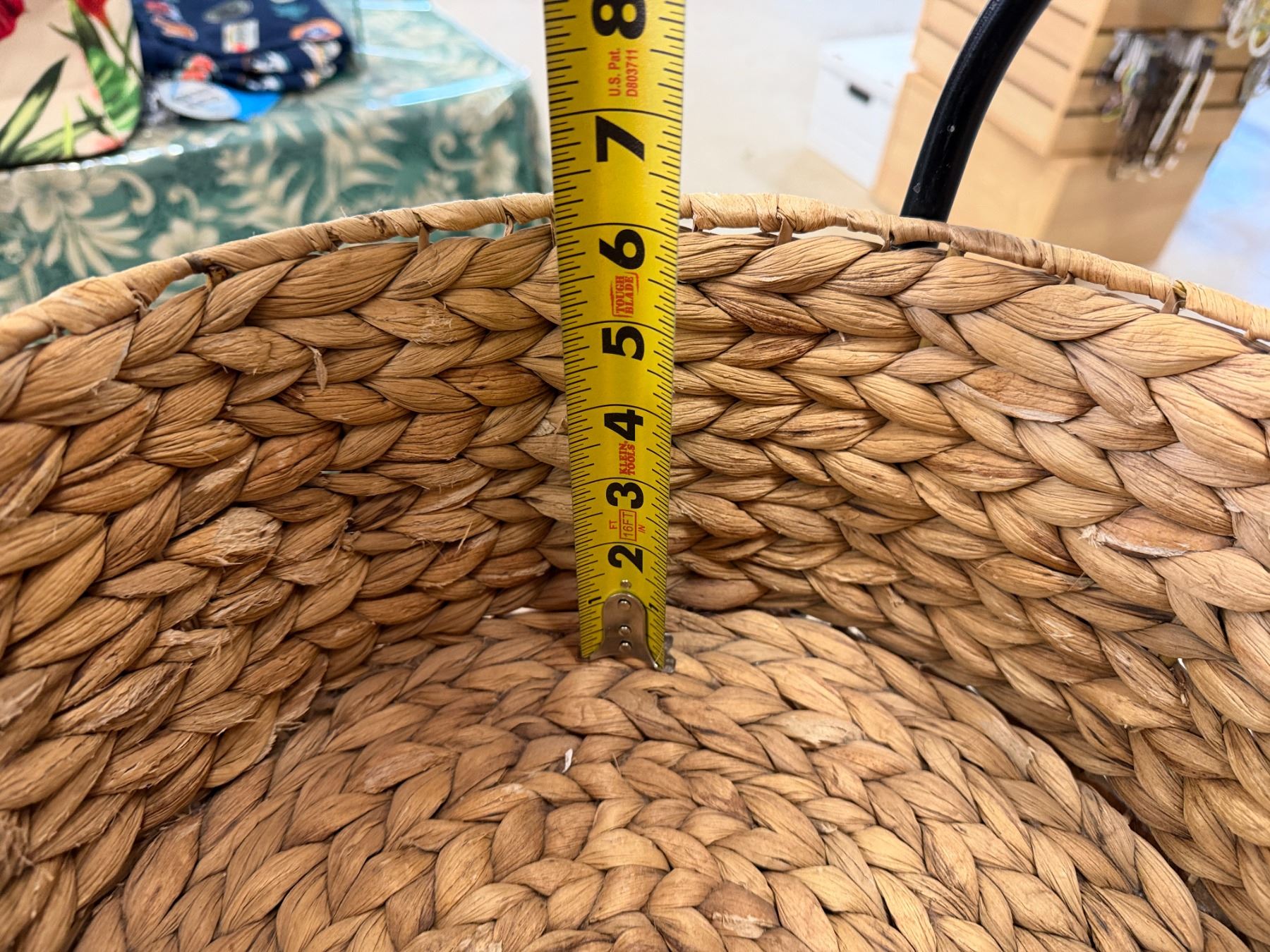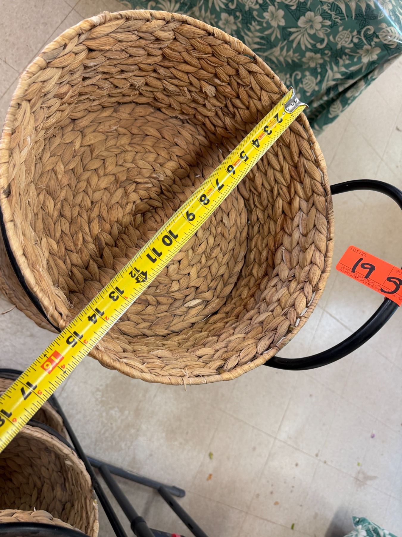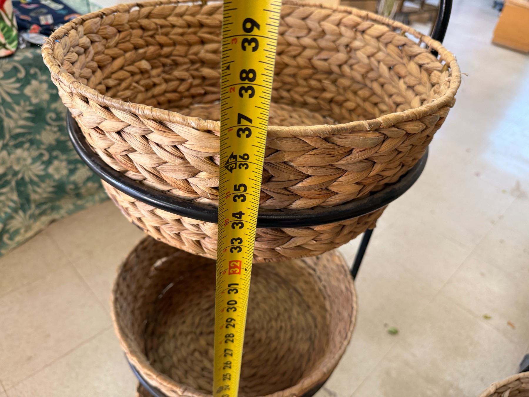 Qty 6 Woven Baskets 15" Dia, 5"H in 2 Metal Stands 37"H