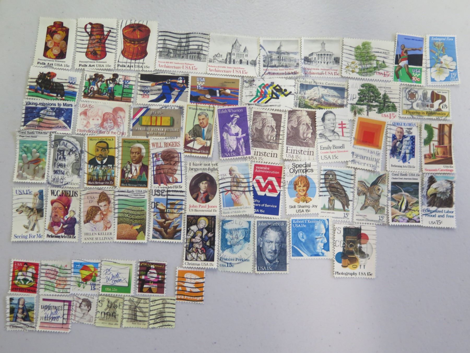Qty 60+ USA 15-Cent Stamps, Misc Designs