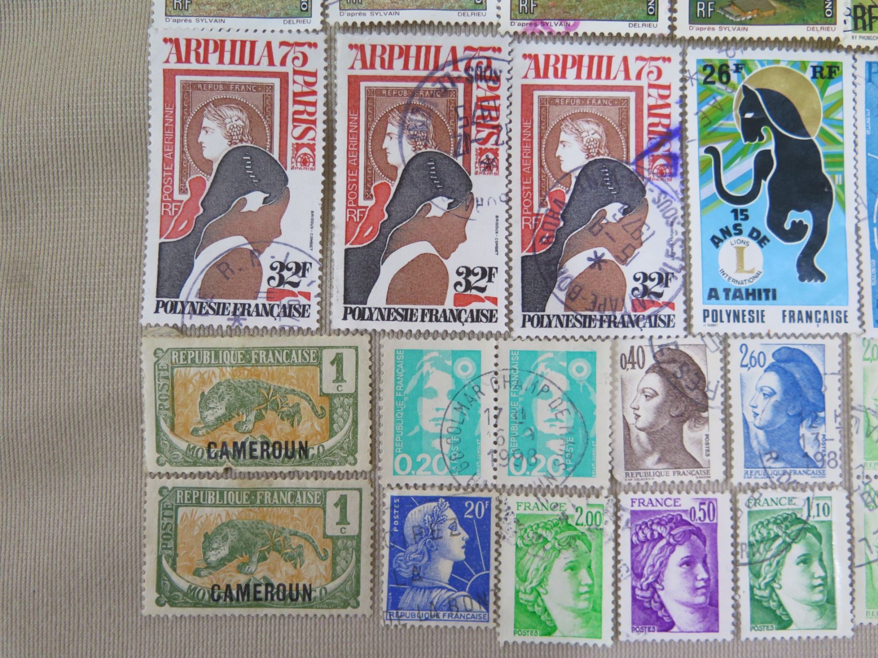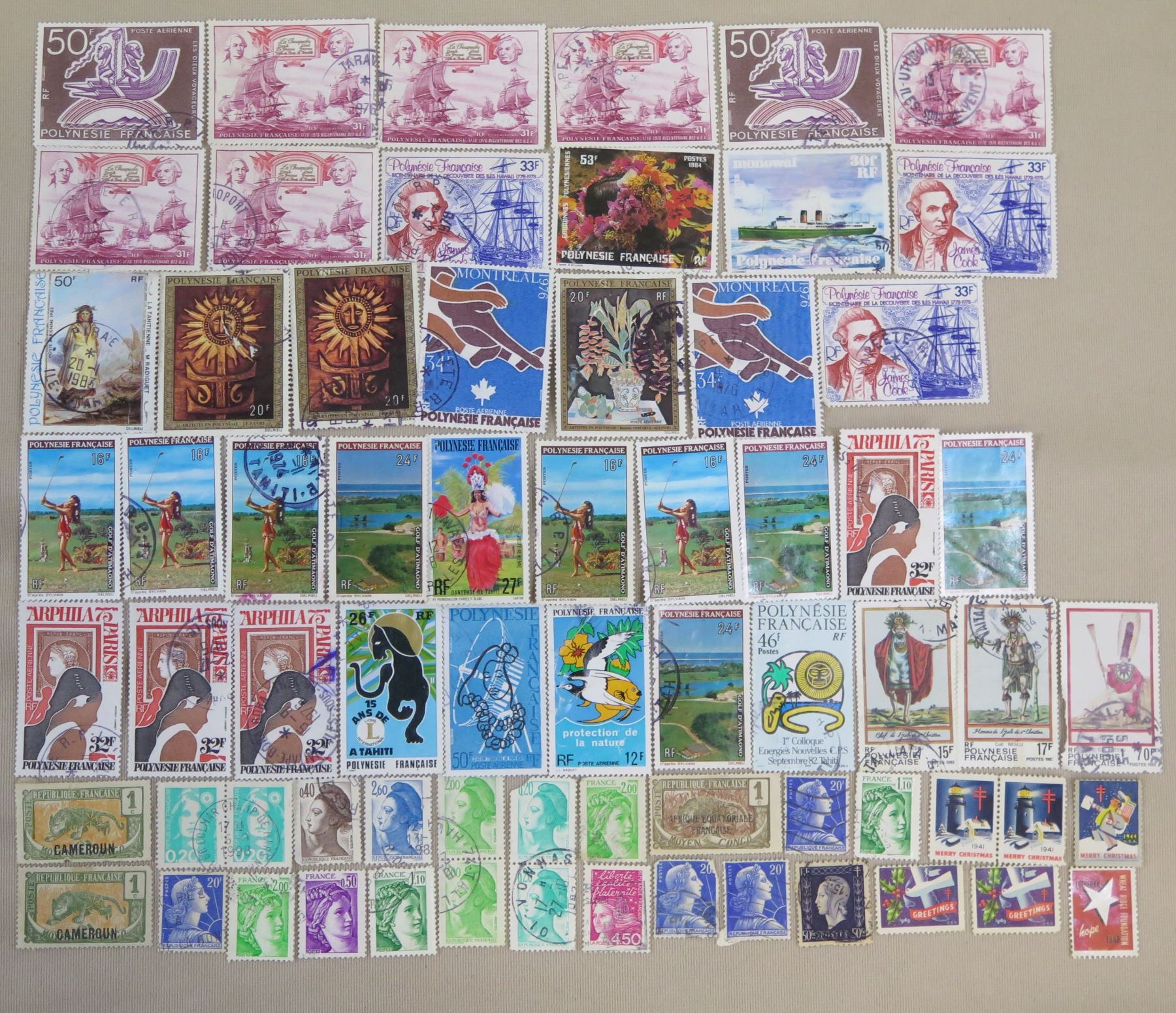 Qty 65+ Stamps Misc Countries: Polynesie Francaise, France, USA Christmas, etc