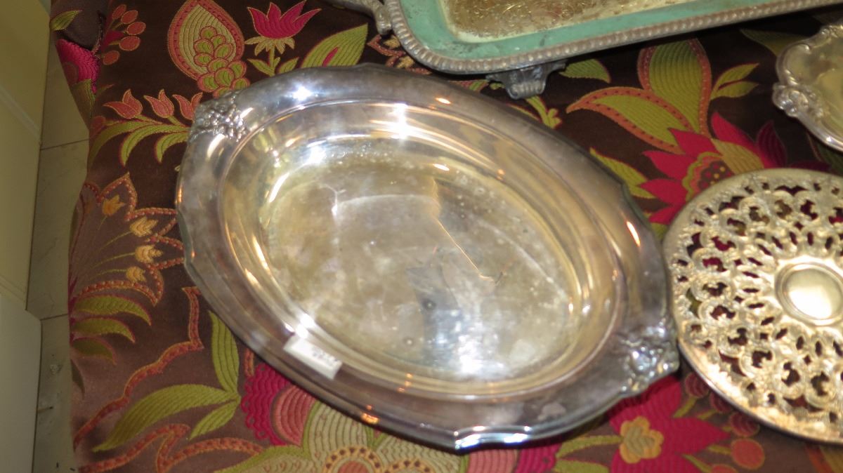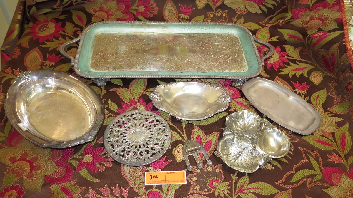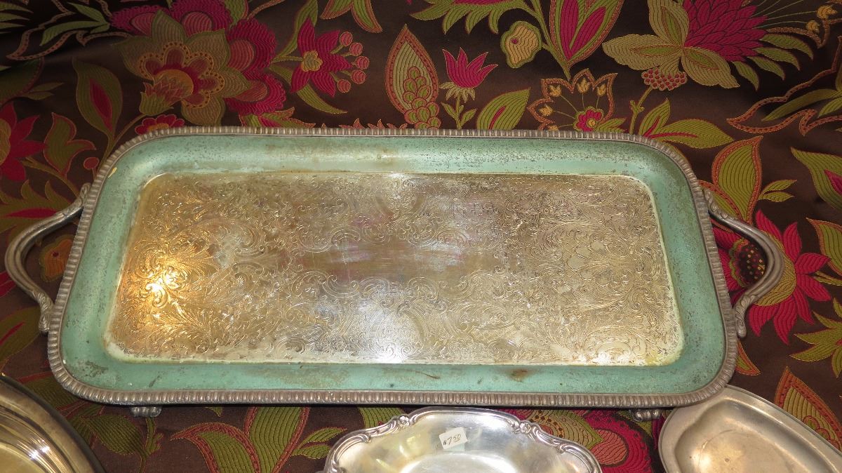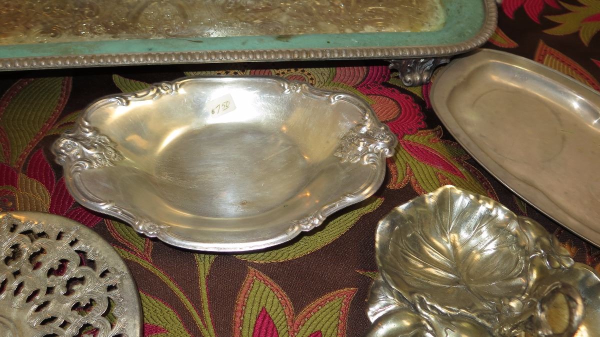 Qty 7 Antique Silver Plated Platter, Trays, Condiment Tray, etc.