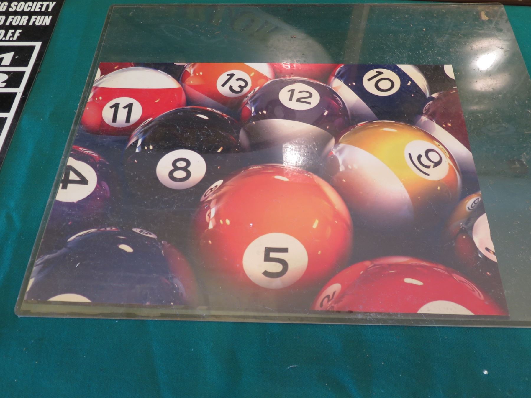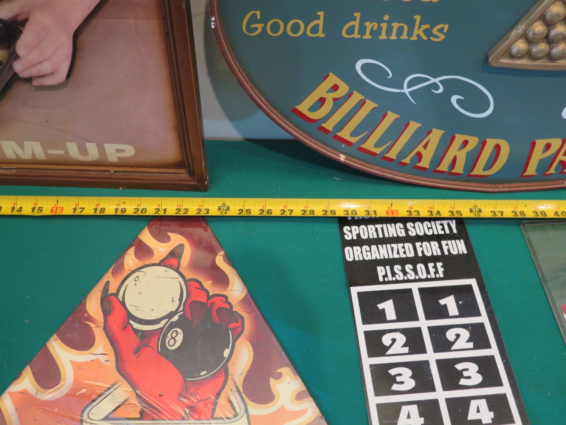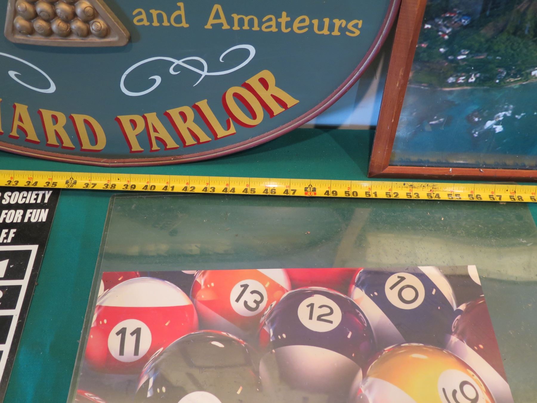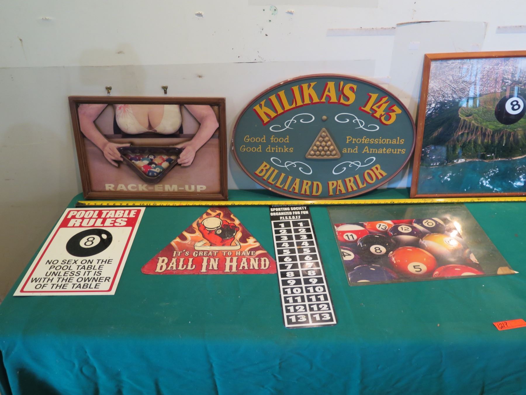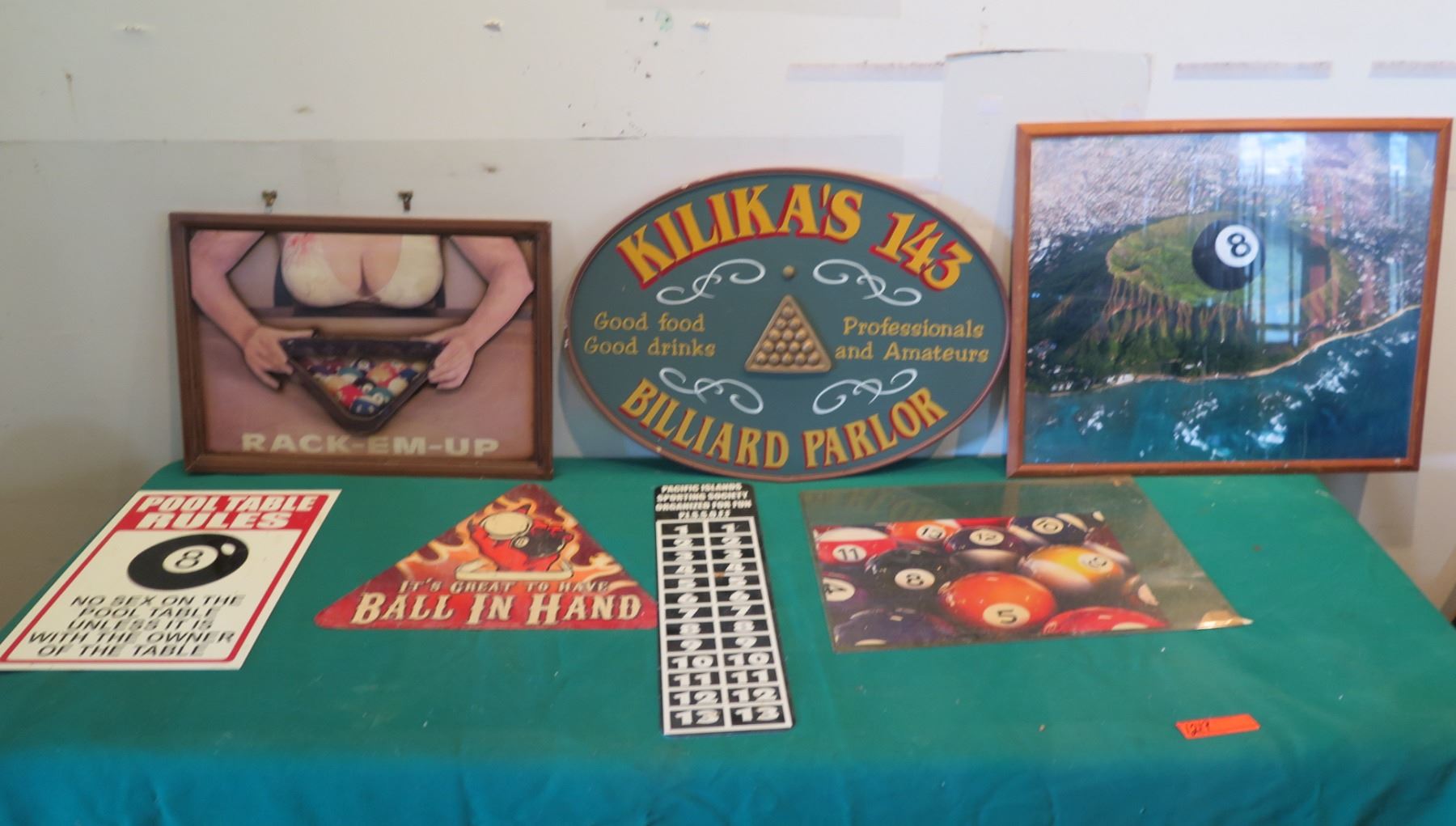 Qty 7 Artwork & Signs Billiards Pool Themed: Kilika's 143, Cue Balls, etc