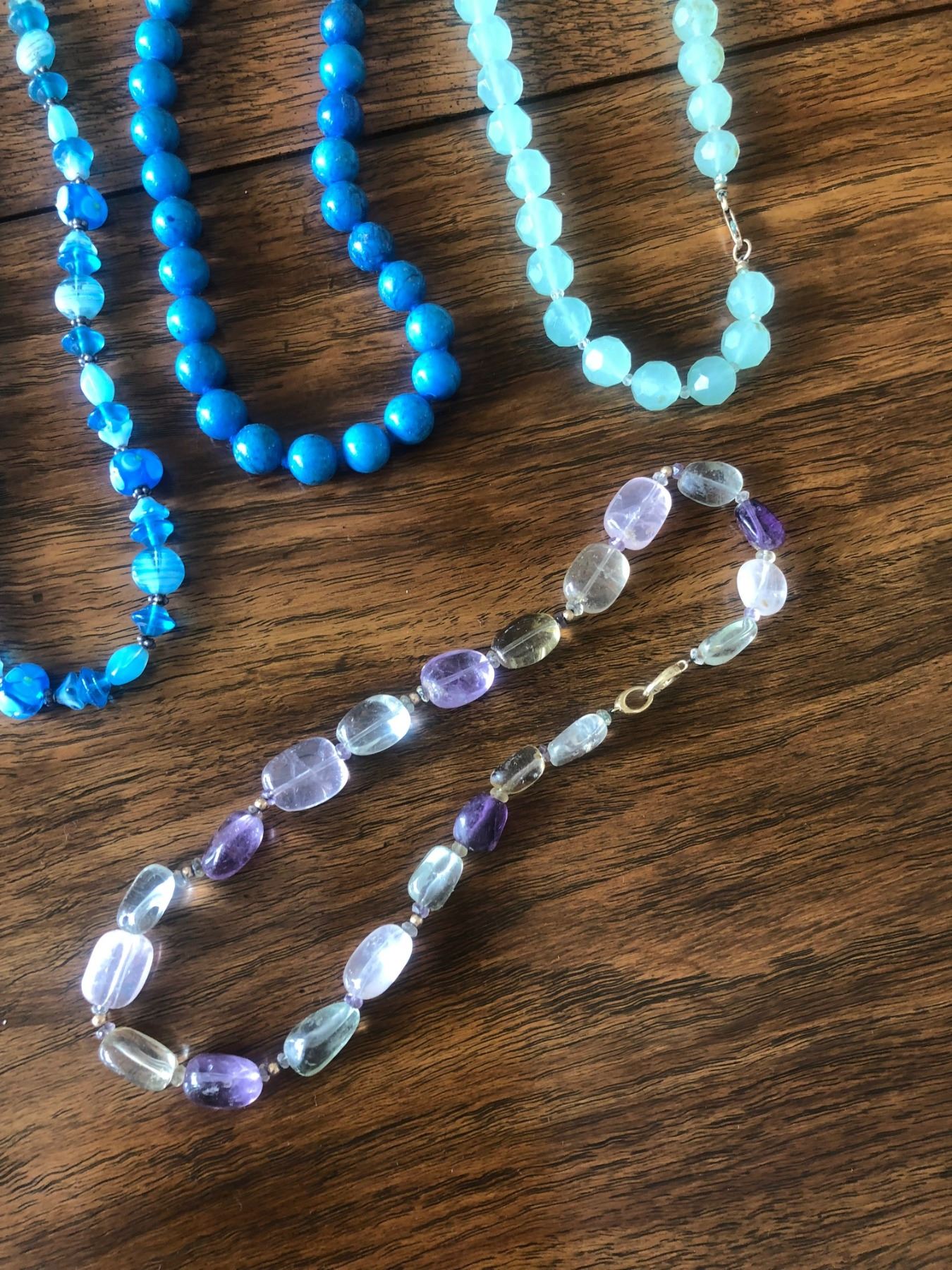 Qty 7 Beaded Necklaces - Amethyst, Turquoise, Semi-Precious Stones, Glass, etc