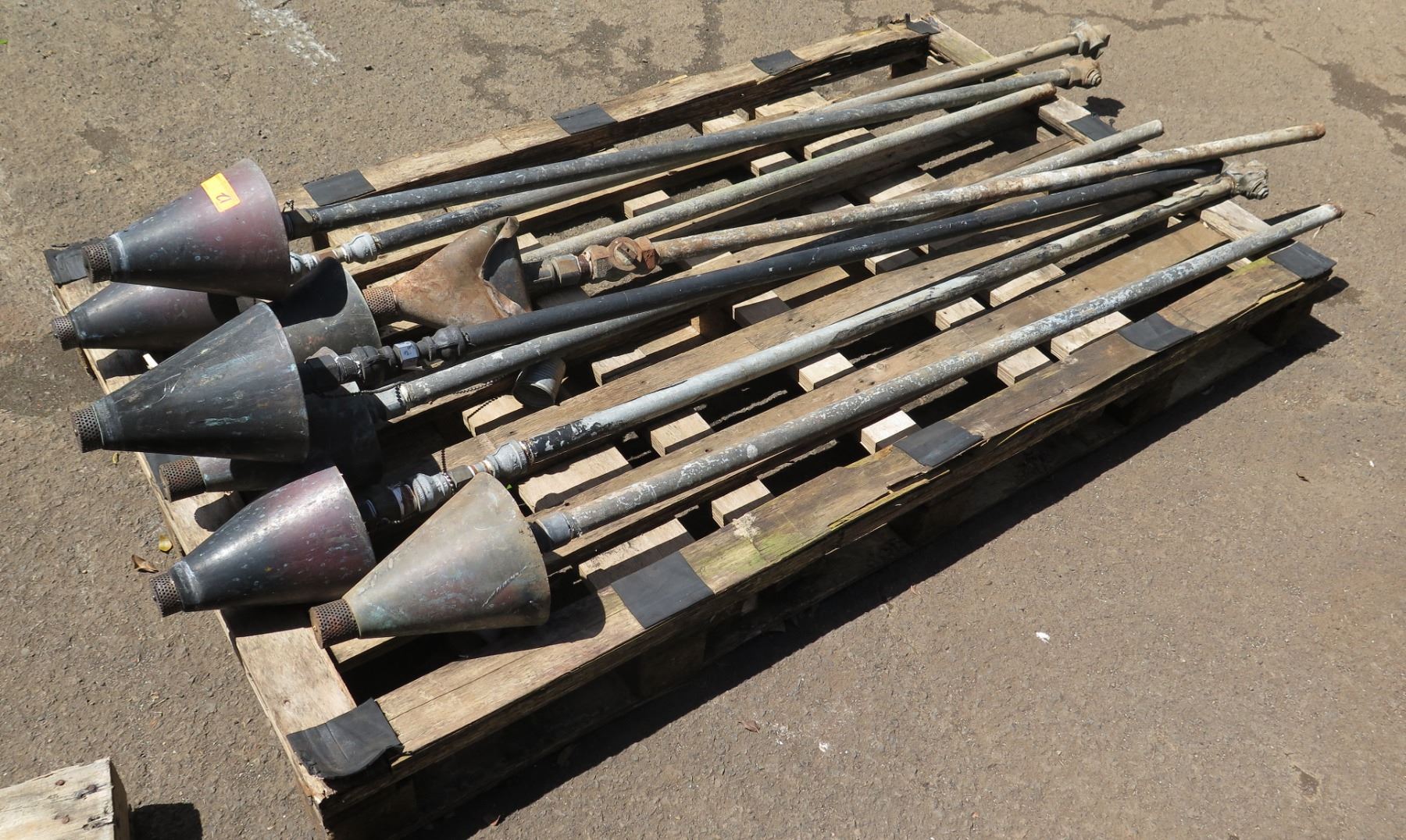 Qty 7 Copper Gas-Feed Tiki Torches (1 does not work)