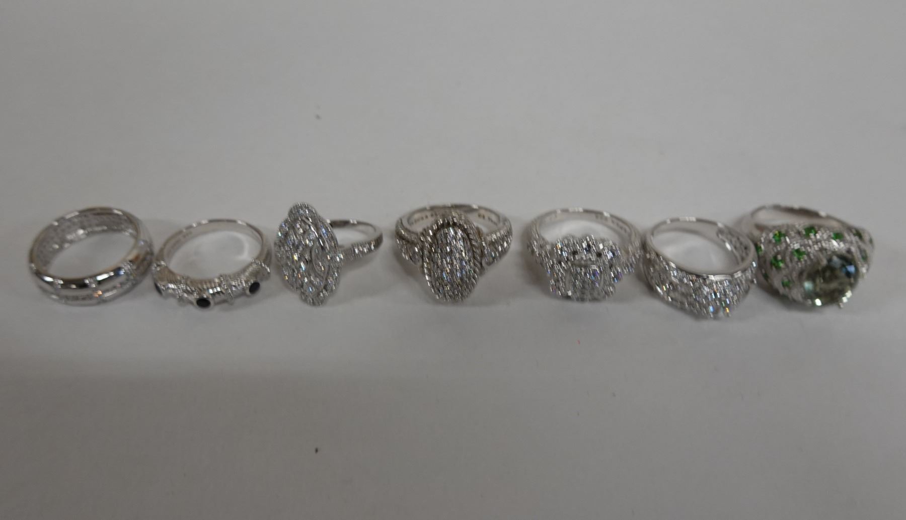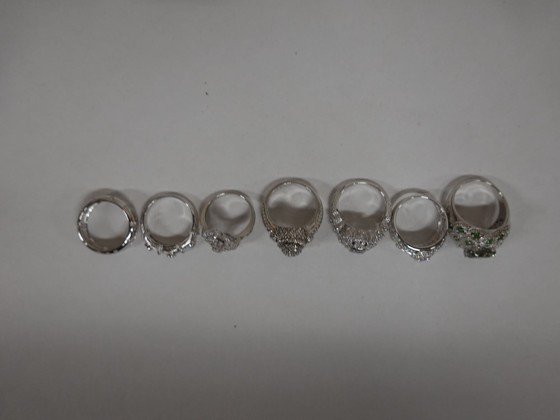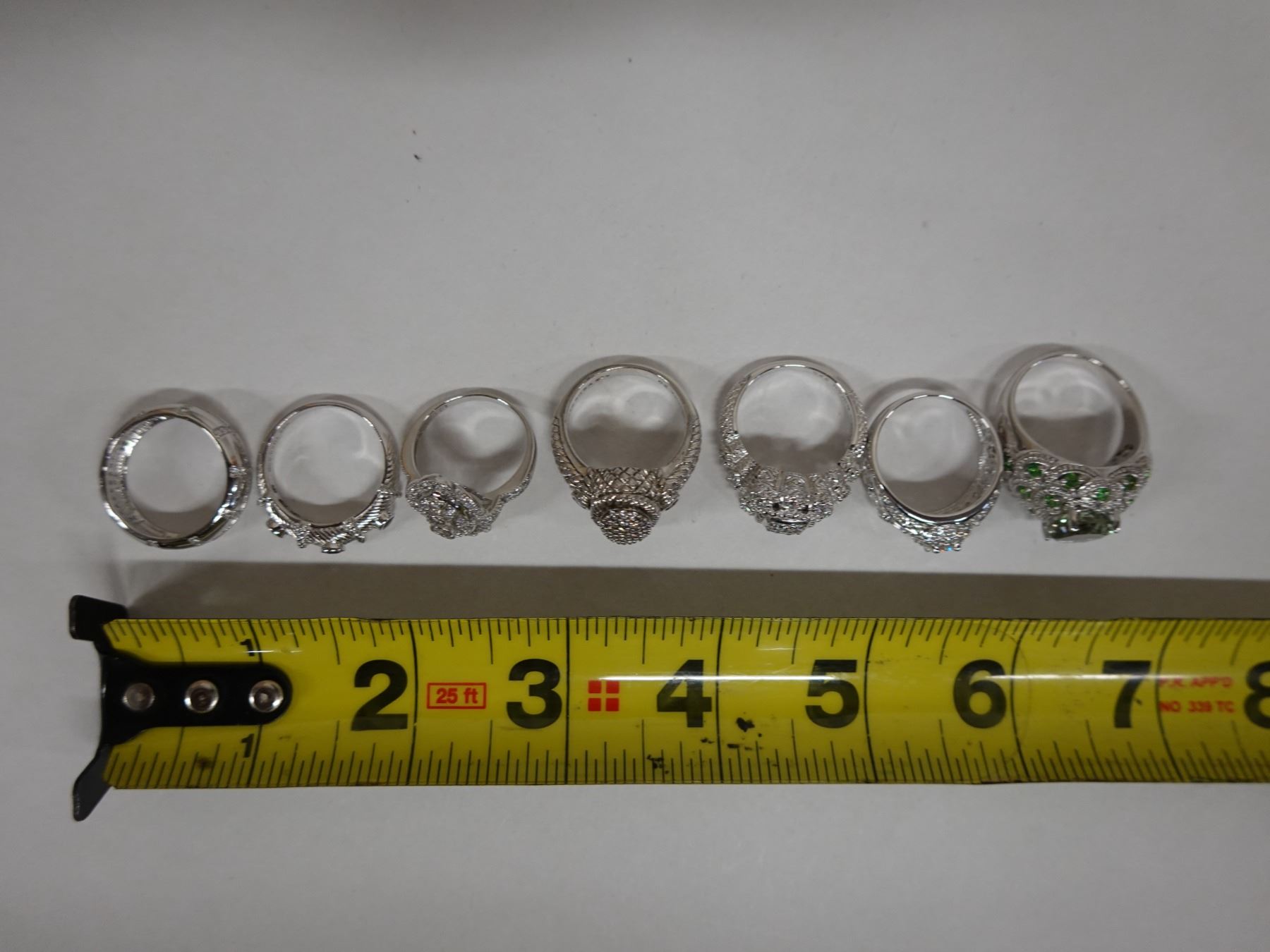 Qty 7 Fashion Rings w/ Clear Stone Accents, Misc Styles & Sizes