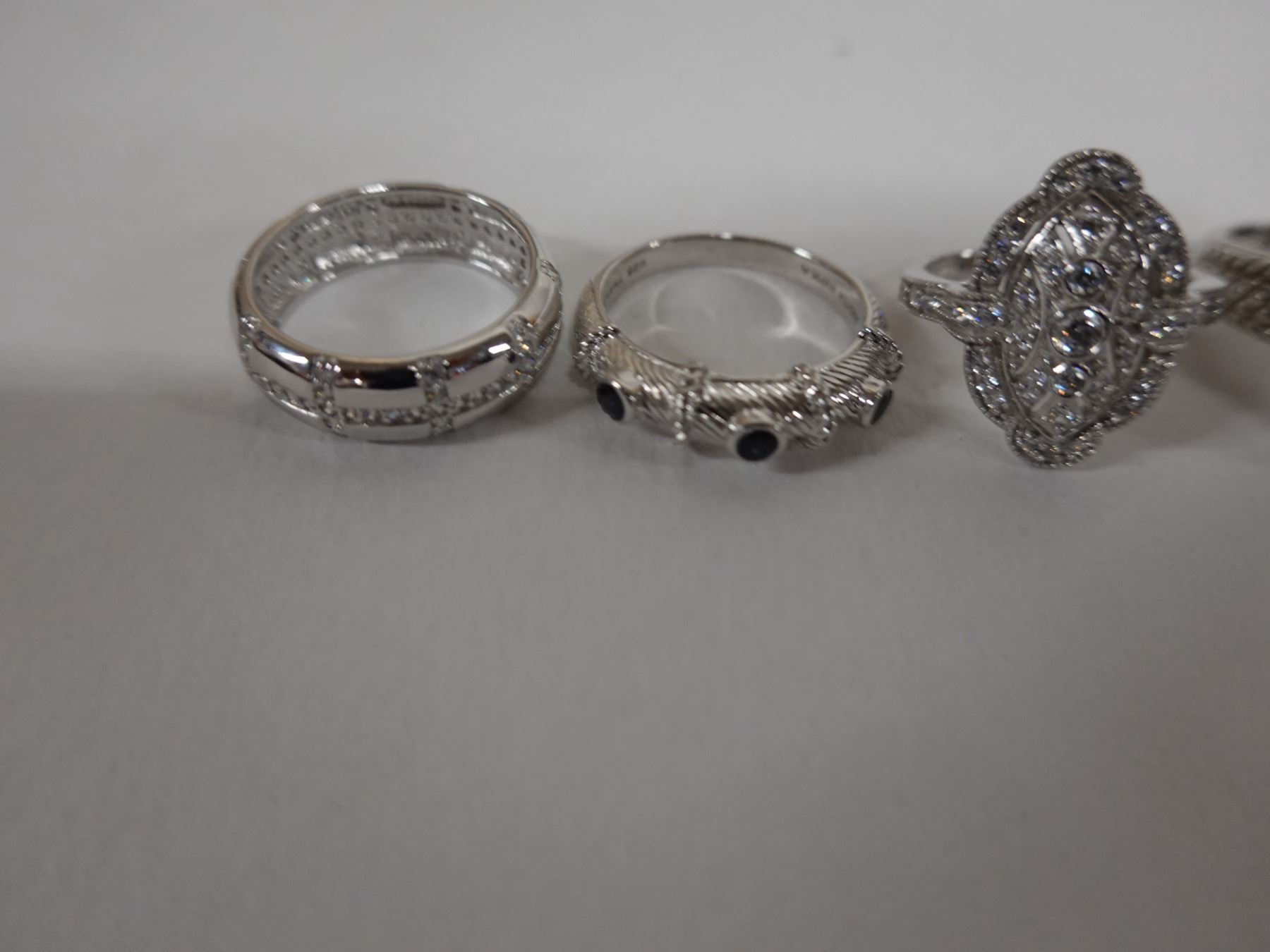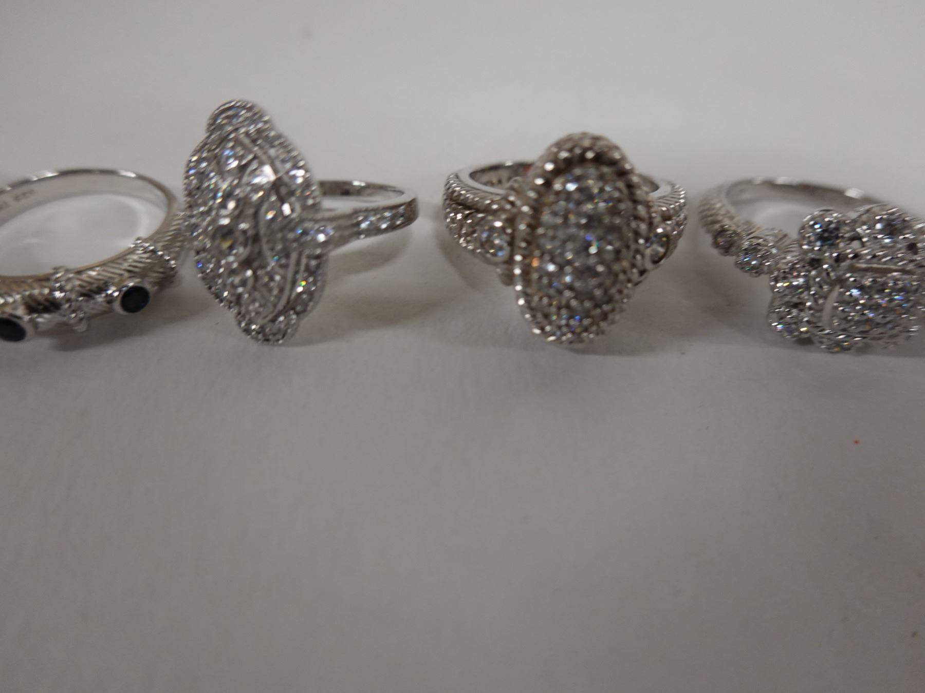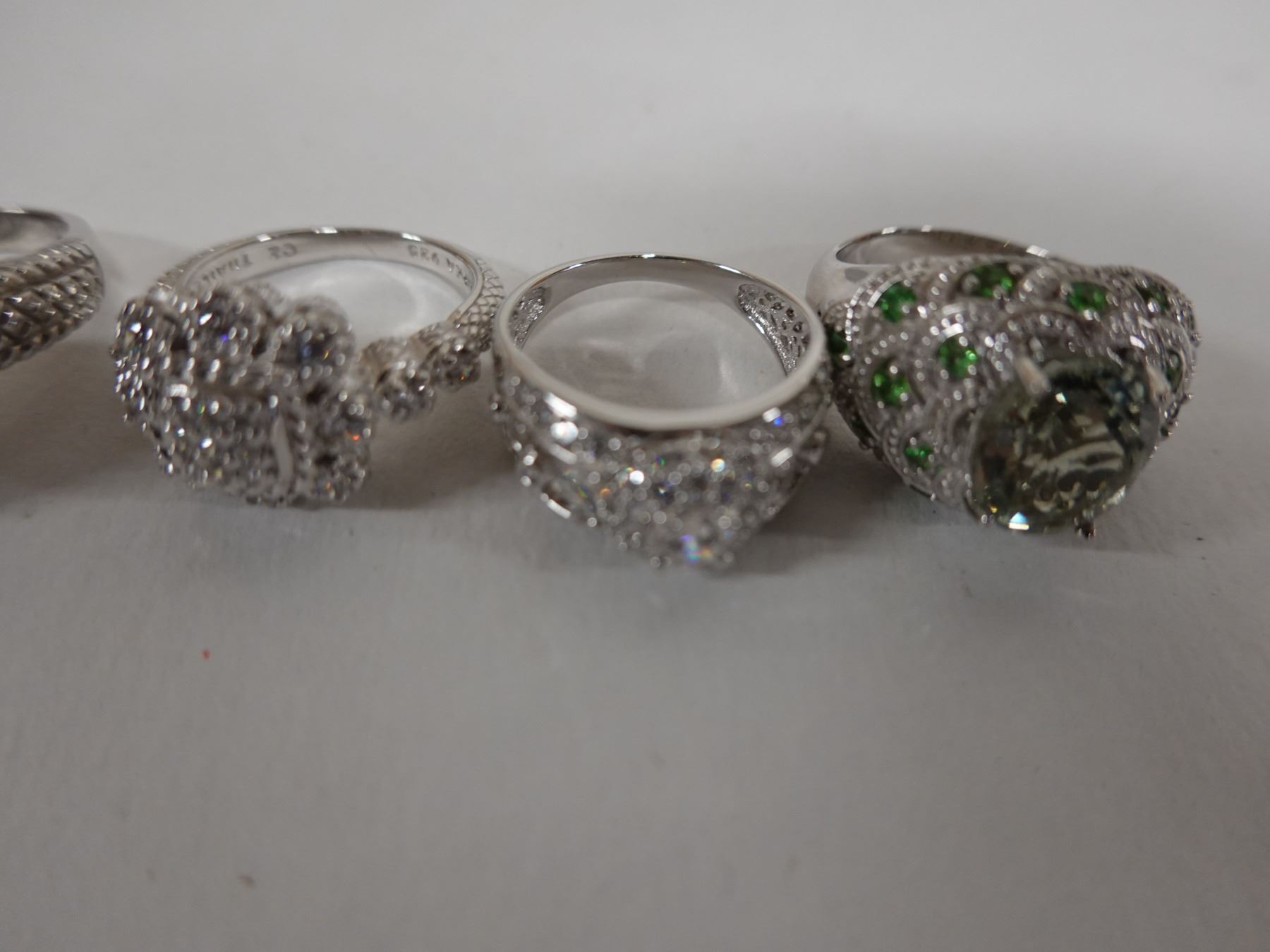 Qty 7 Fashion Rings w/ Clear Stone Accents, Misc Styles & Sizes