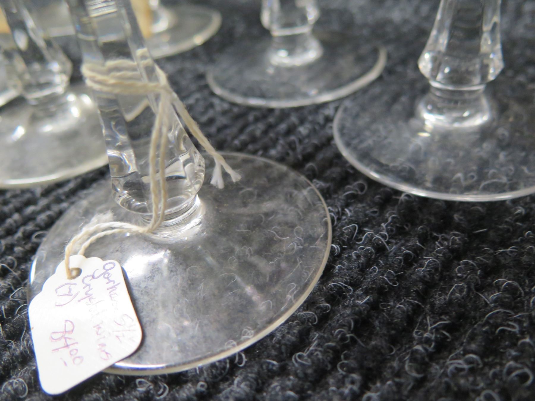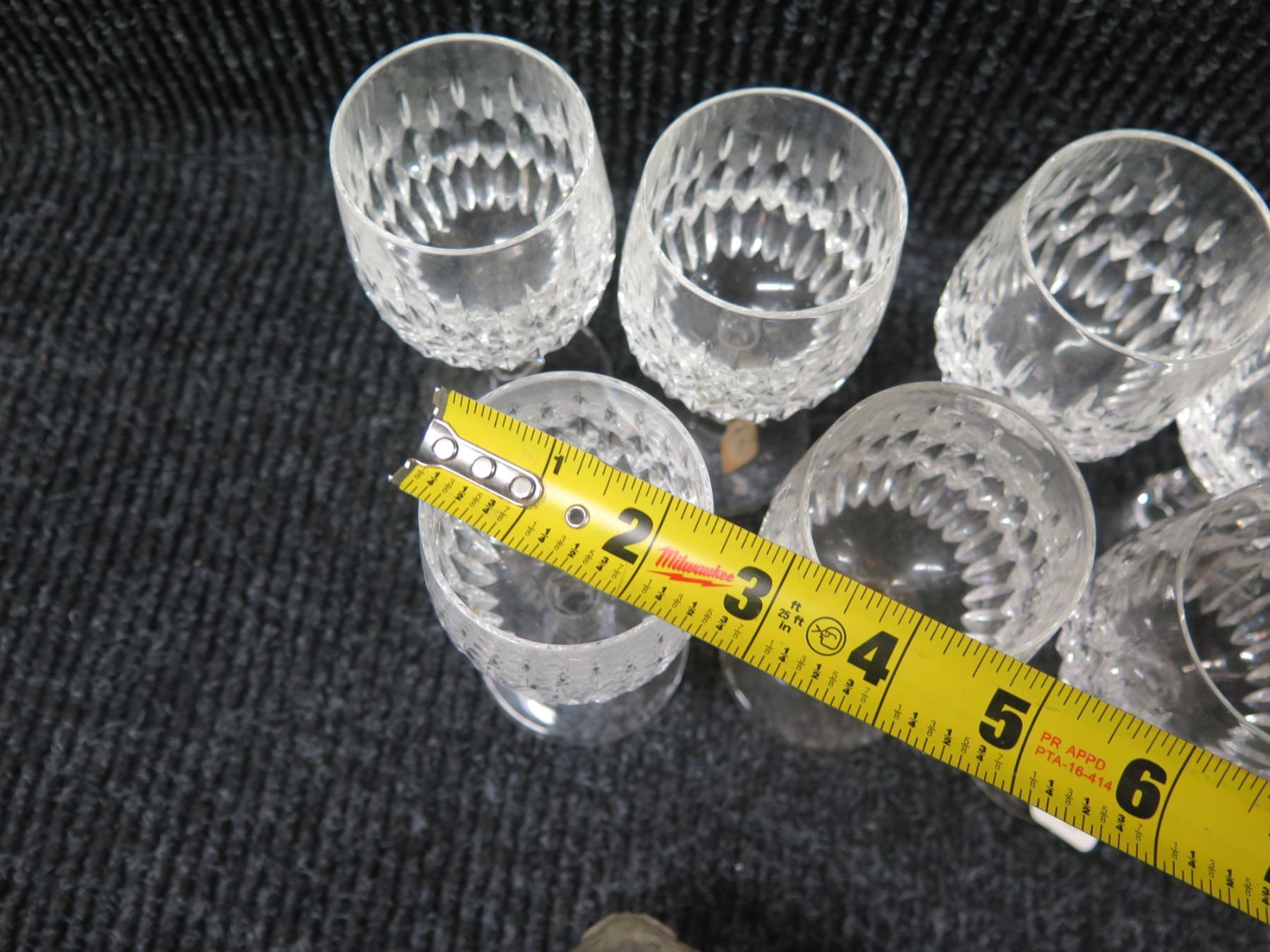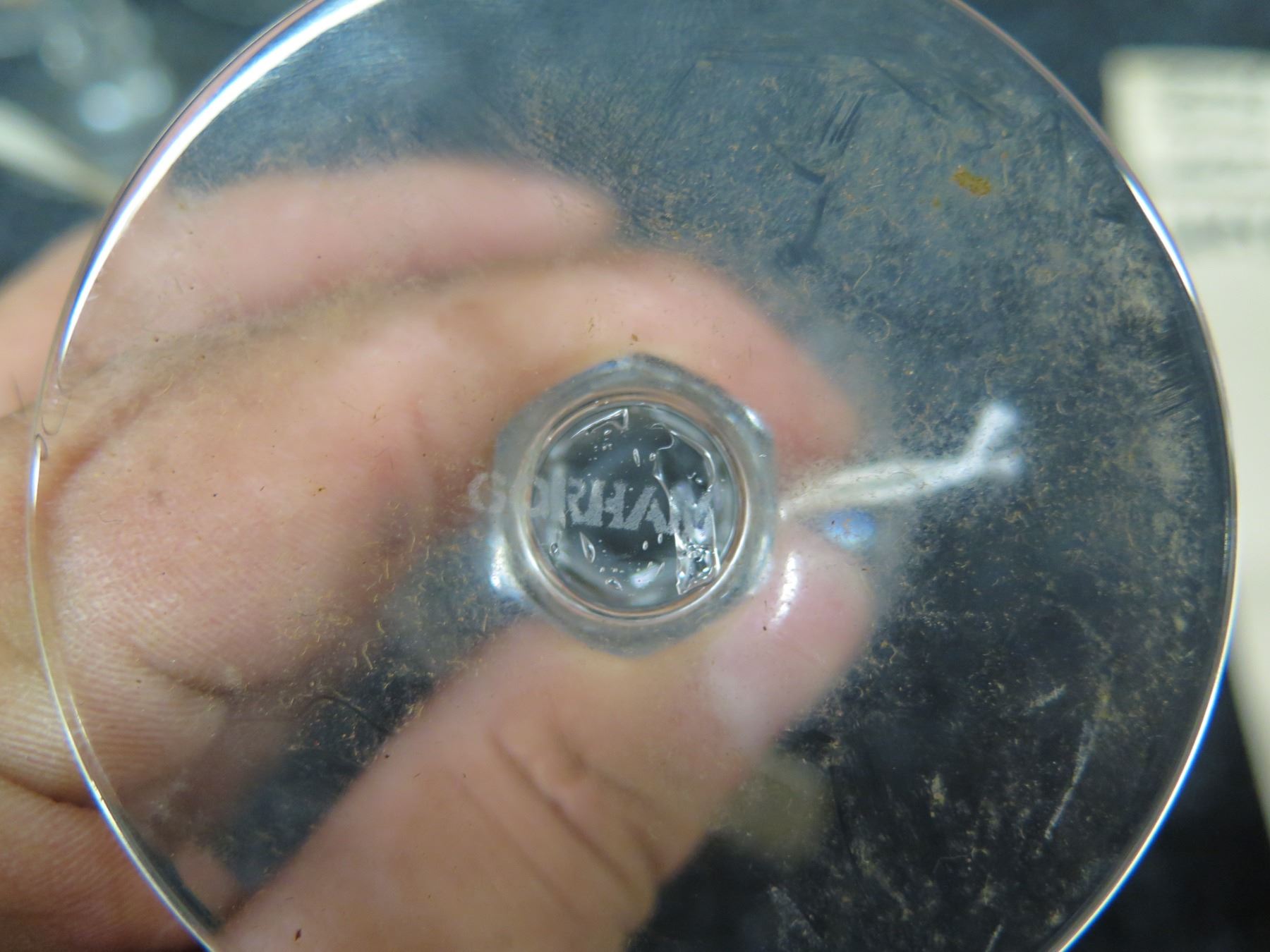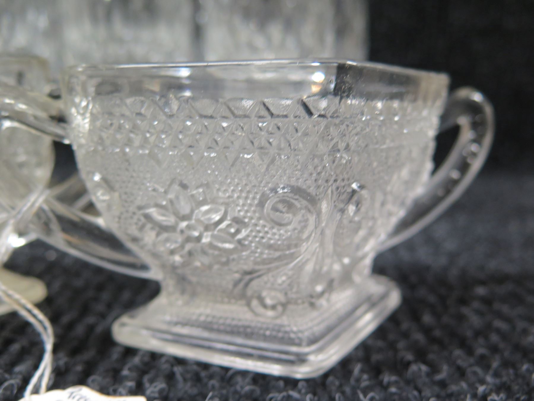Qty 7 Gotham Crystal Wine Glasses & 2 Pressed Clear Glass Creamer & Sugar Bowl