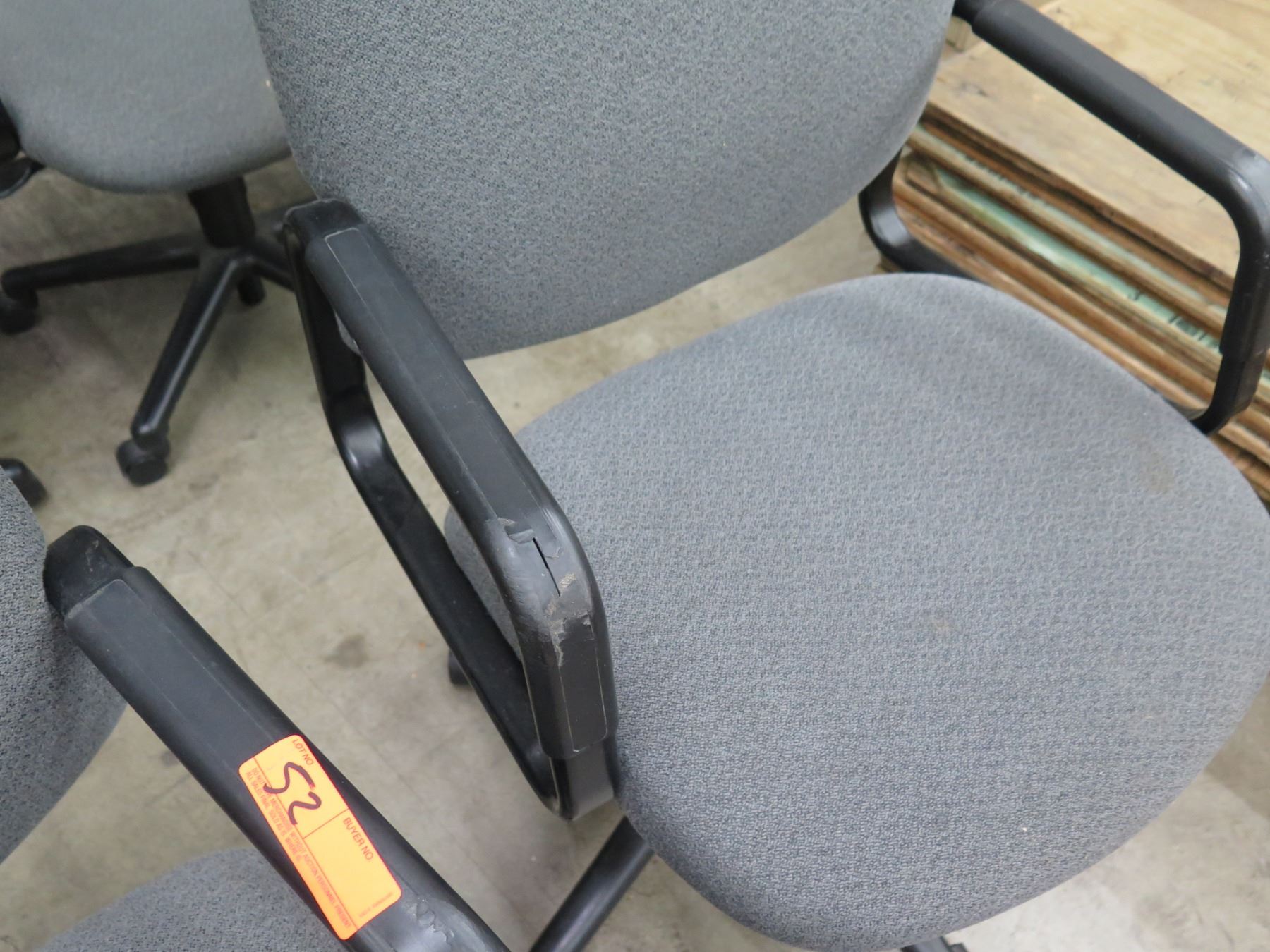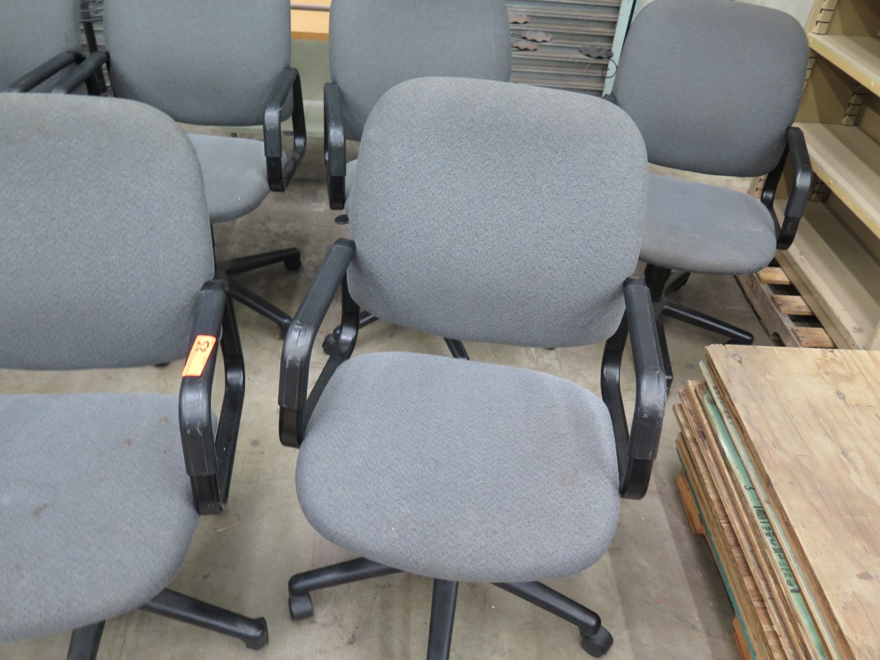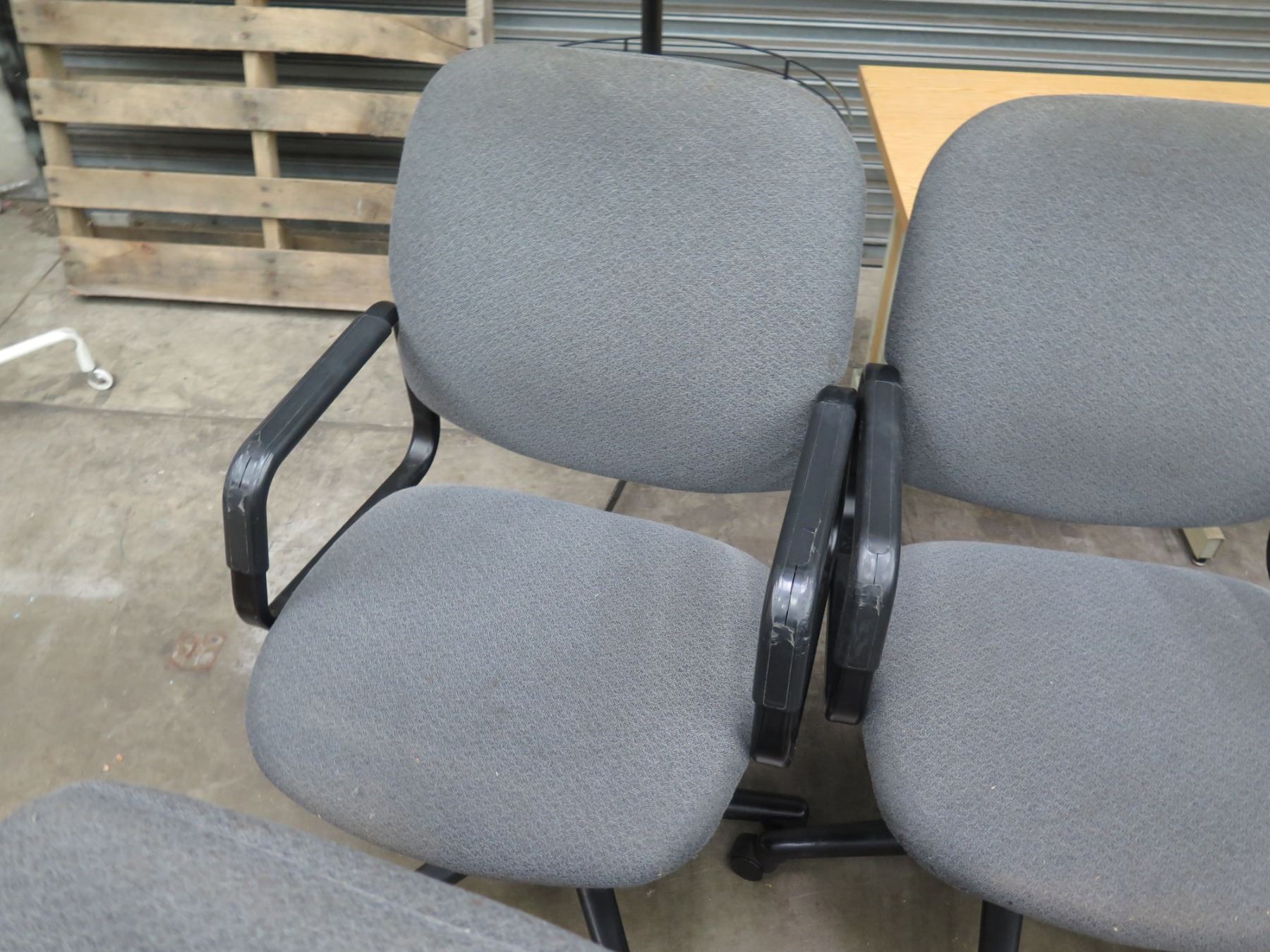Qty 7 Gray Upholstered Office Arm Chairs on Wheels