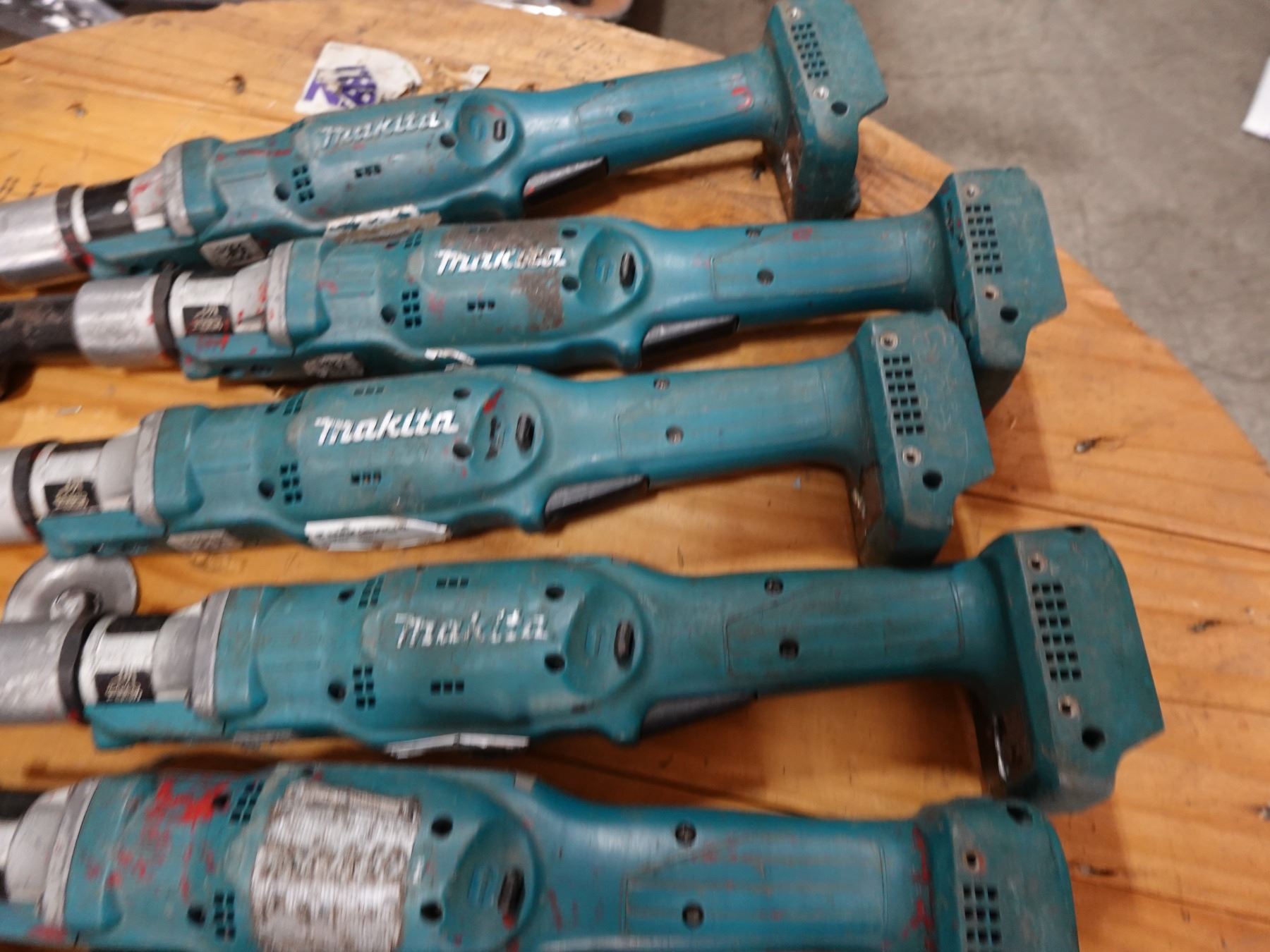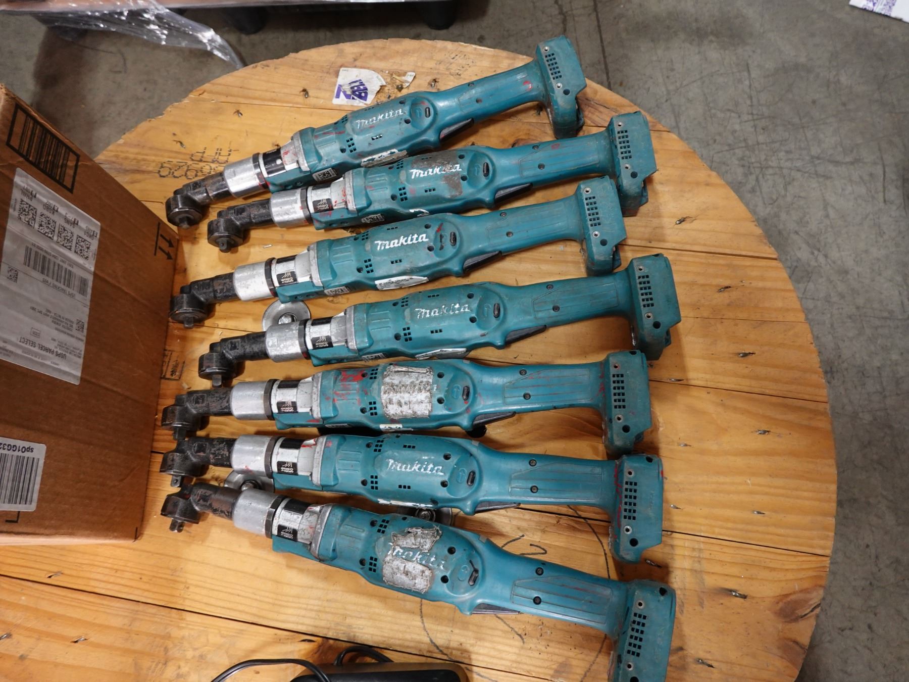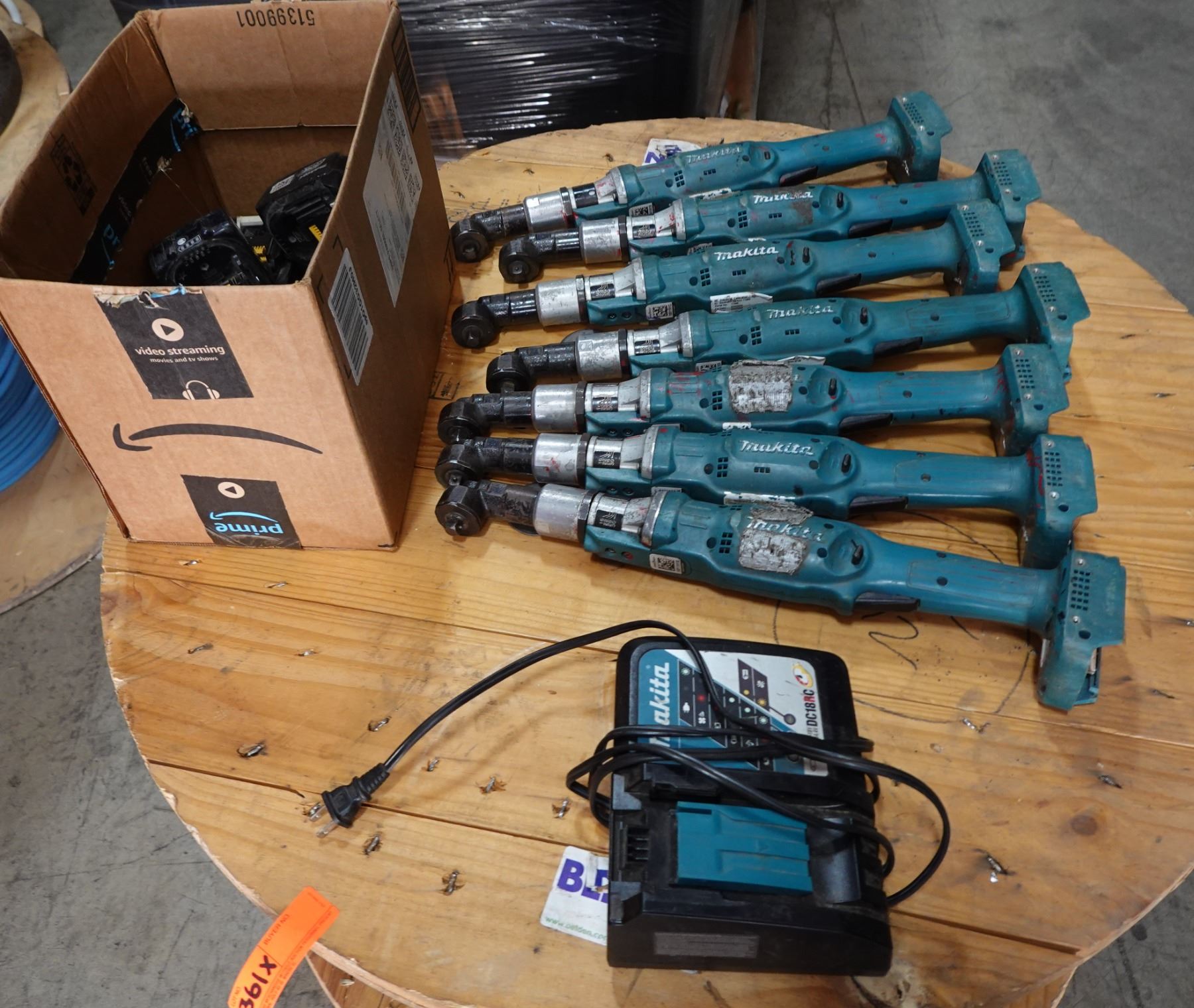 Qty 7 Makita DFL302F Angle Screwdrivers, 2 Chargers & Multiple Batteries
