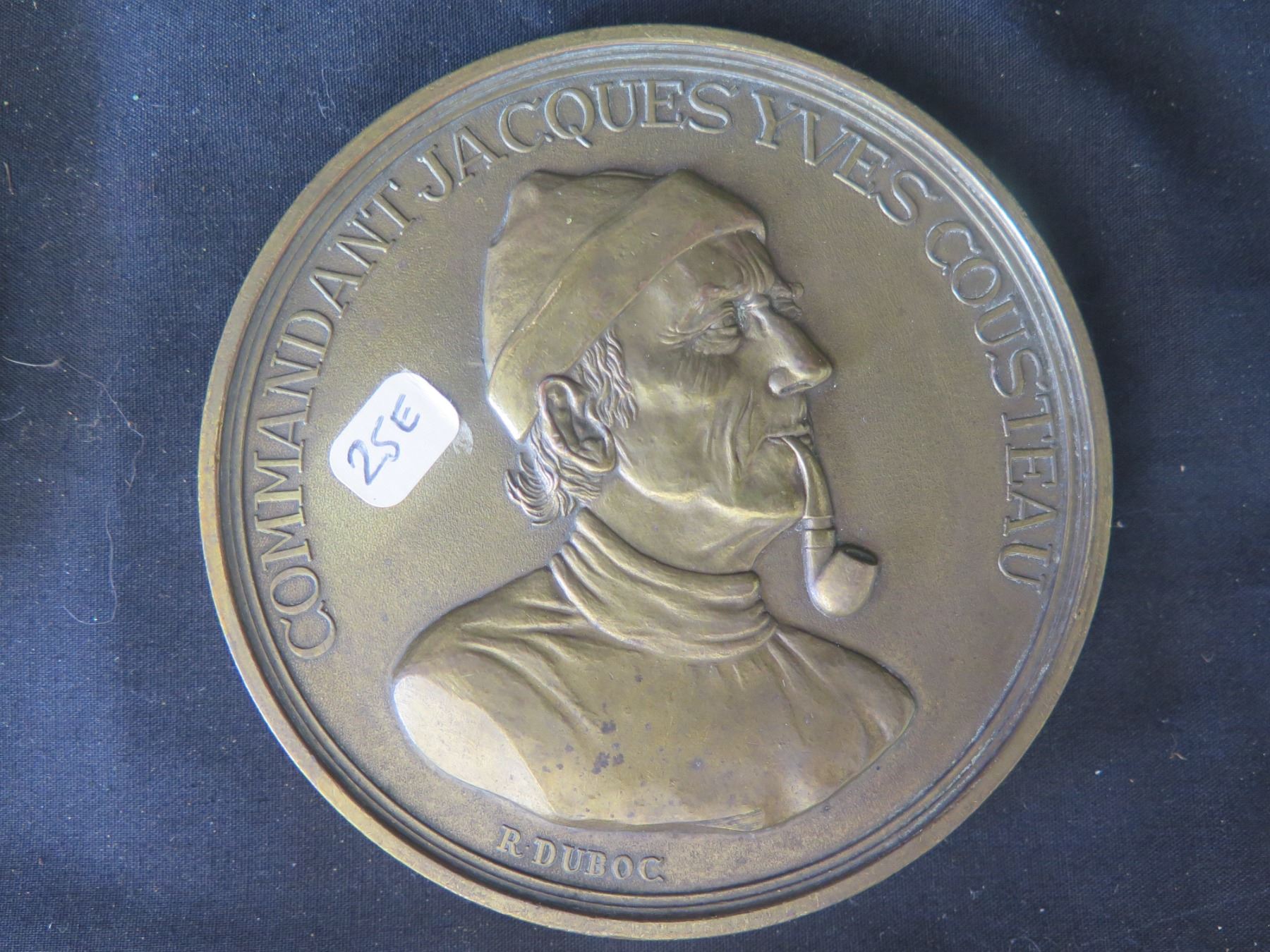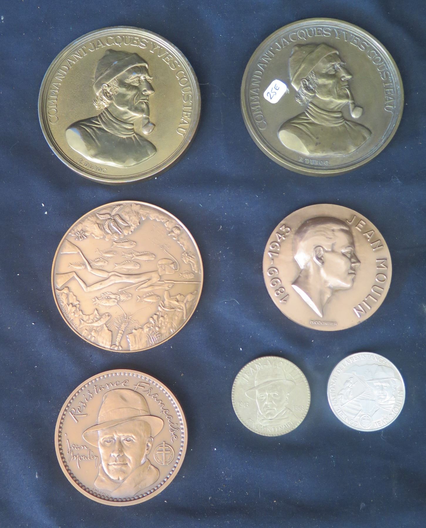 Qty 7 Medals & Coins: Jacques Cousteau, Jean Moulin, etc - Some Marked
