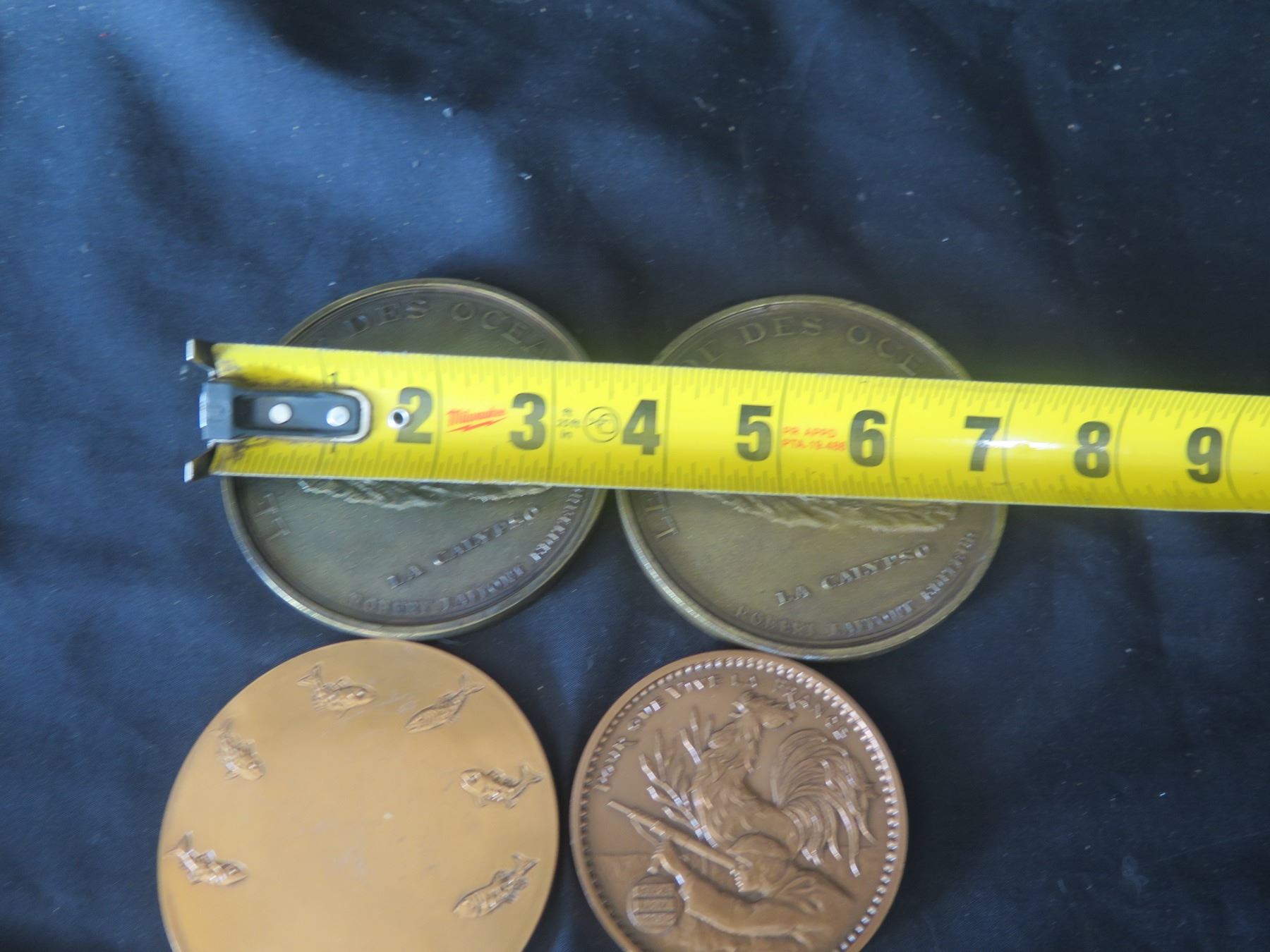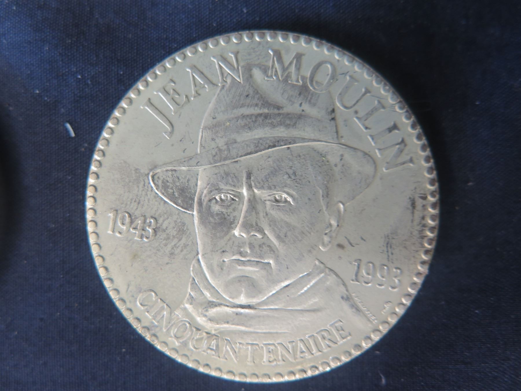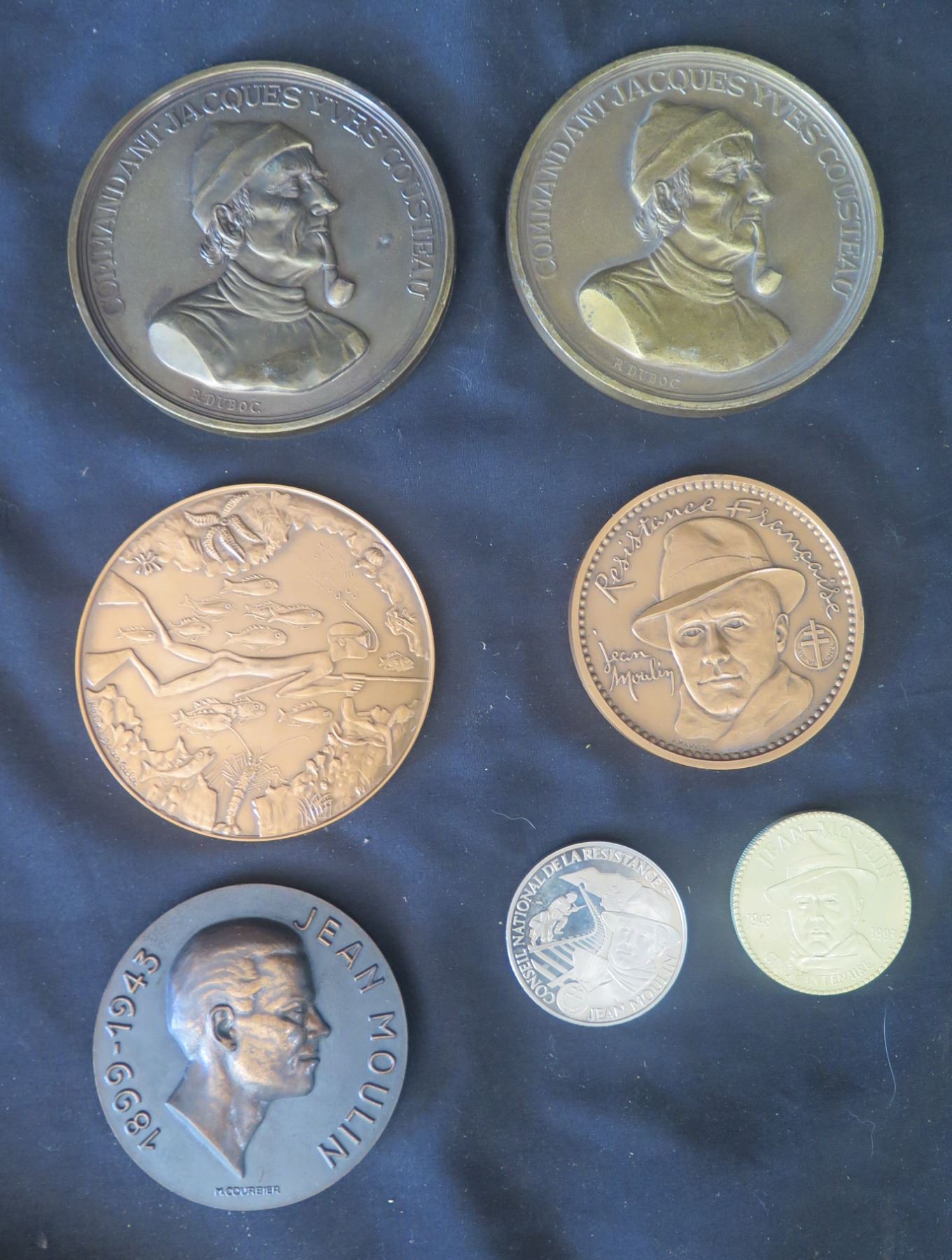 Qty 7 Medals & Coins: Jacques Cousteau, Jean Moulin, etc - Some Marked