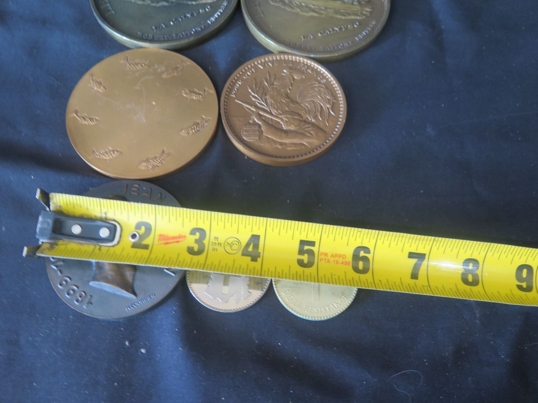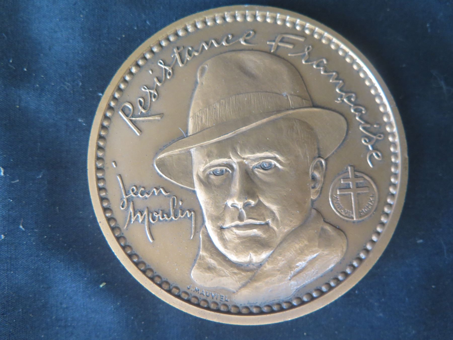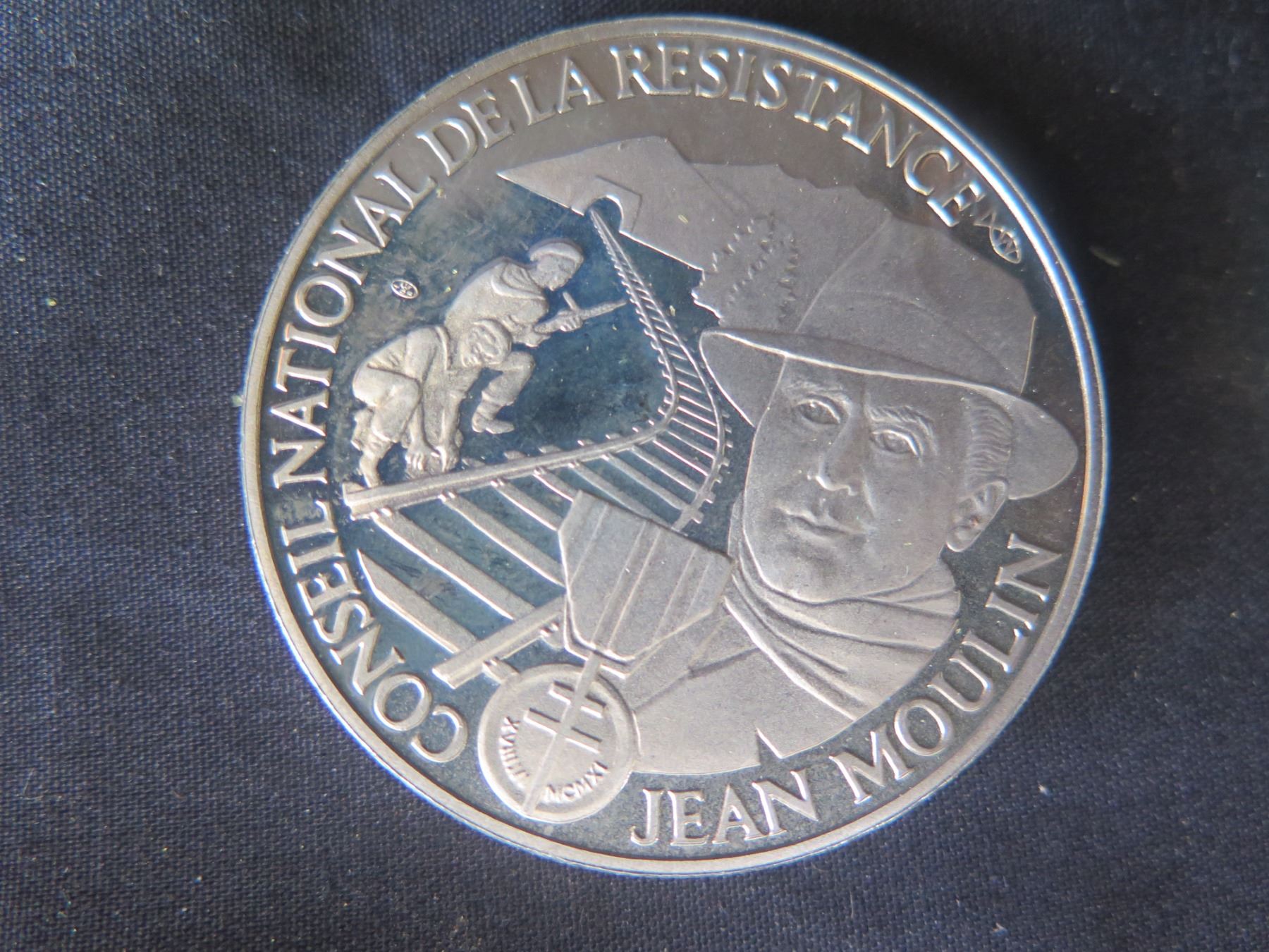 Qty 7 Medals & Coins: Jacques Cousteau, Jean Moulin, etc - Some Marked