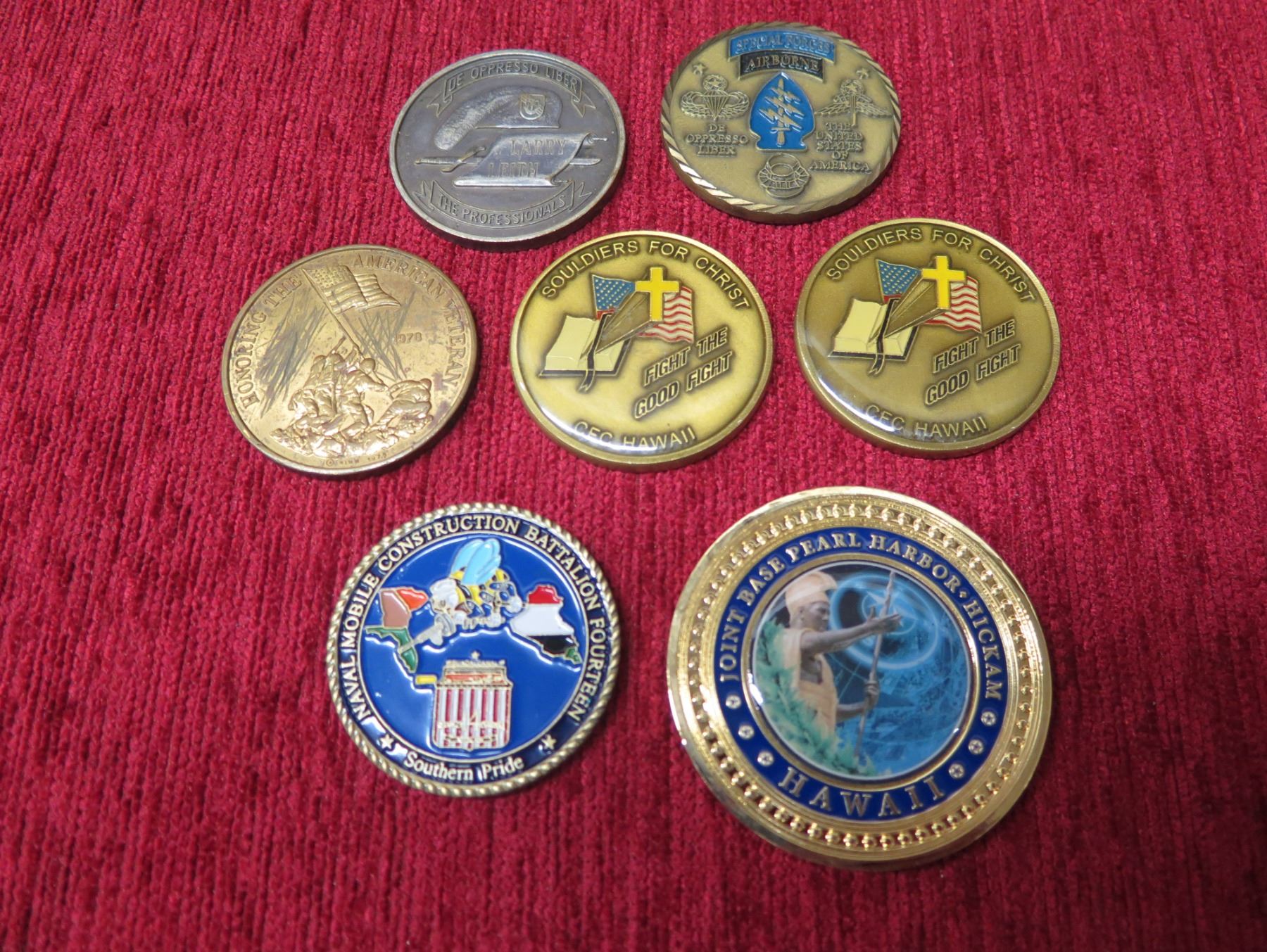 Qty 7 Medals: Special Forces, Army Green Beret, RIMPAC 2010, Soldiers for Christ, etc