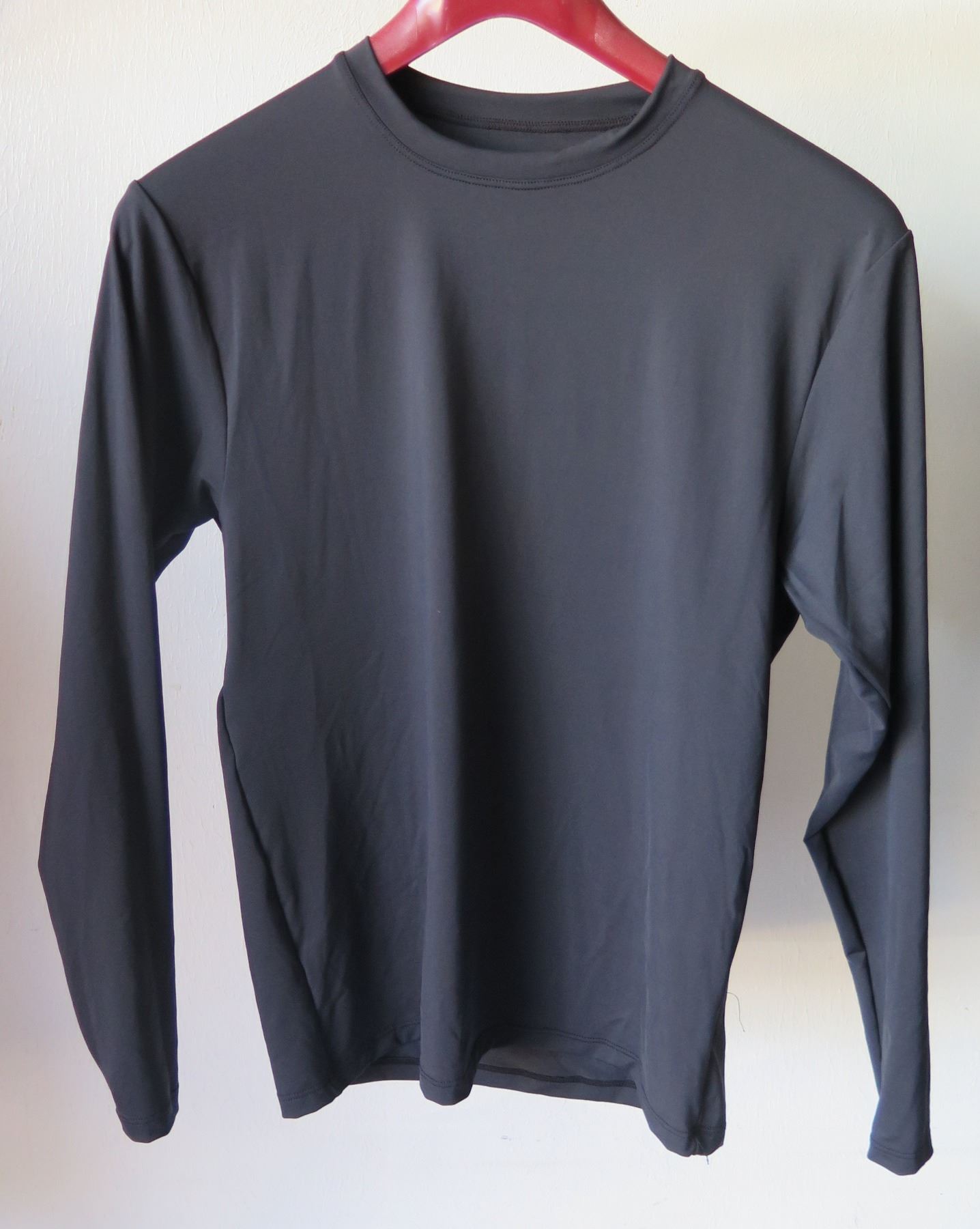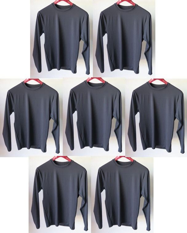 Qty 7 Mens Relaxed Fit Long Sleeve Lycra UV Tops, Black, Size S