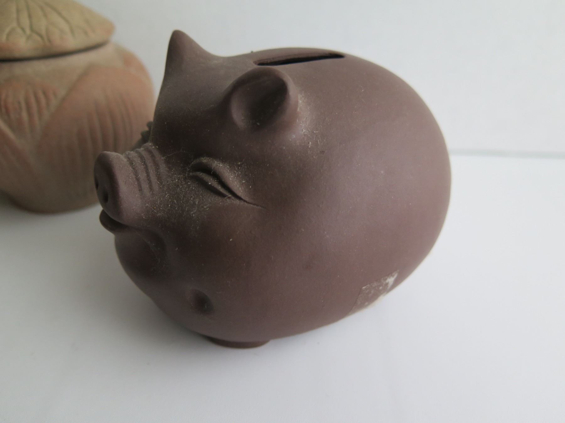 Qty 7 Misc. 3 Ceramic Teapots, Piggy Bank, Bowl & Covered Jars