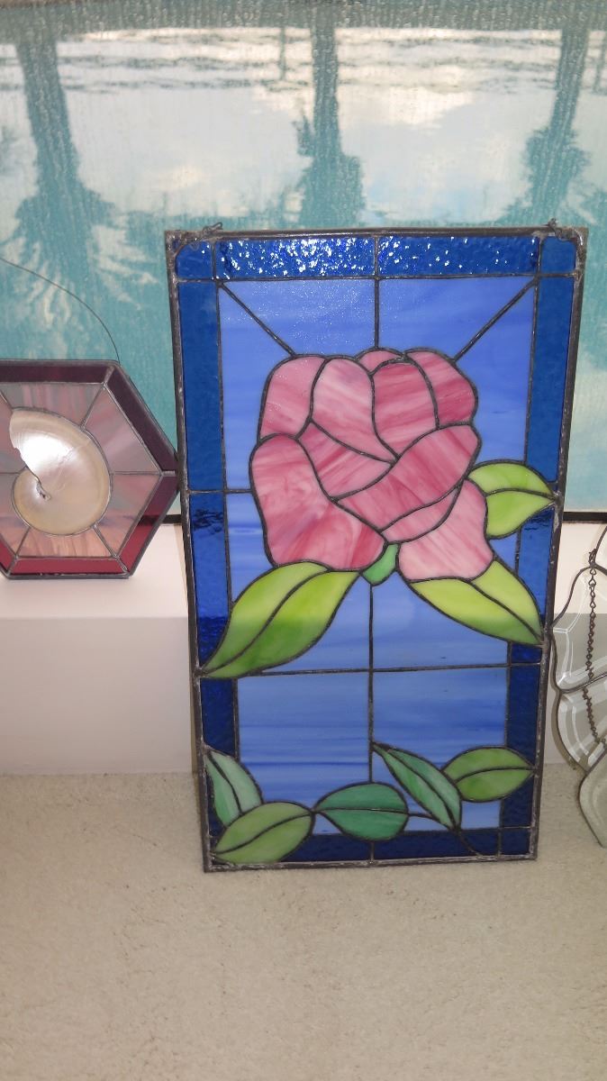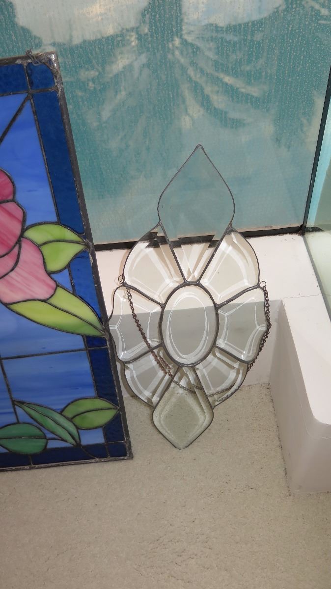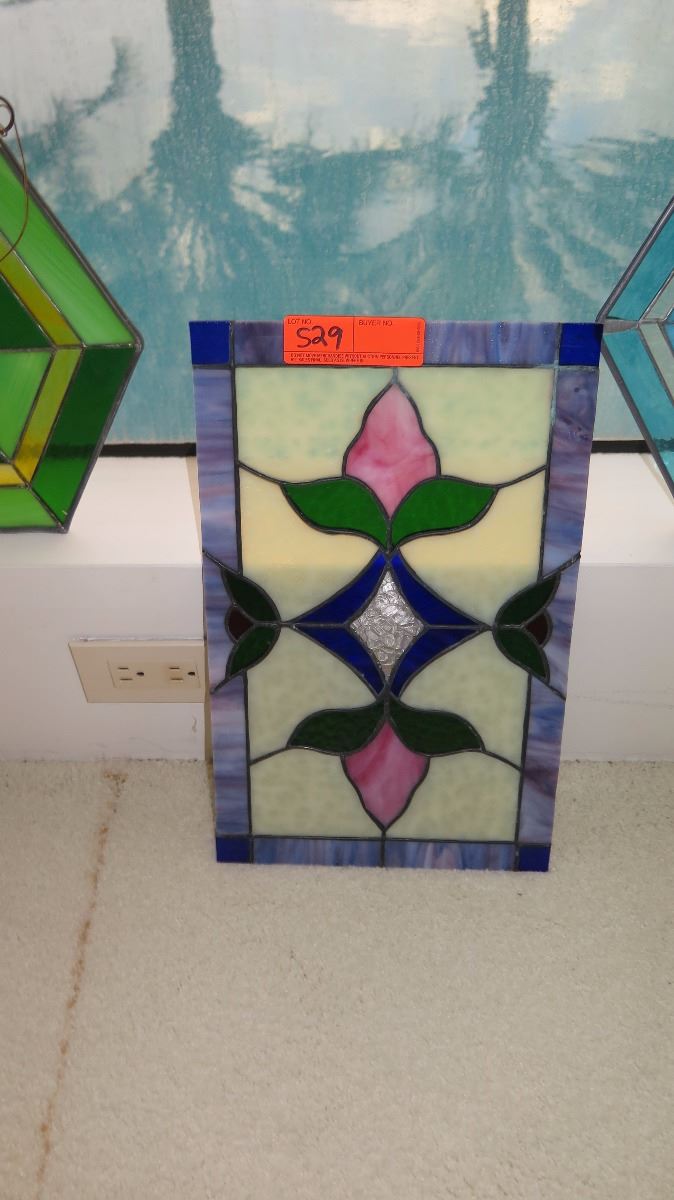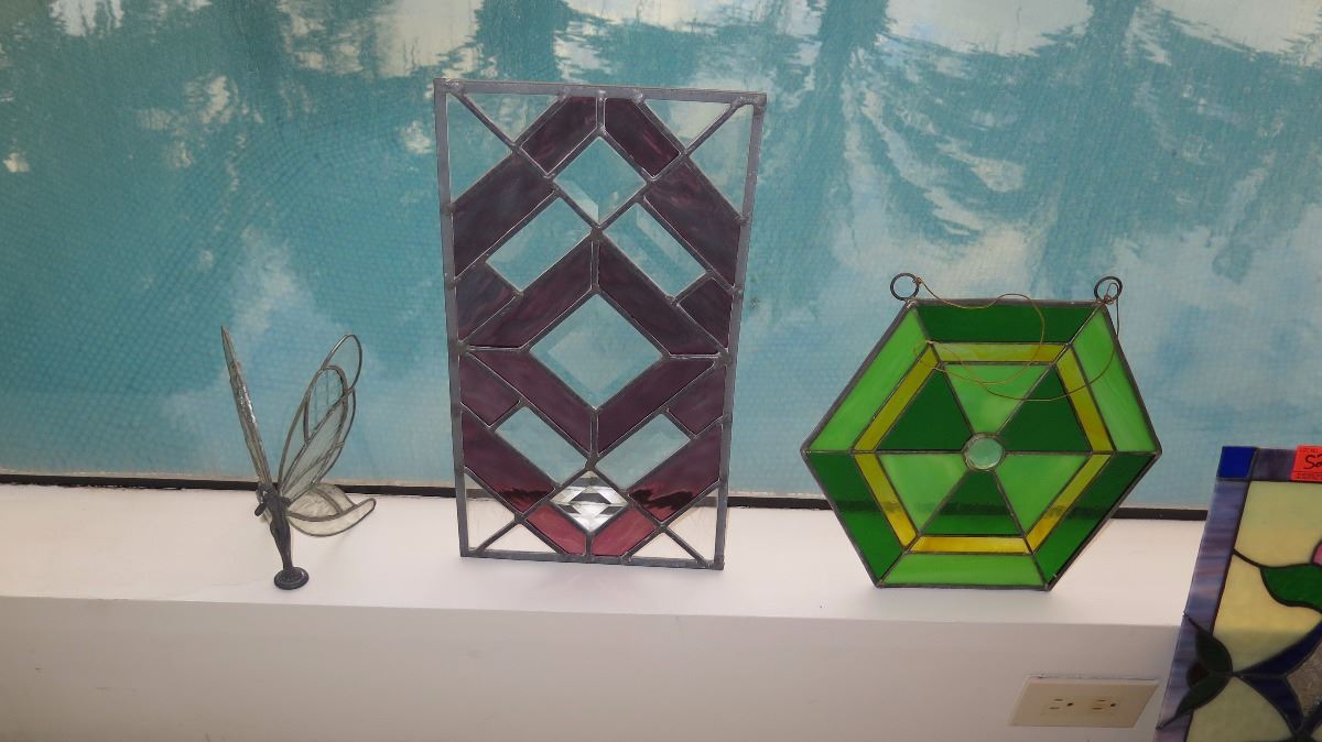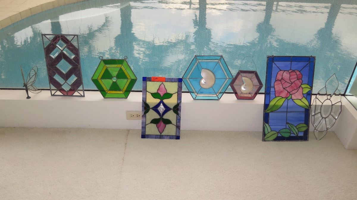 Qty 7 Misc. Stained Glass Panels (Various Colors, Shapes, Style)