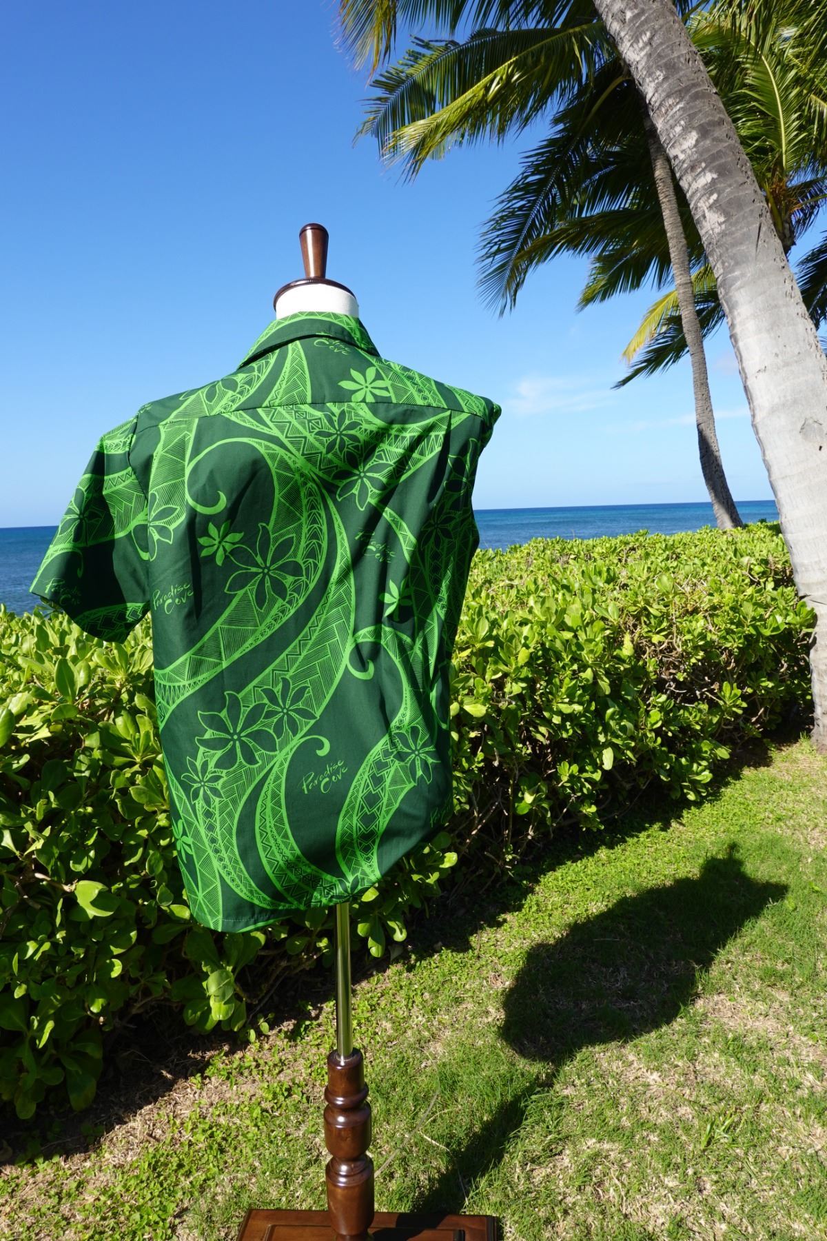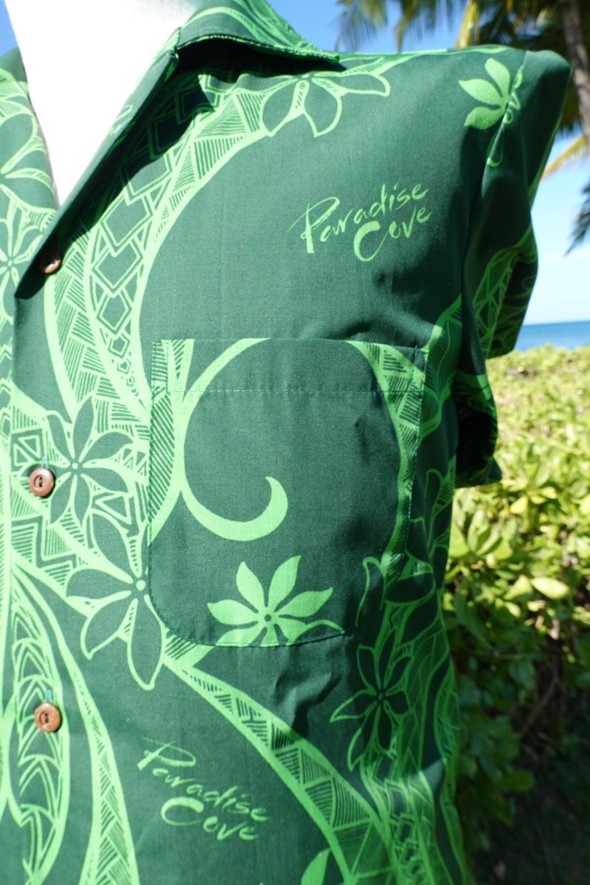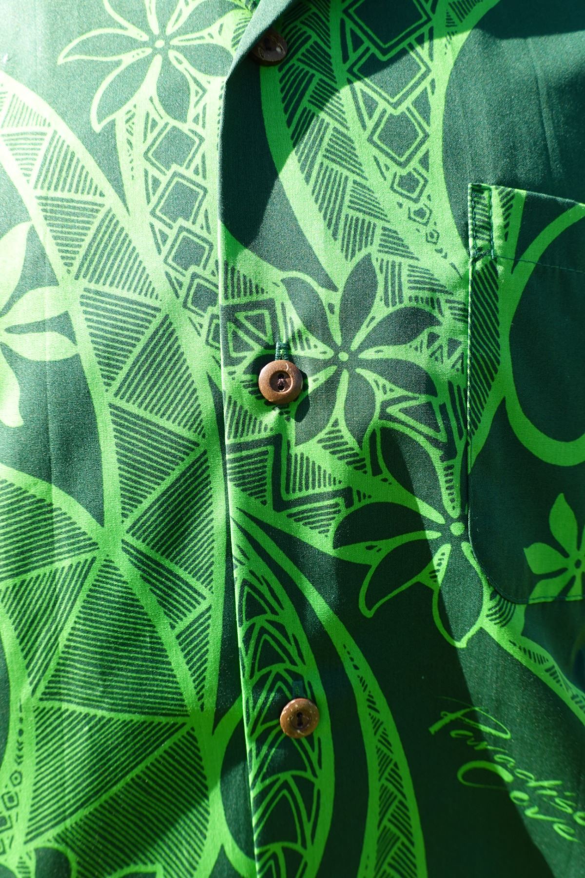 Qty 7 Malihini Hawaii Men's Green Aloha Shirts w/ Paradise Cove Hot/Cold Bag