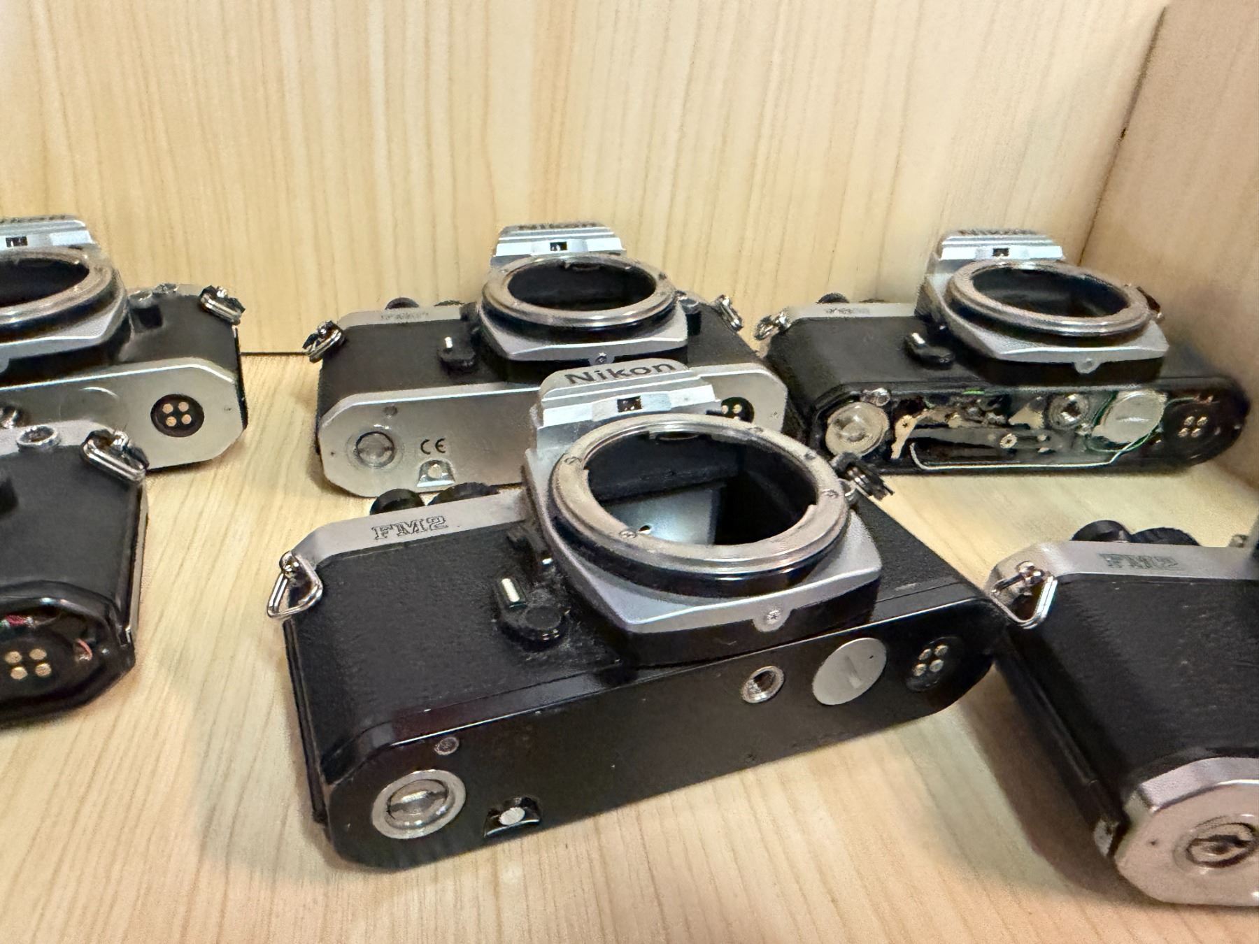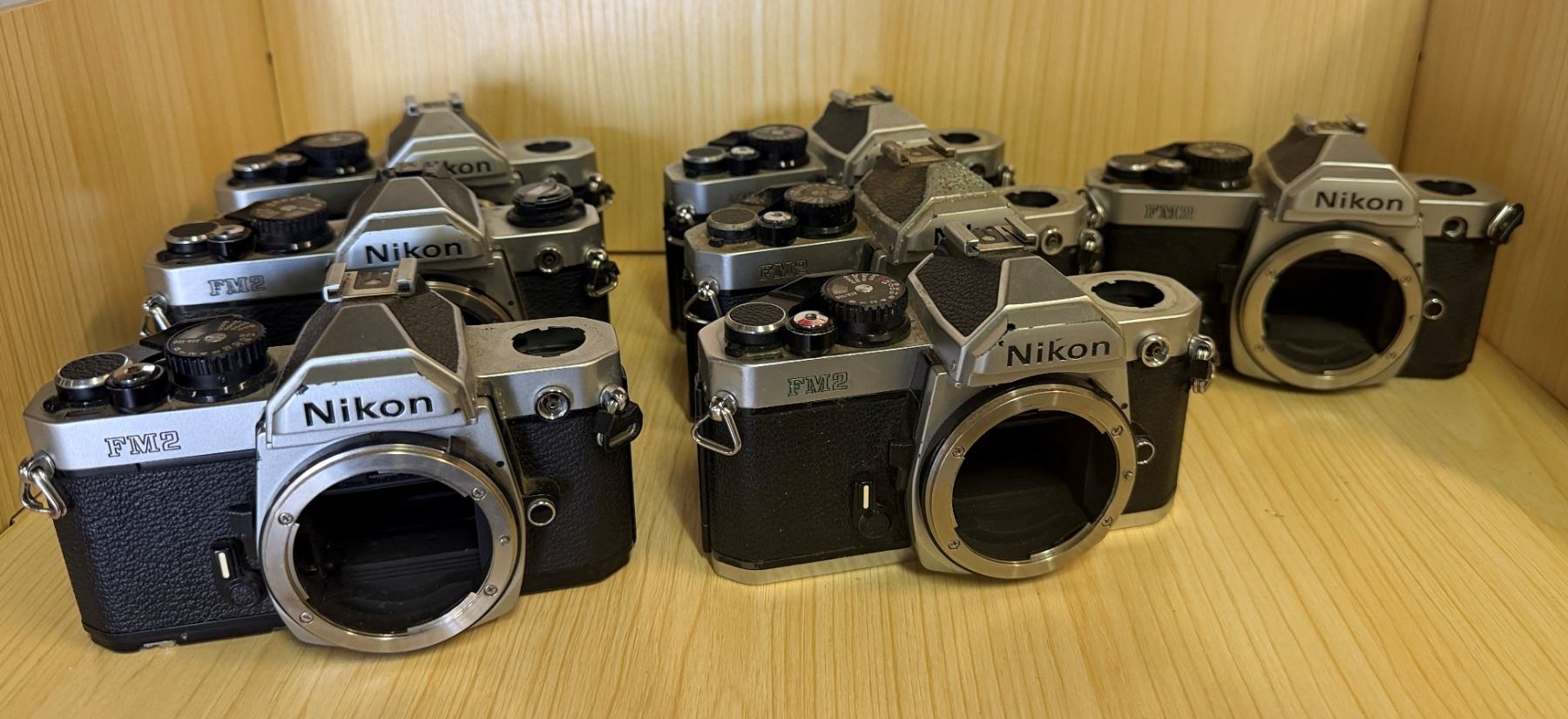 Qty 7 Nikon FM2 35mm Film SLR Camera Bodies (for parts or repair)