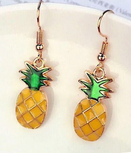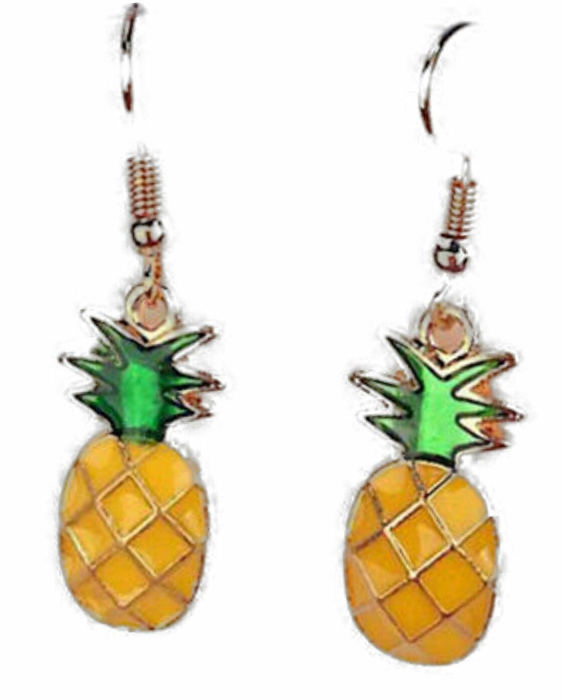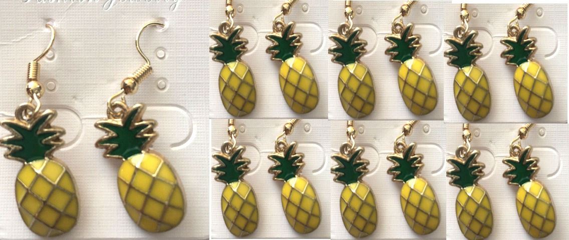 Qty 7 Pair Gold-Tone Pineapple Hook Earrings w/ Enamel Accents