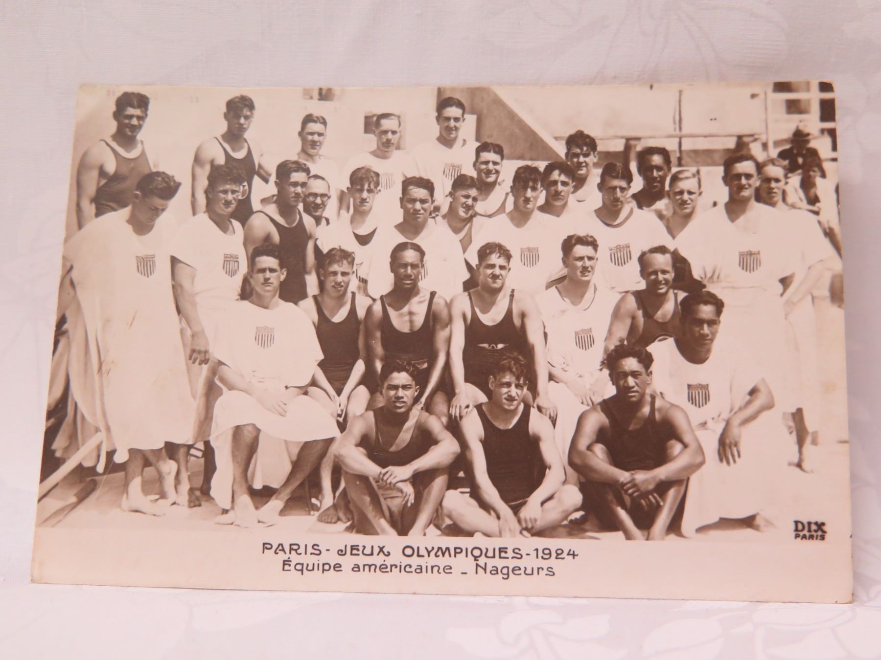 Postcard of Kahanamoku Brothers Duke, Sam and David with1924 Olympic Team