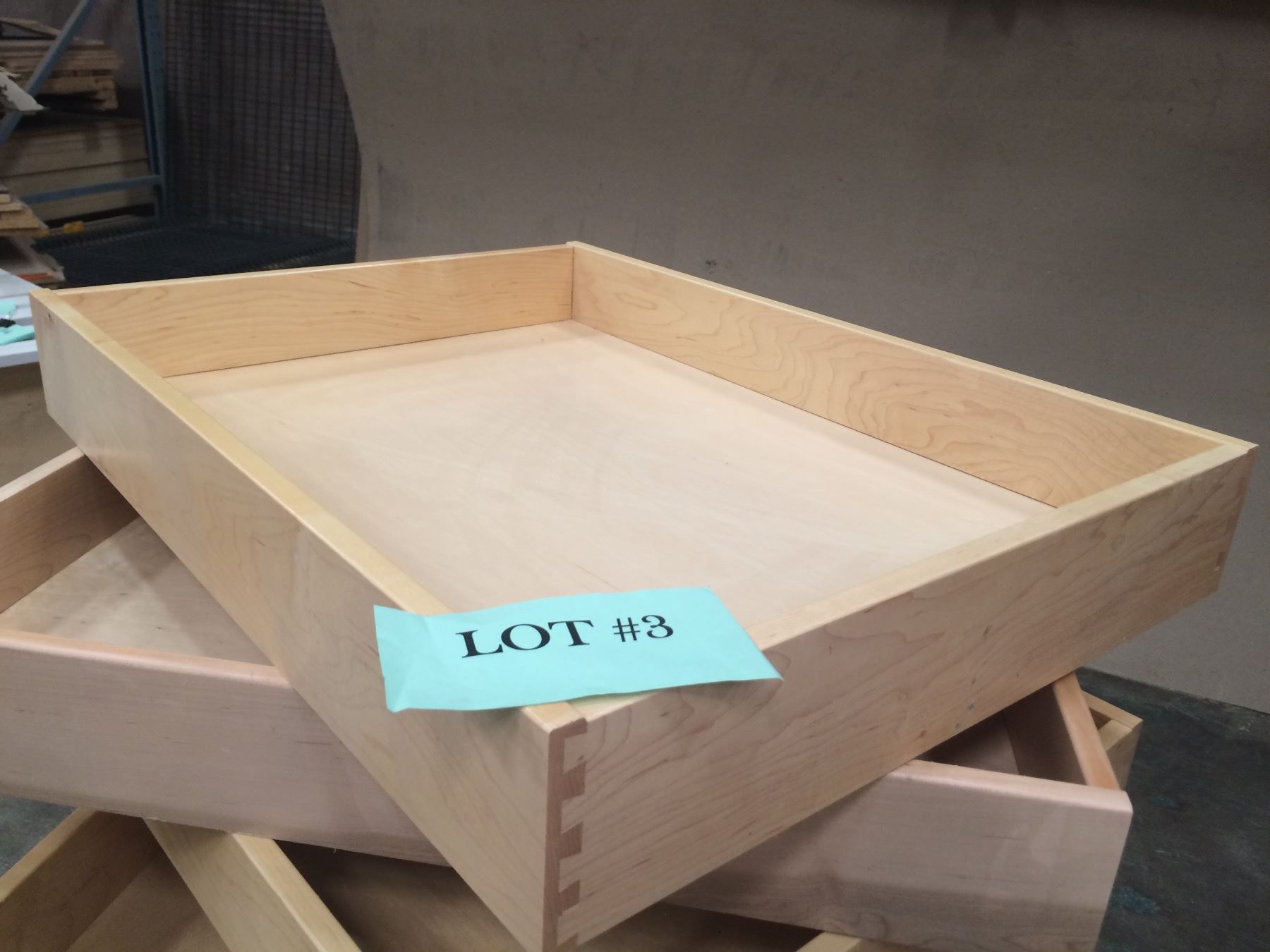 Qty 7 Solid Maple Dovetail Cabinet Drawer Boxes. 4”H x 21-1/16”D, 28-1/8”L (1 w/grooves for undermount slides).