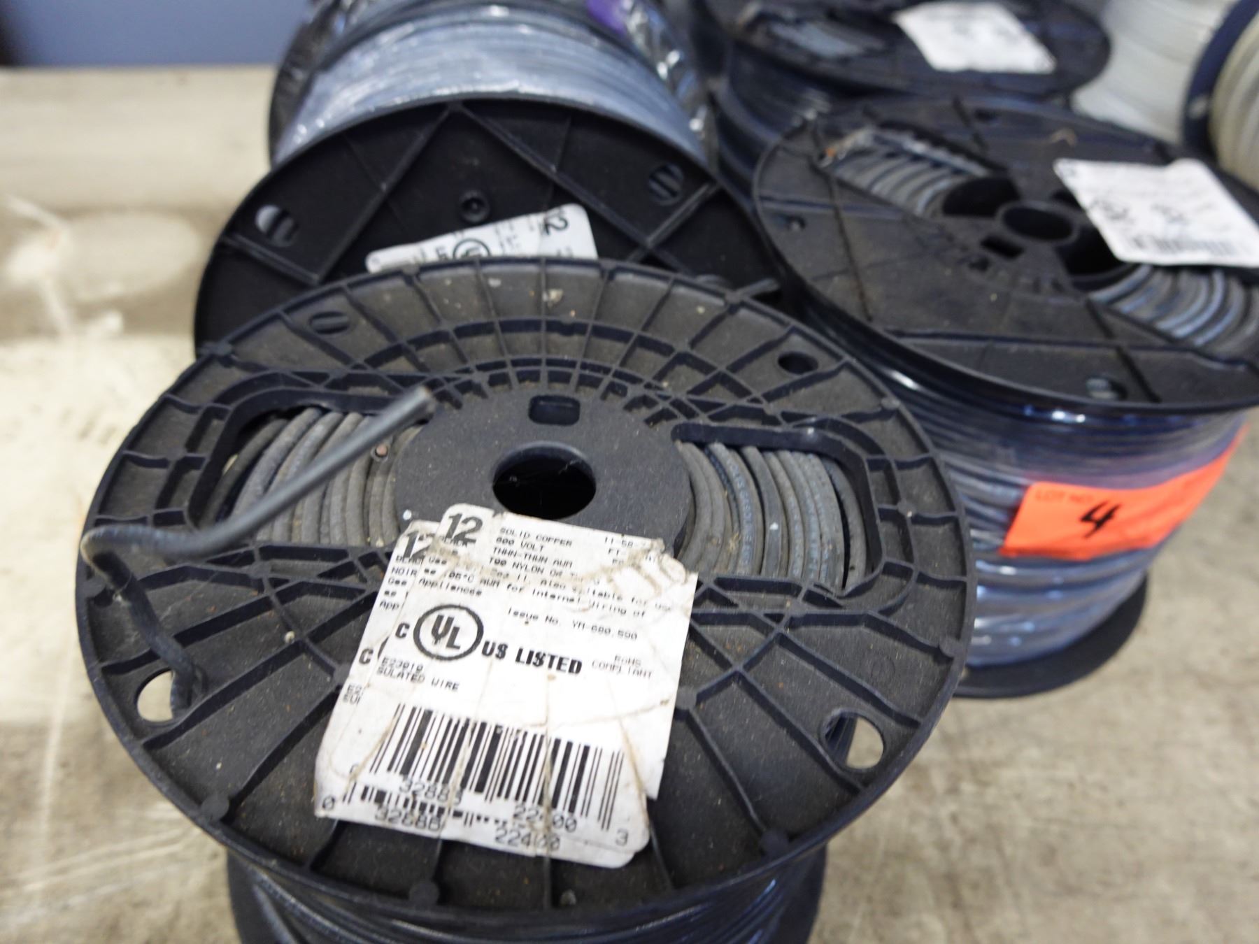Qty 7 Spools 11-58-? Black 12 AWG Stranded Copper THHN Wire (500' per spool)