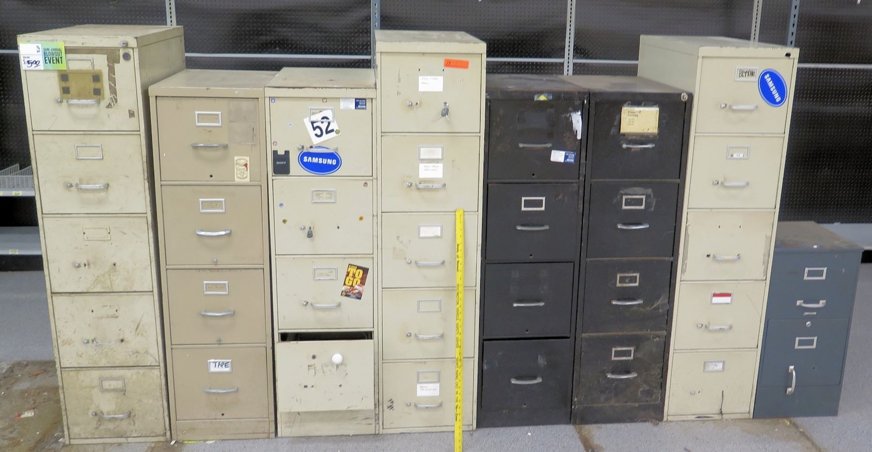 Qty 7 Vertical 4 Drawer File Cabinets & 1 Short 2 Drawer File Cabinet