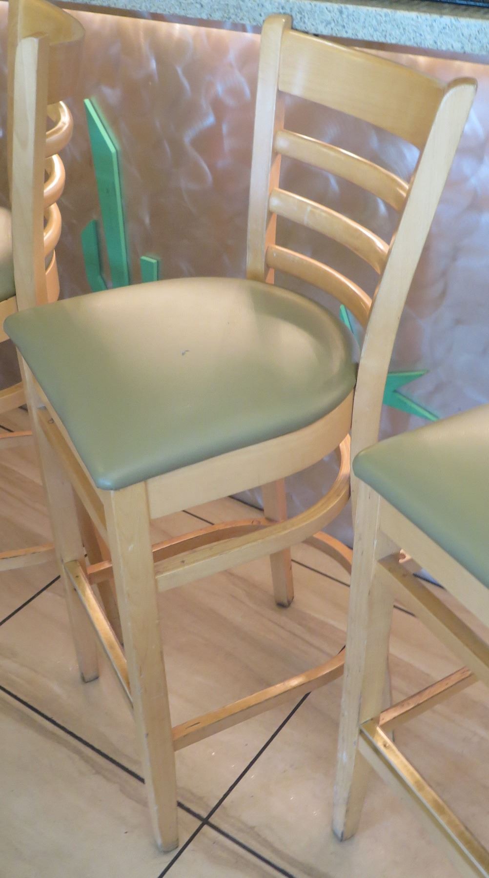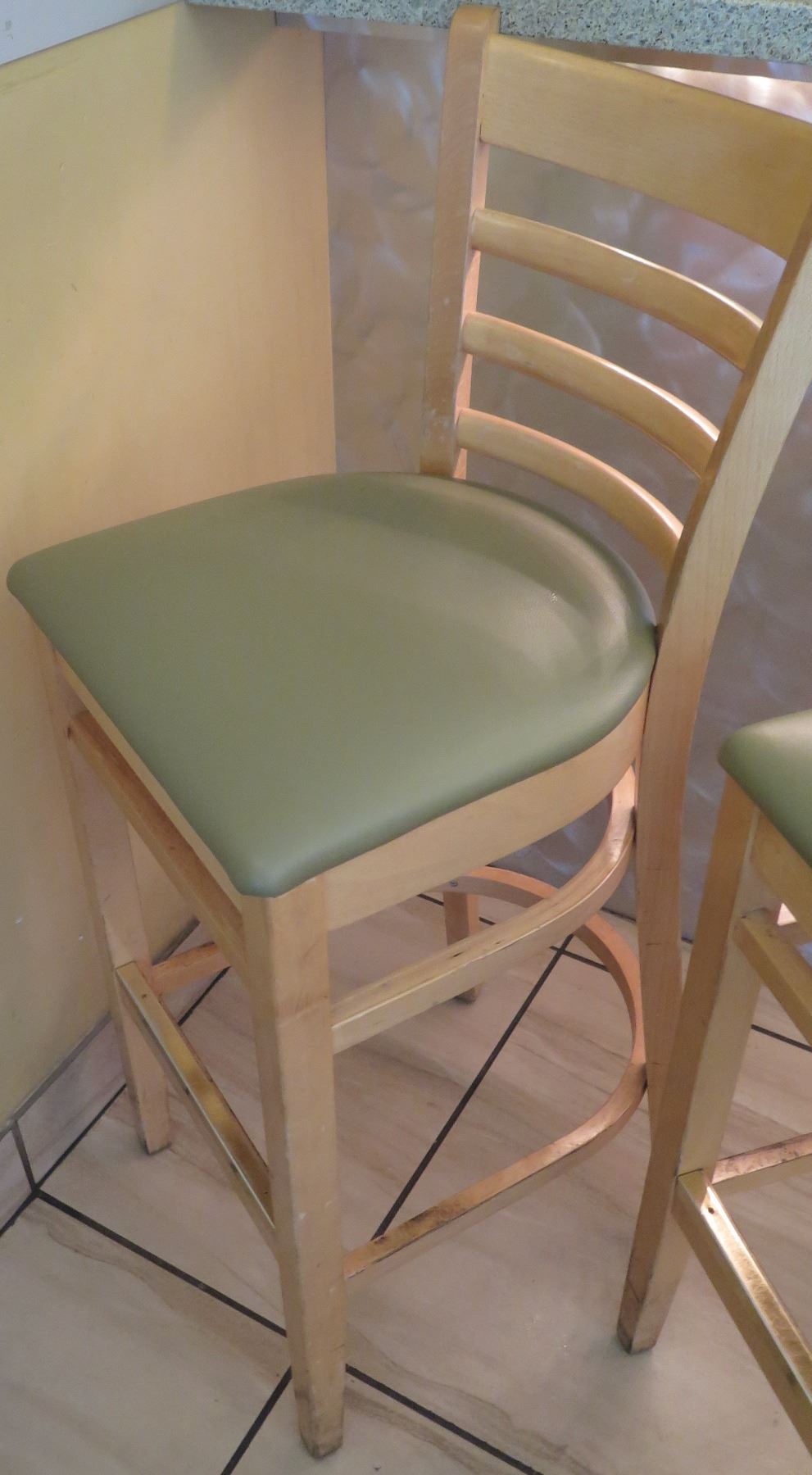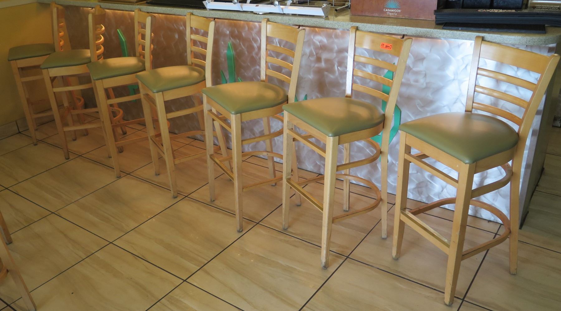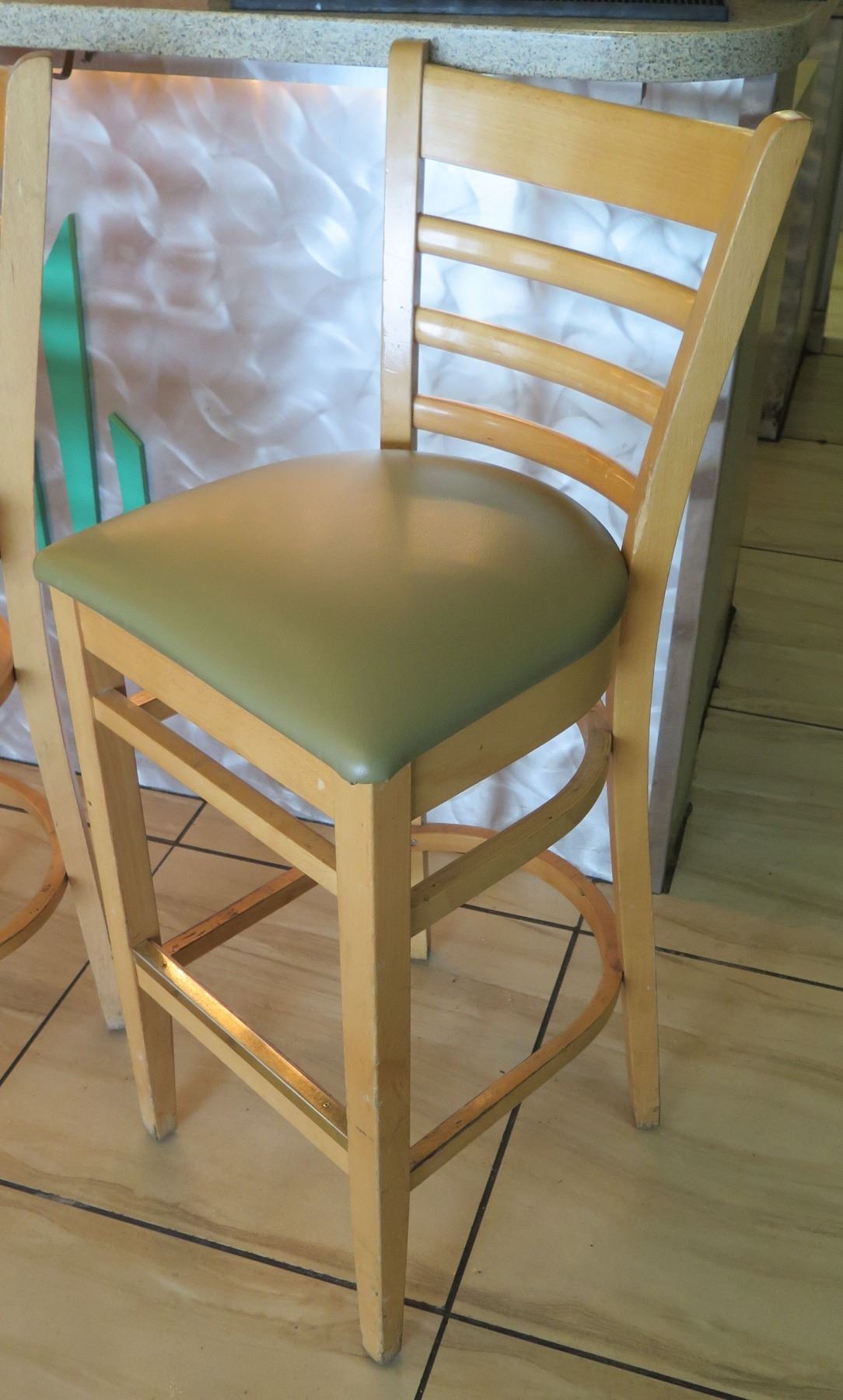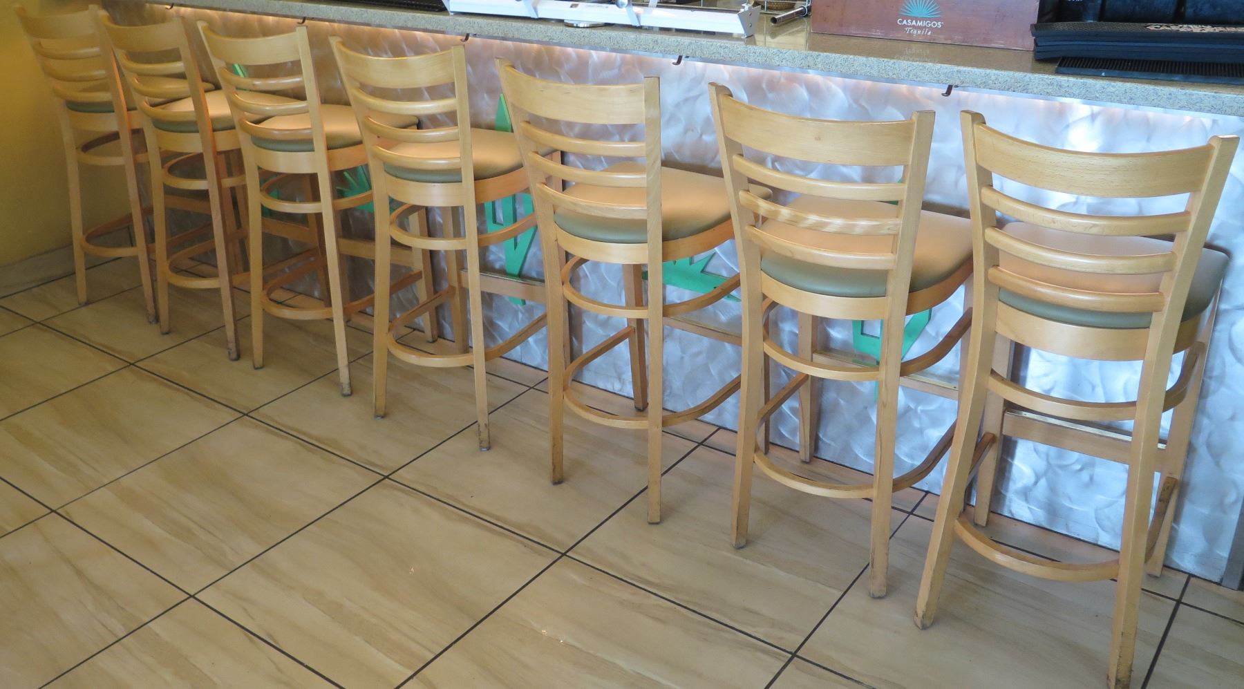 Qty 7 Wooden Bar Height Chairs w/Padded Seats (seat height 30.5")
