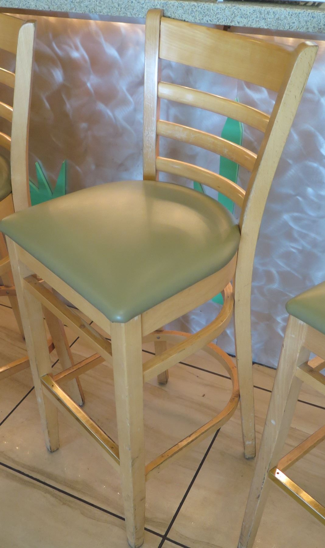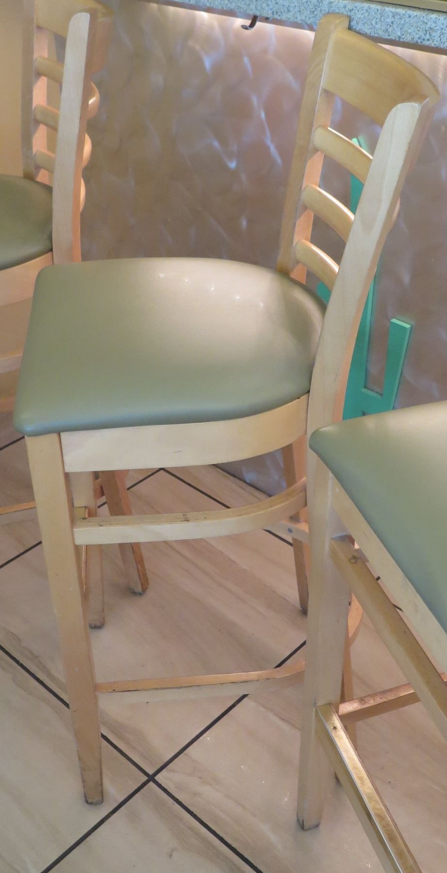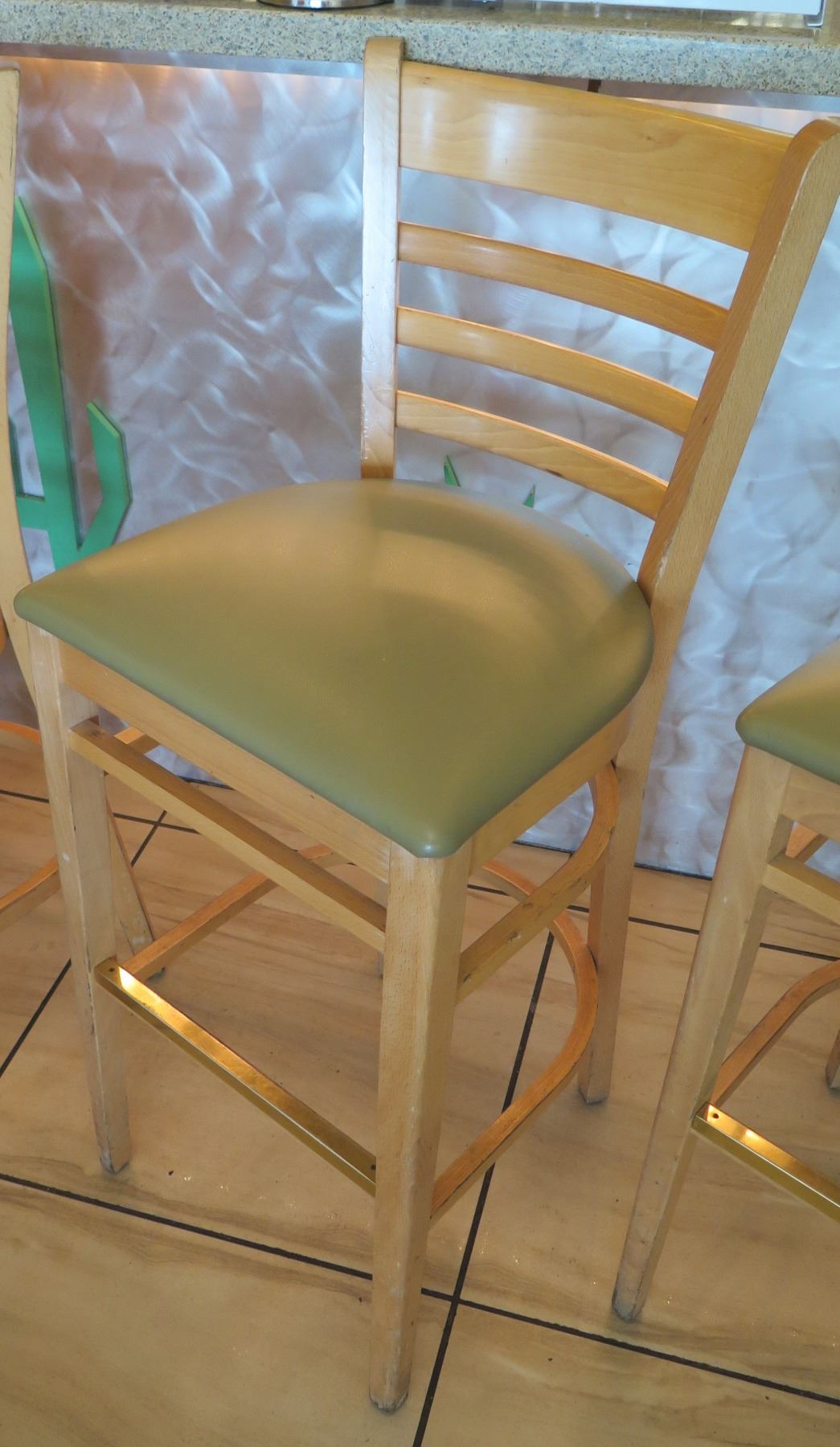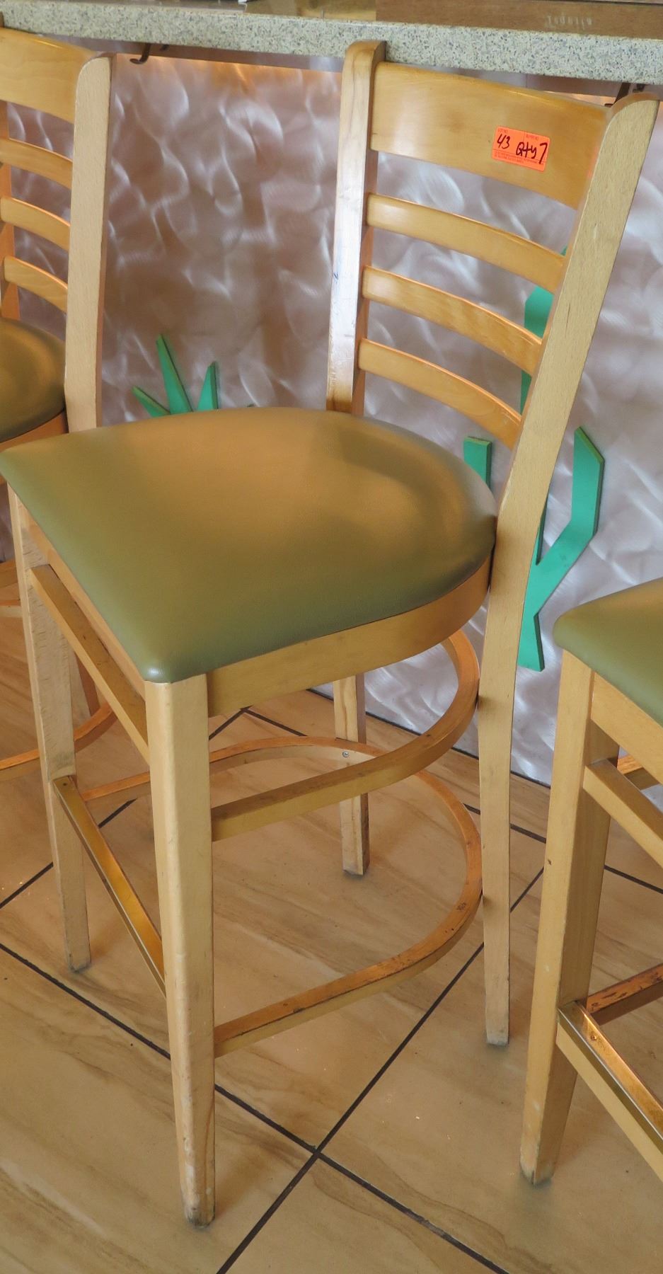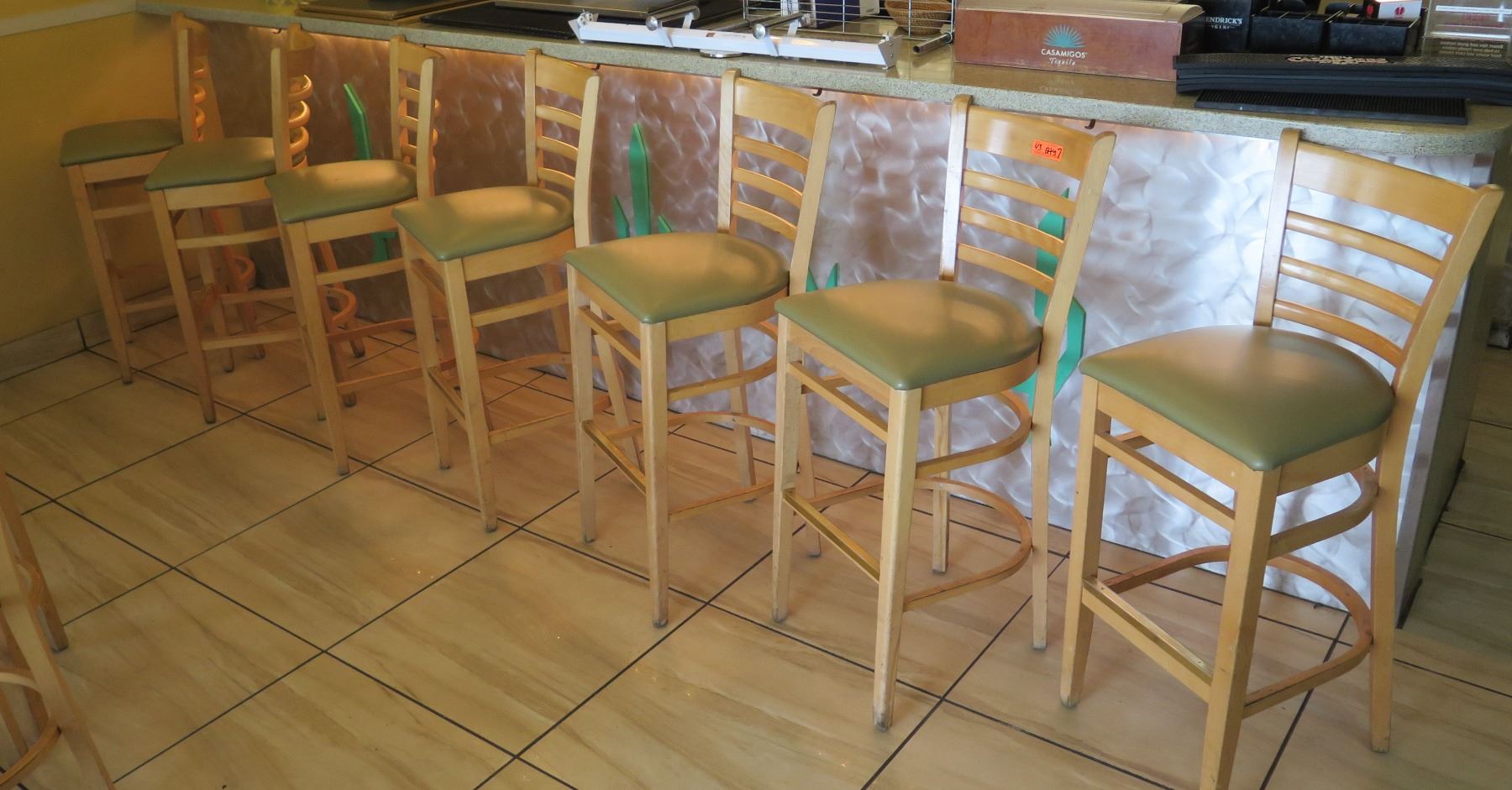 Qty 7 Wooden Bar Height Chairs w/Padded Seats (seat height 30.5")