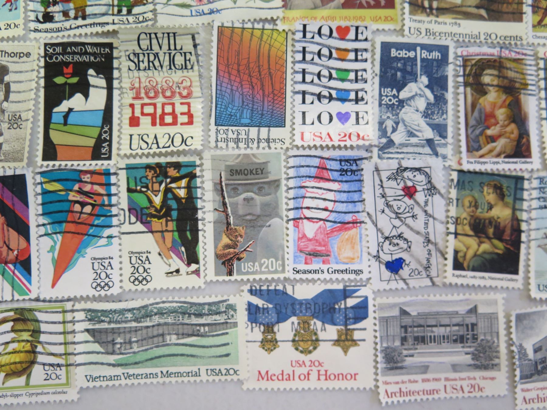 Qty 70+ USA 20-Cent Stamps, Misc Designs