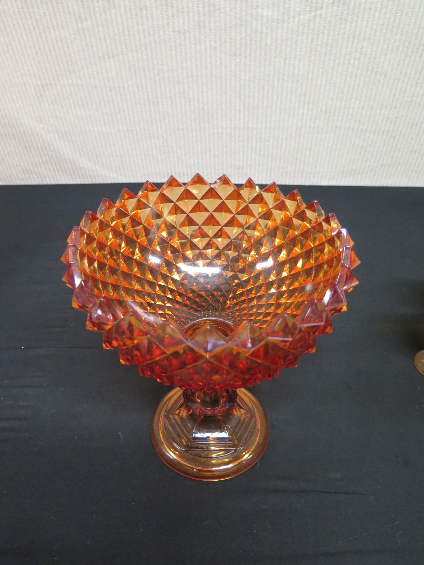 Qty 8 Amber Cut-Glass Goblets w/ Matching Stemmed Bowl & Bottle w/ Stopper