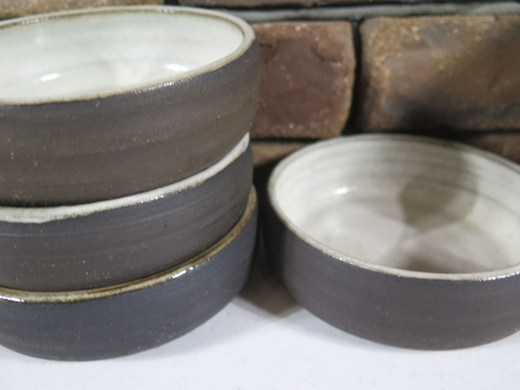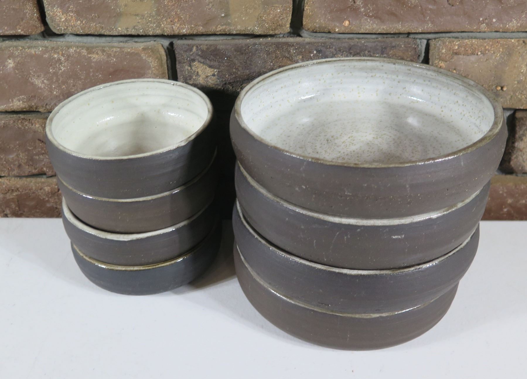 Qty 8 Brown Bowls w/ Maker's Marks 5"-7" dia