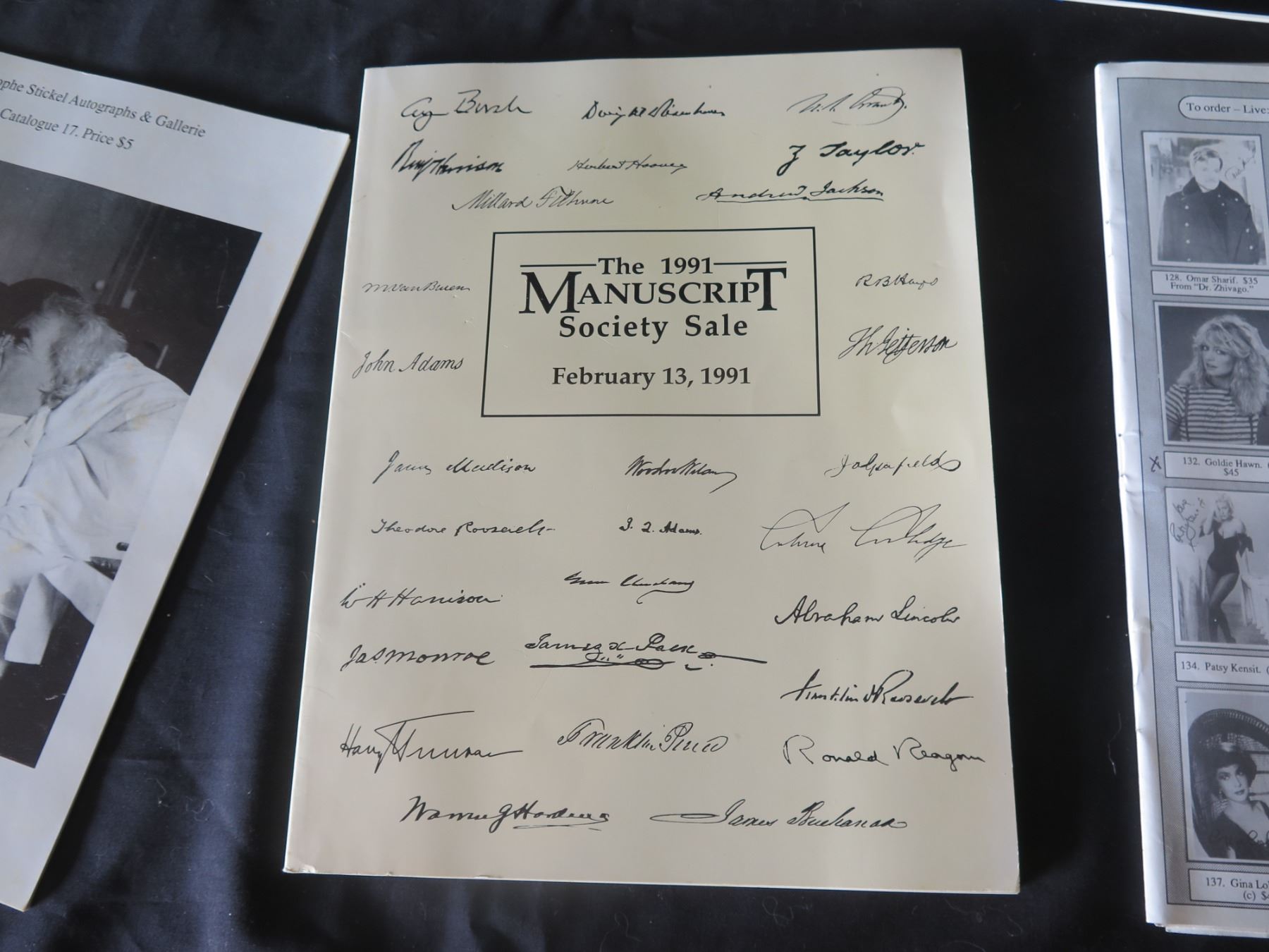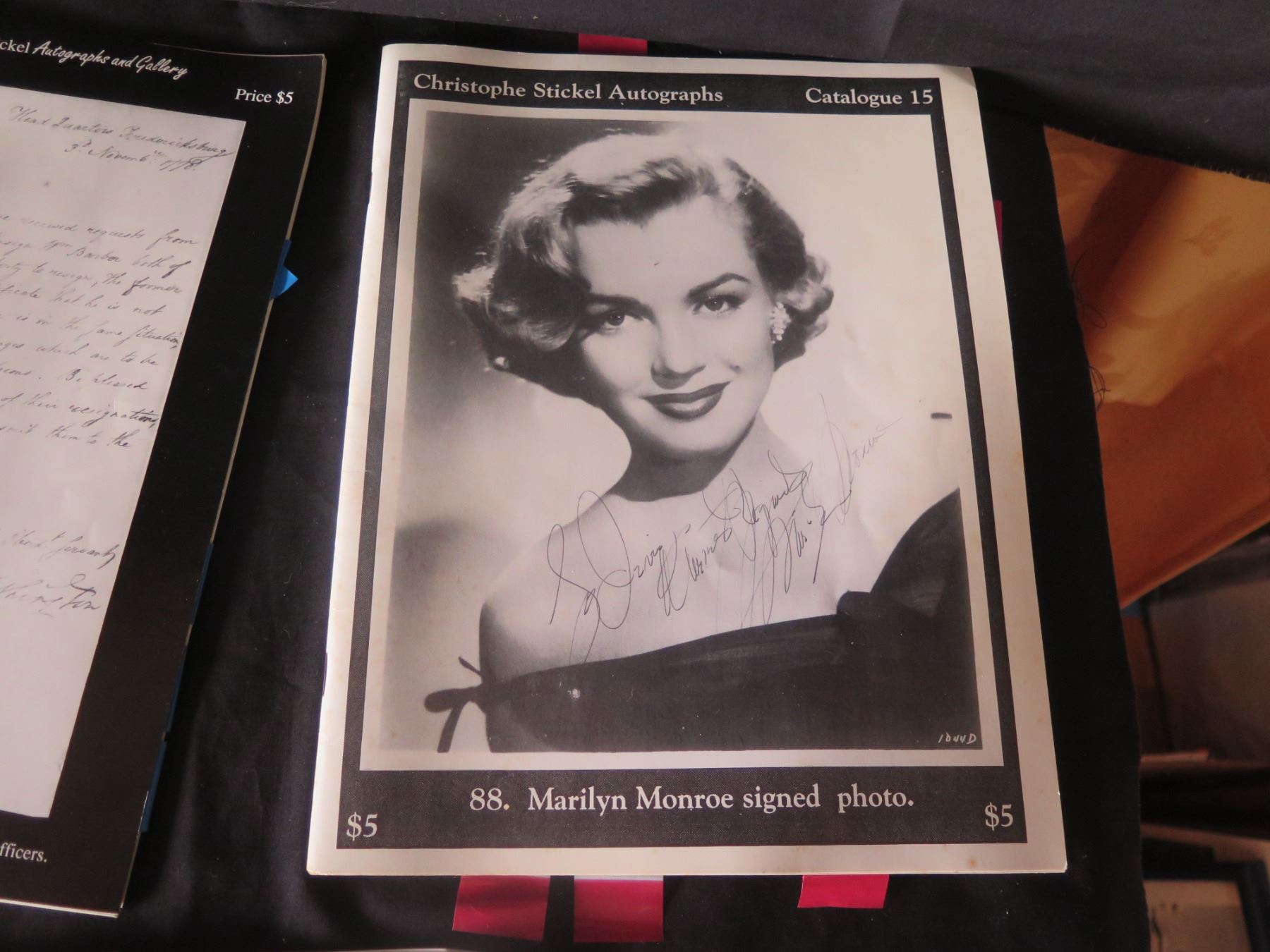 Qty 8 Celebrity Photos & Documents: Autograph Album, Marilyn Monroe, etc, Some Signed