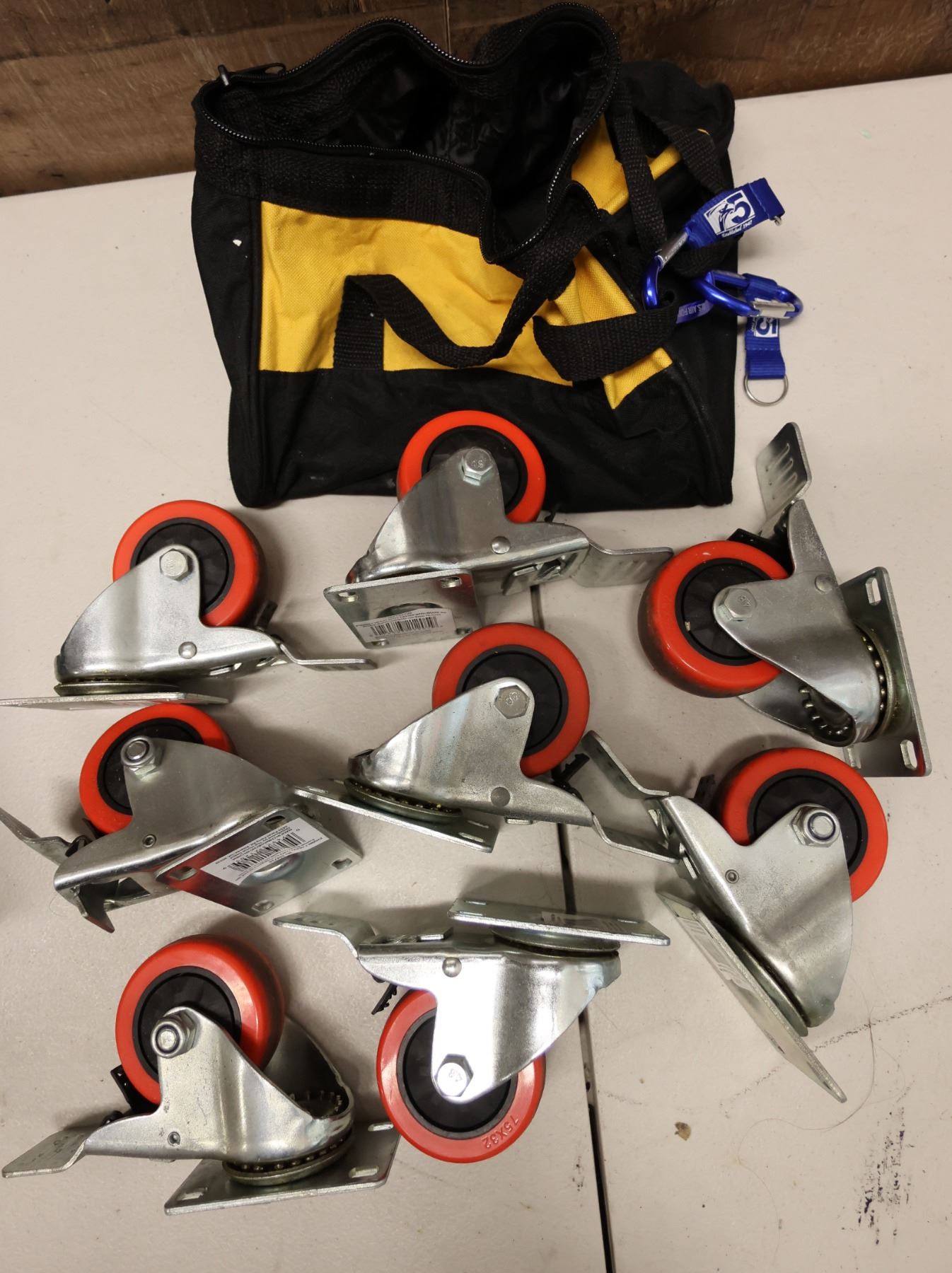 Qty 8 Everbilt Caster Wheels & DeWalt Carry Case