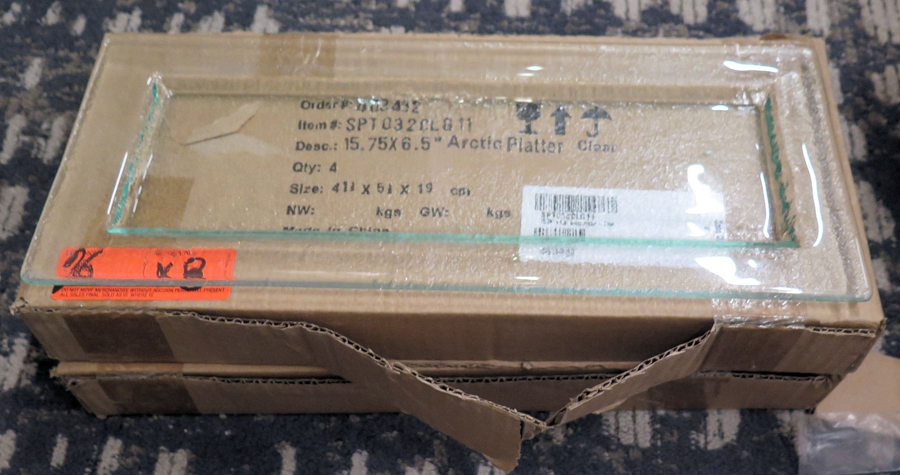 Qty 8 FOH SPT032CLG11 Arctic Rectangular Clear Glass Platters 15.75" x 6.5" New in Box ($136 total retail)