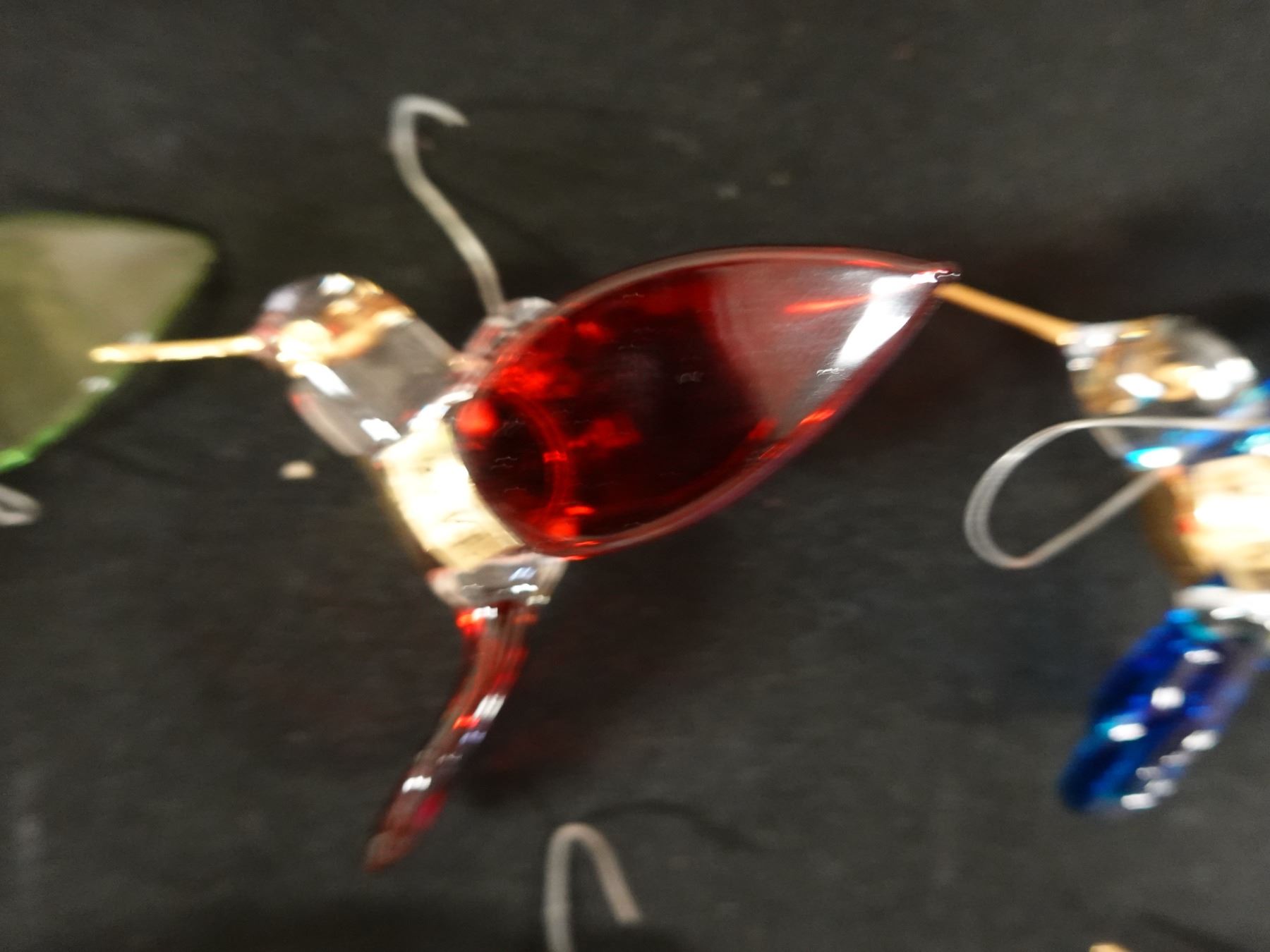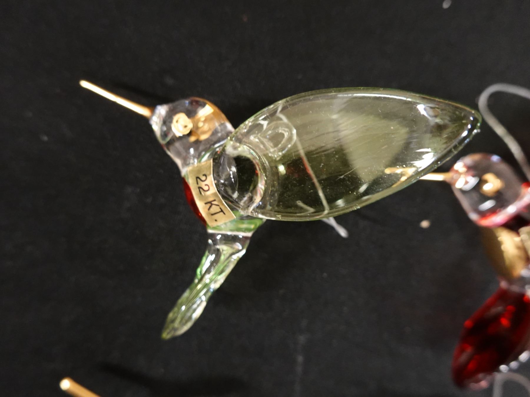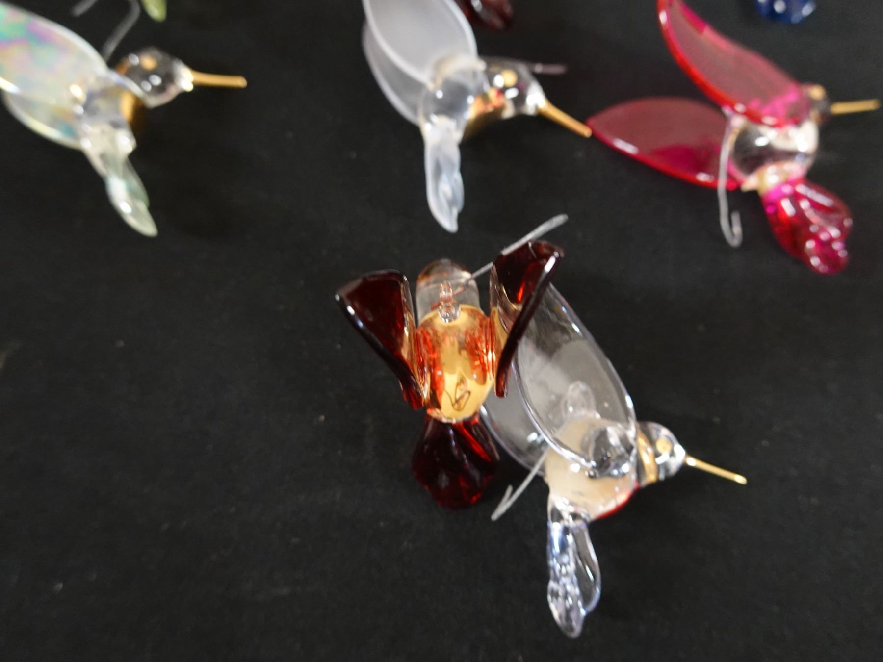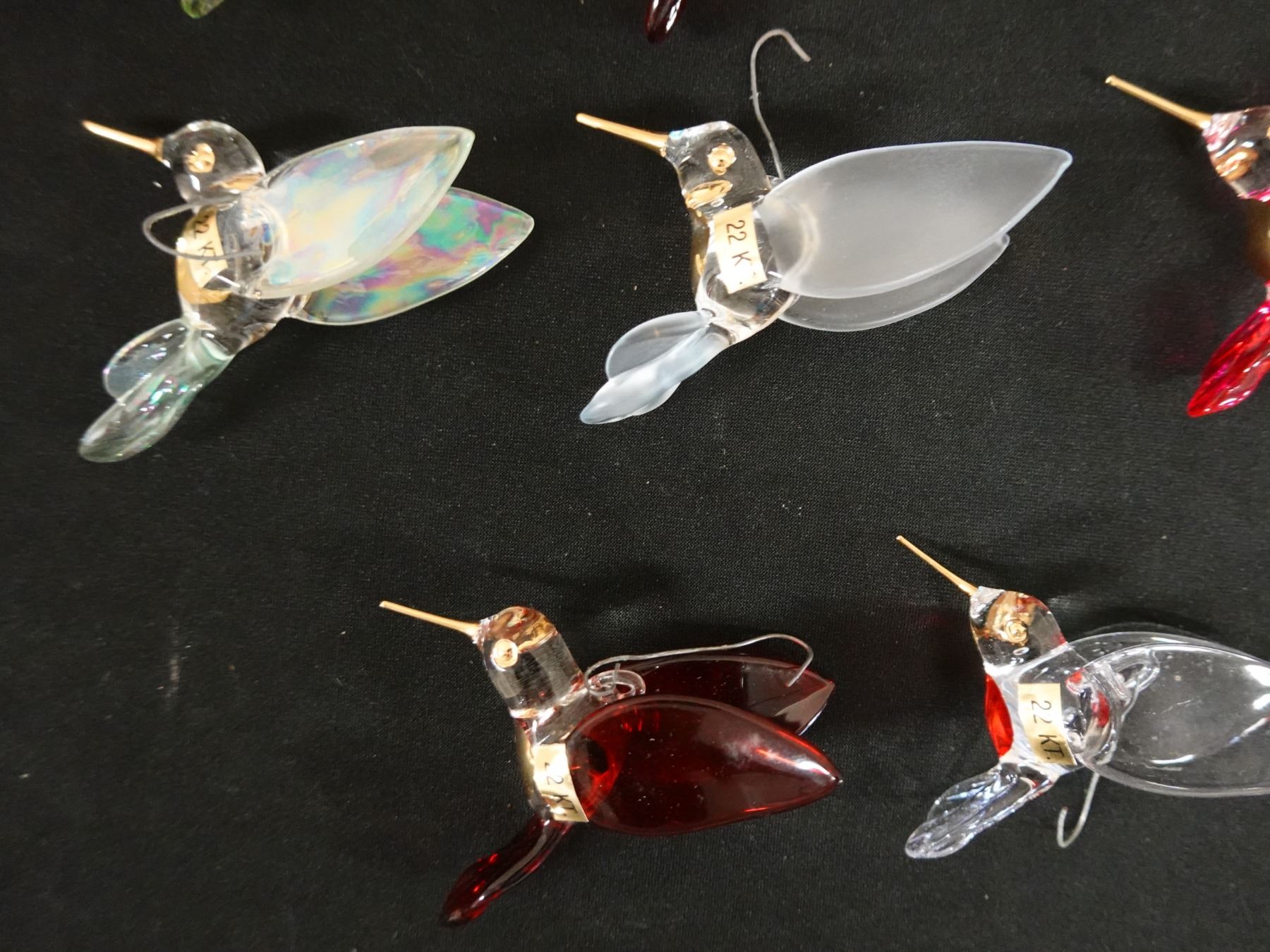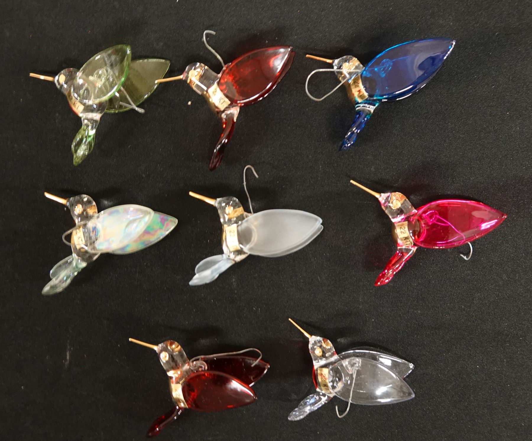 Qty 8 Hummingbird Blown Glass Ornaments w/ 22 Kt Gold Accents Approx. 2.5" Dia