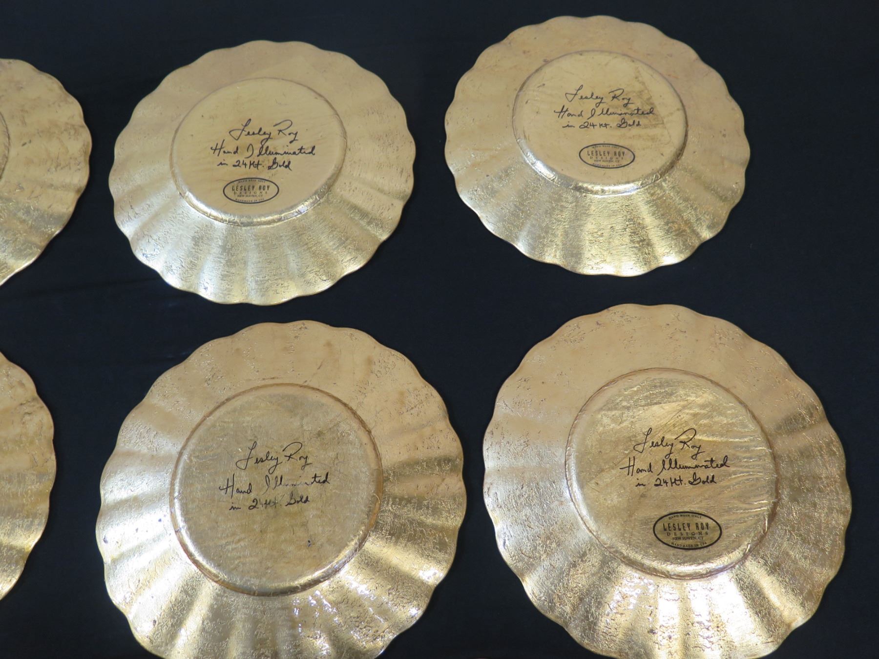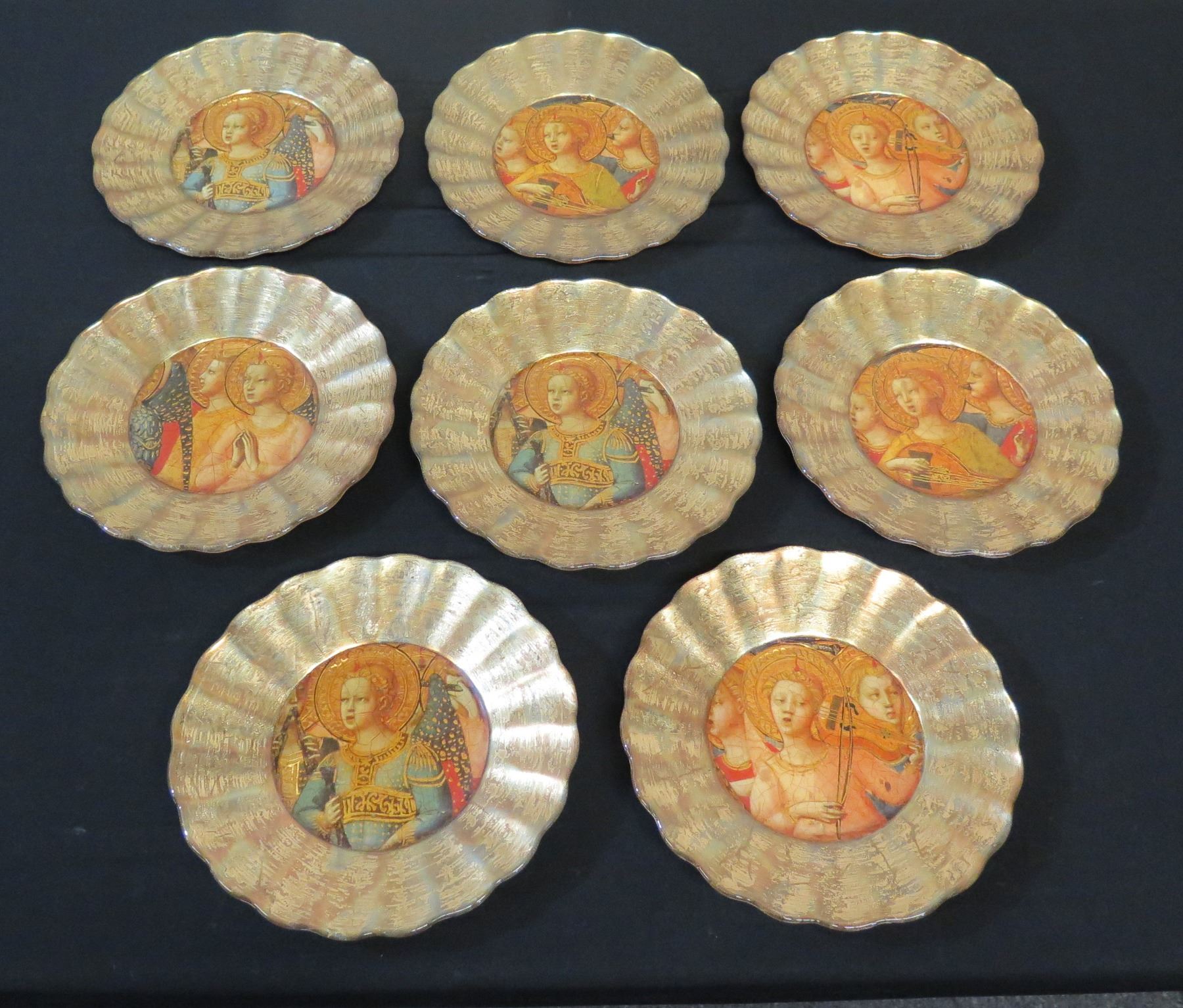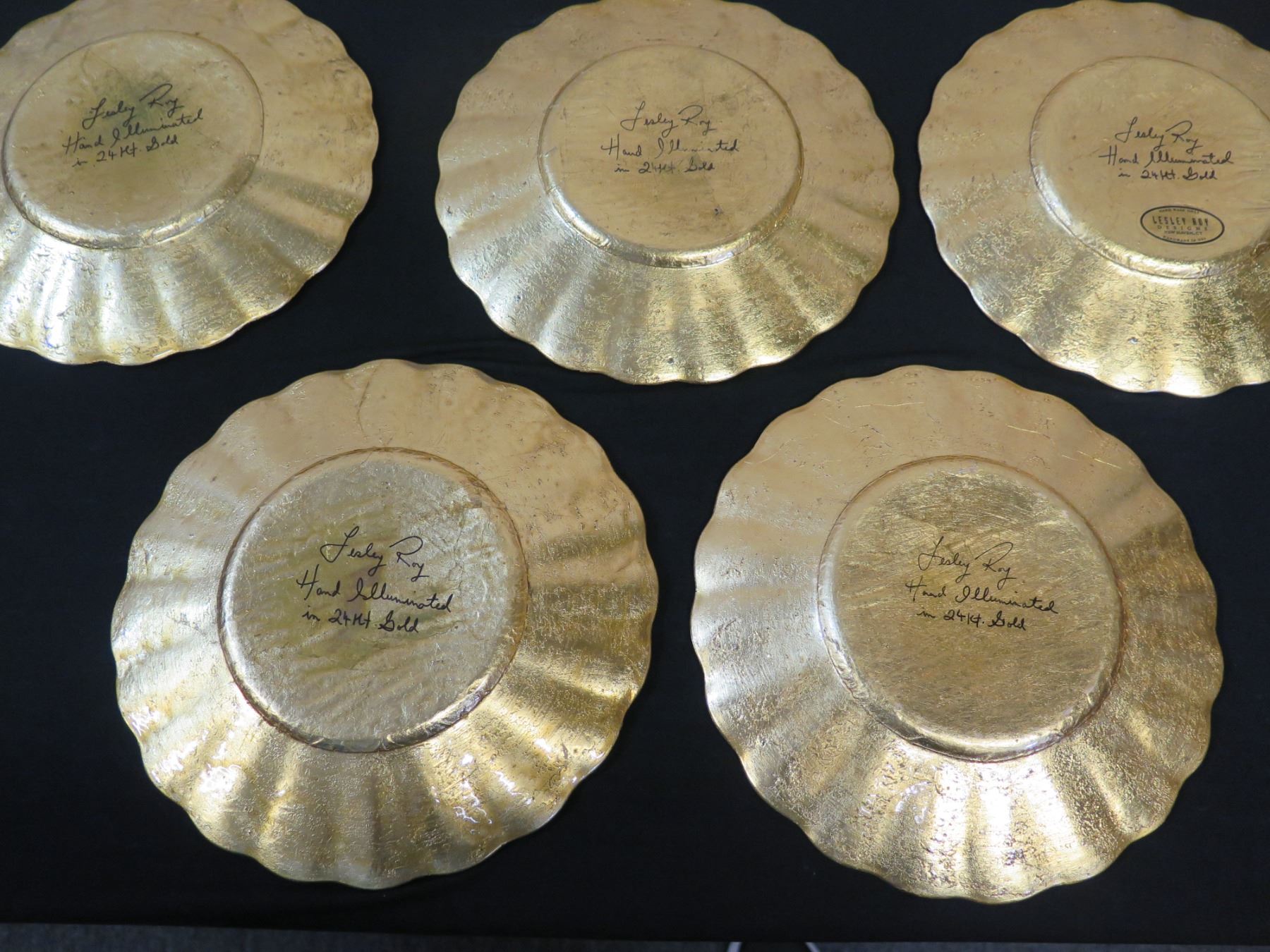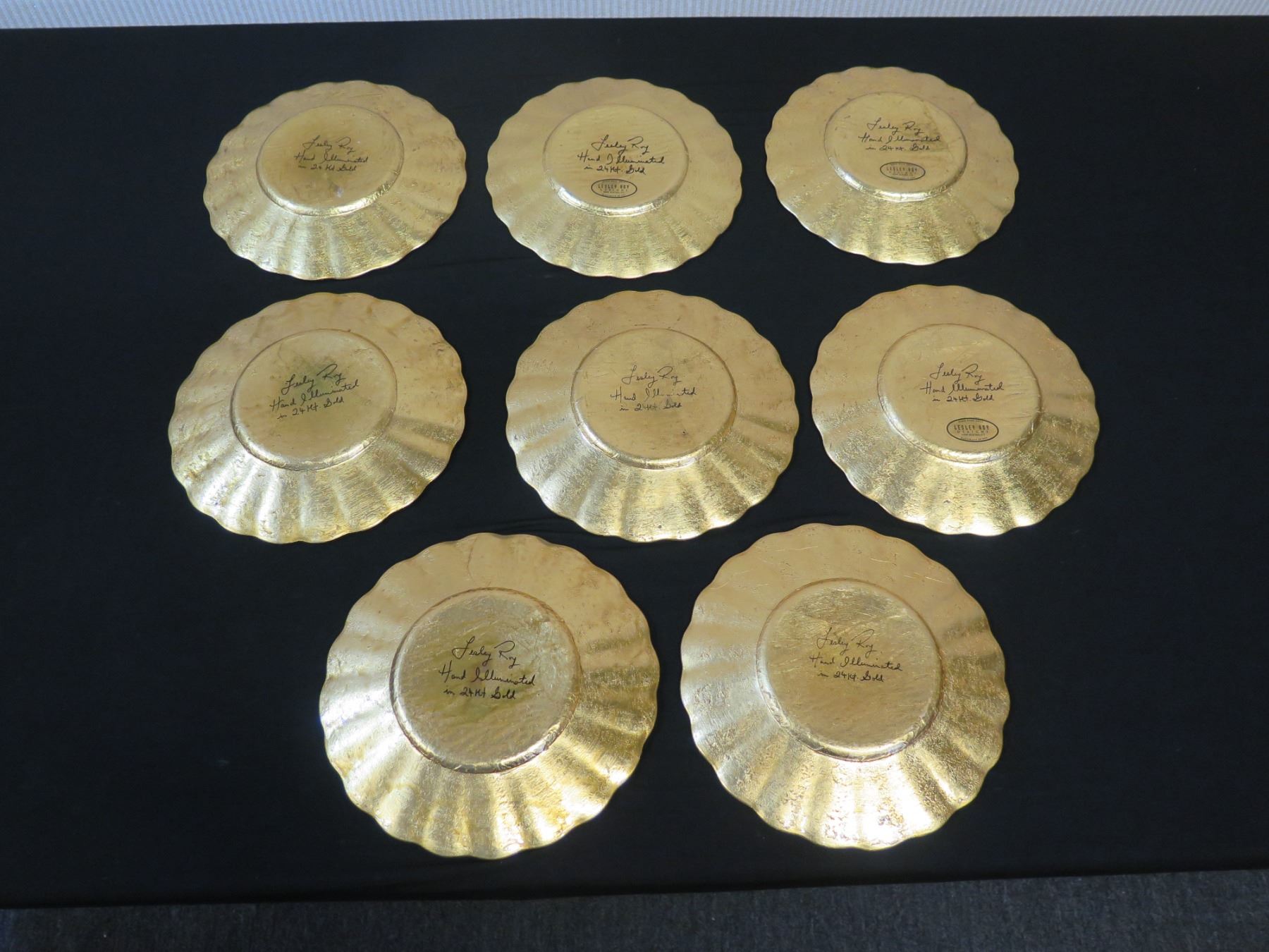 Qty 8 Lesley Roy Hand Illuminated Minstrel Angels Fluted Plates in 24kt Gold 8" dia