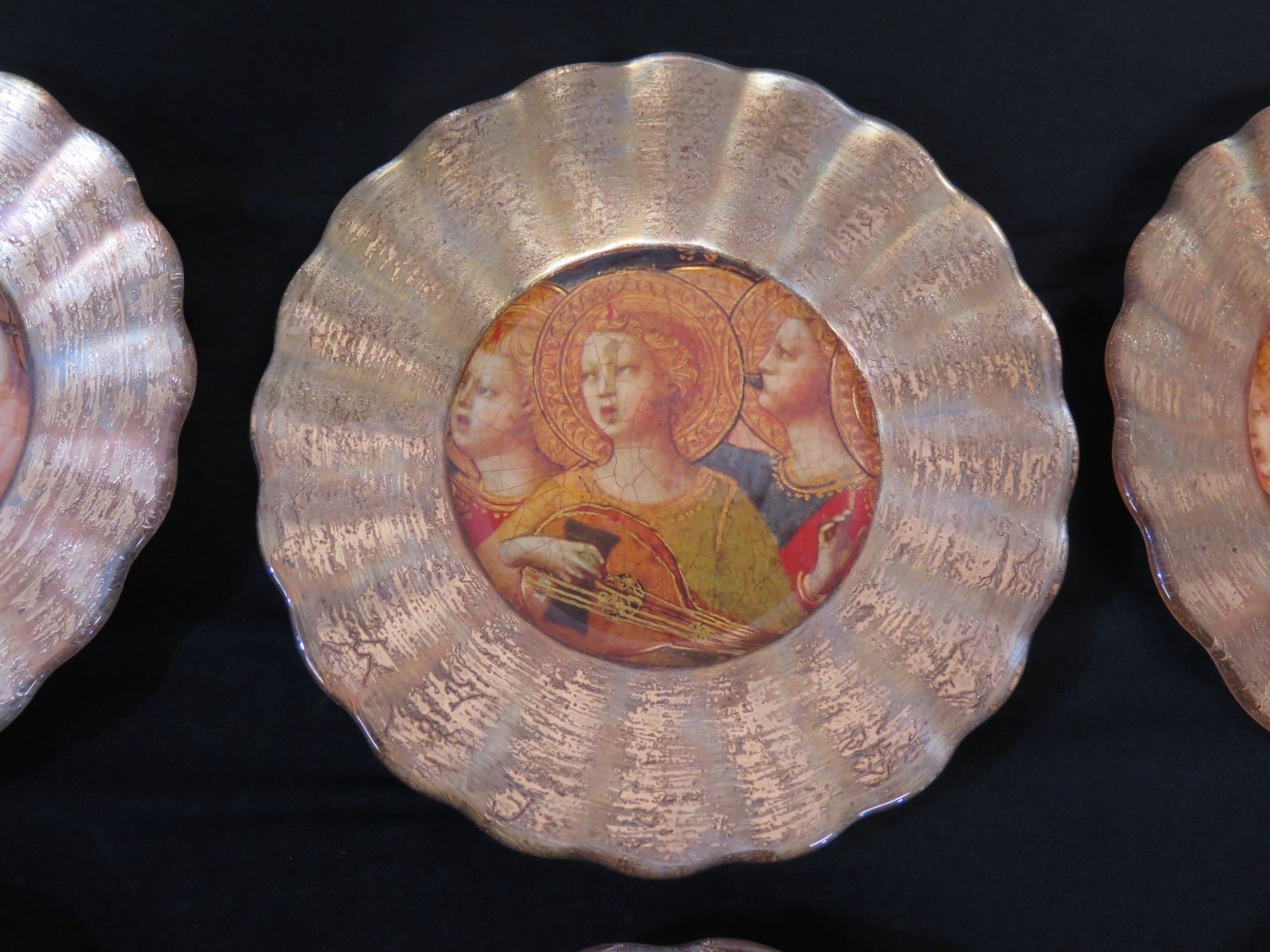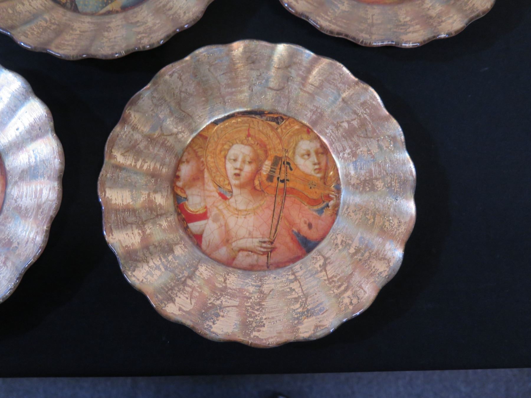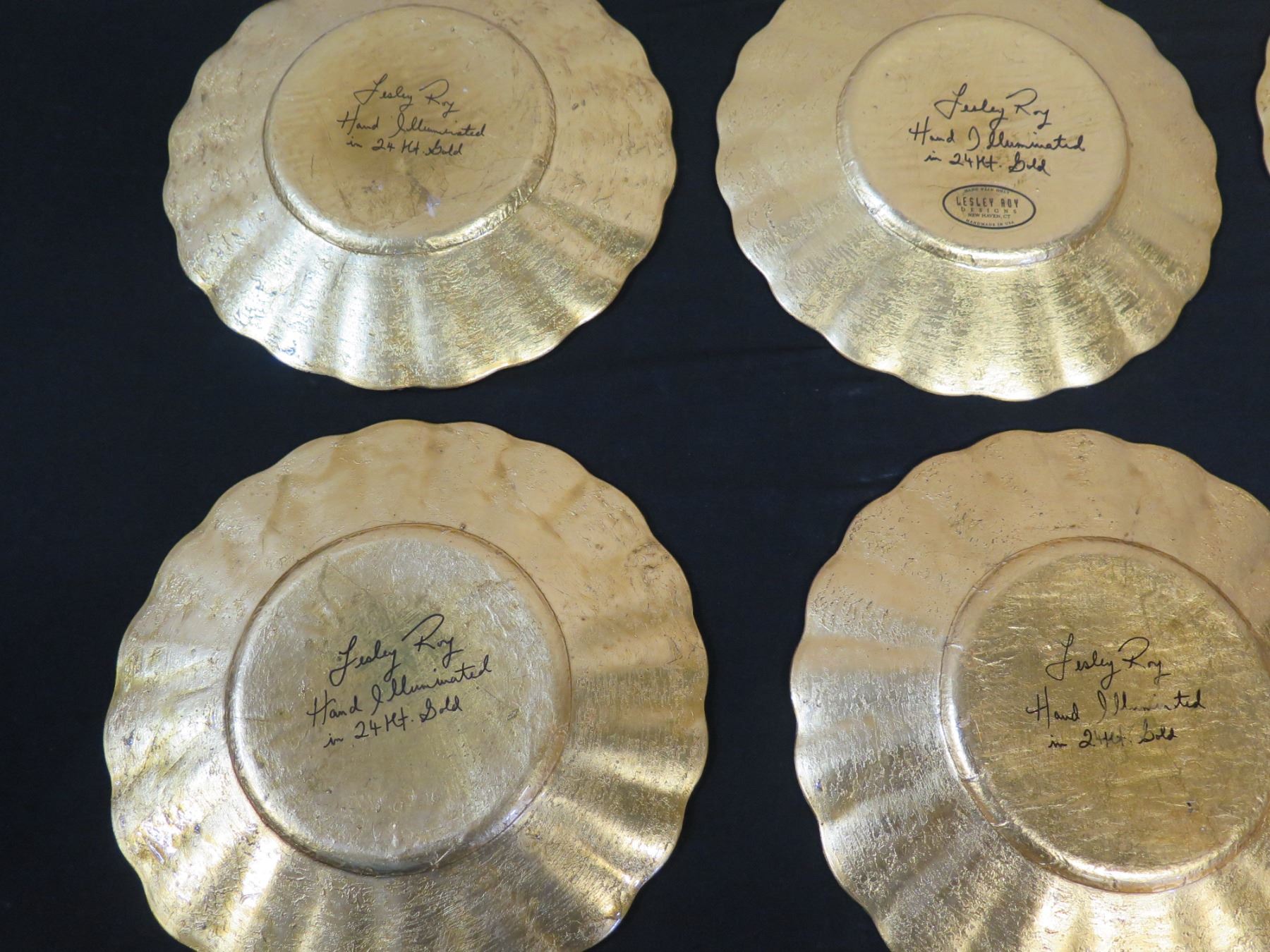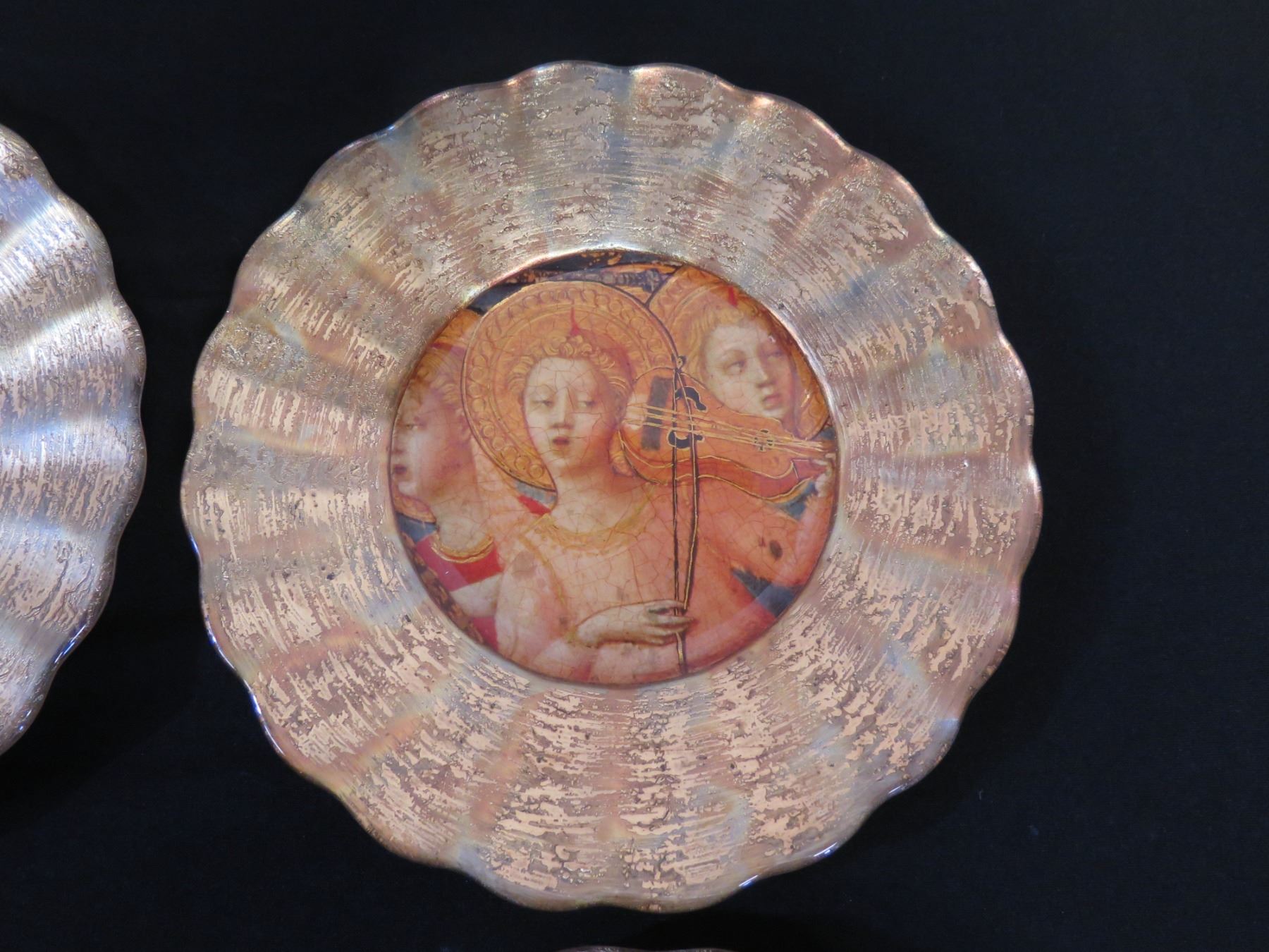 Qty 8 Lesley Roy Hand Illuminated Minstrel Angels Fluted Plates in 24kt Gold 8" dia