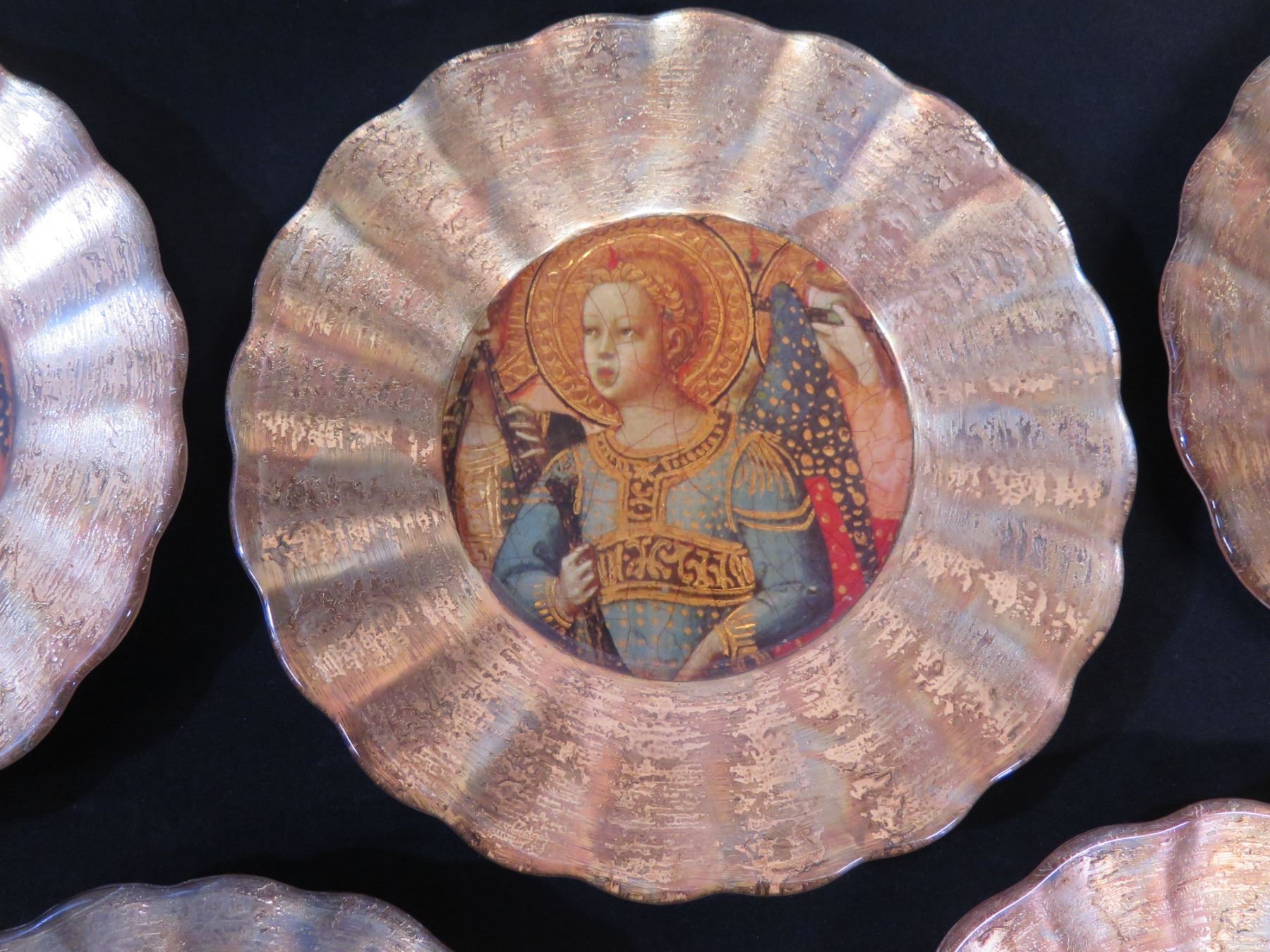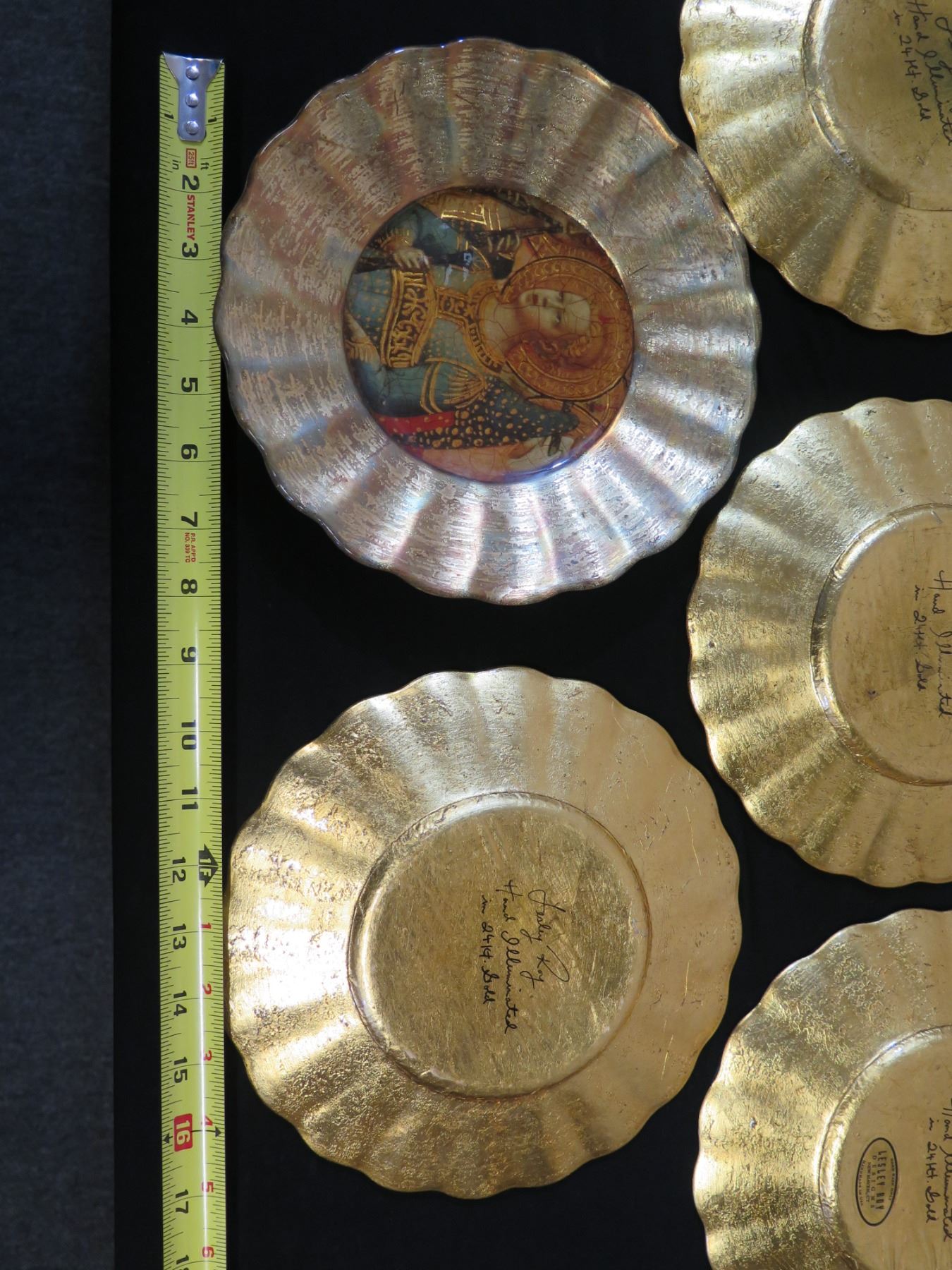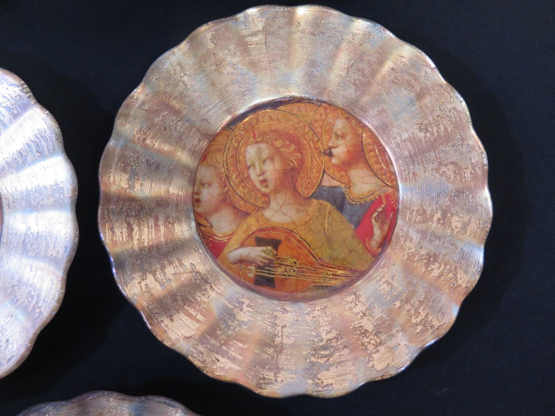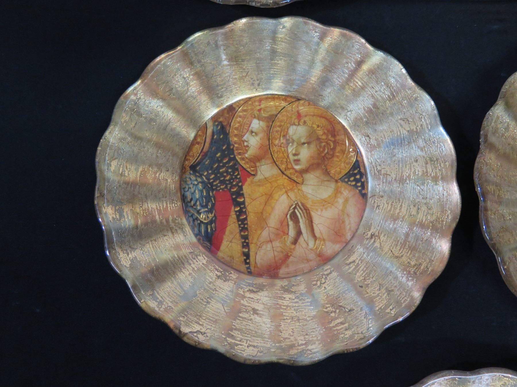 Qty 8 Lesley Roy Hand Illuminated Minstrel Angels Fluted Plates in 24kt Gold 8" dia