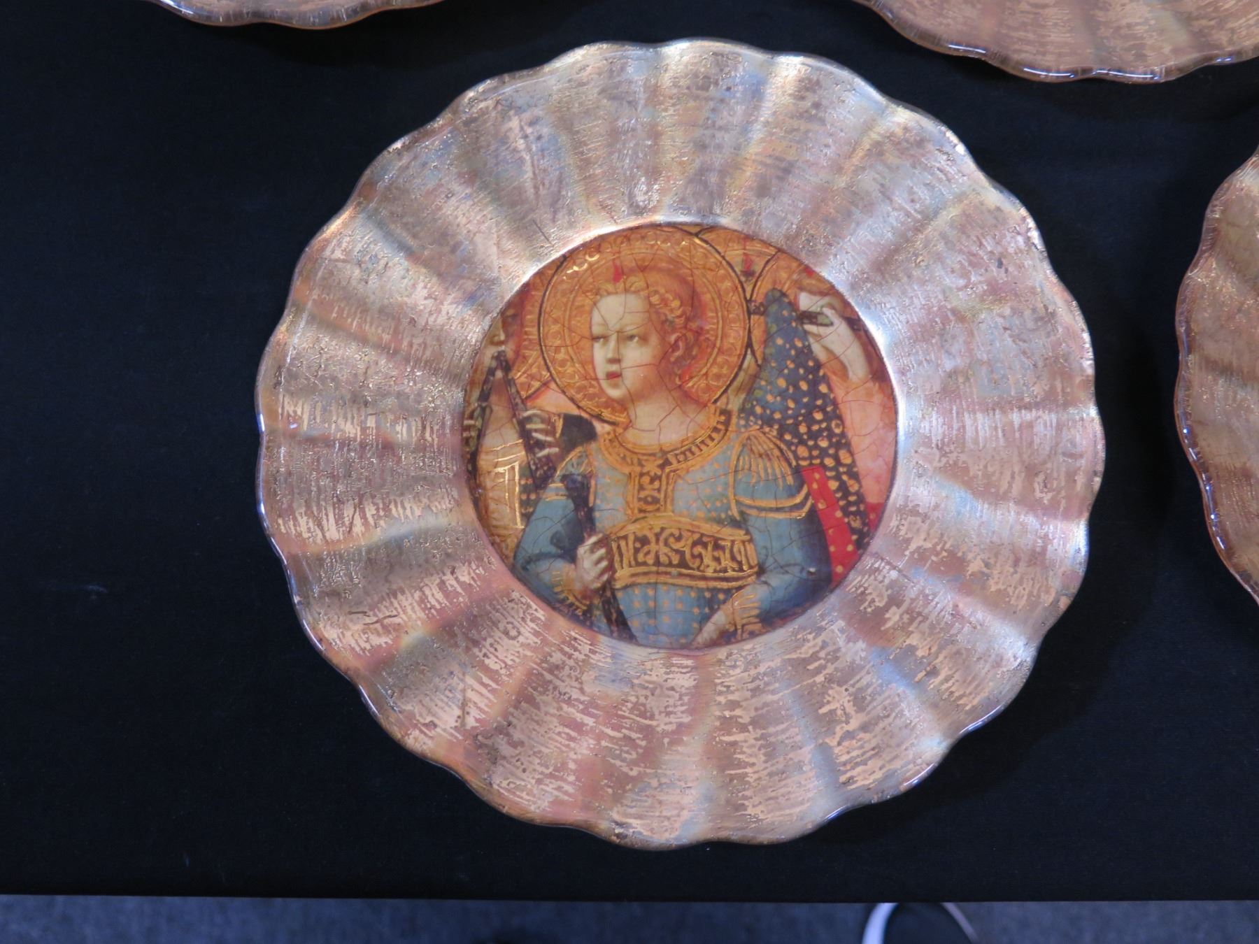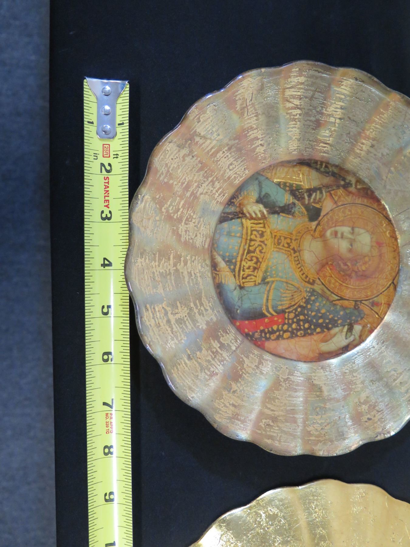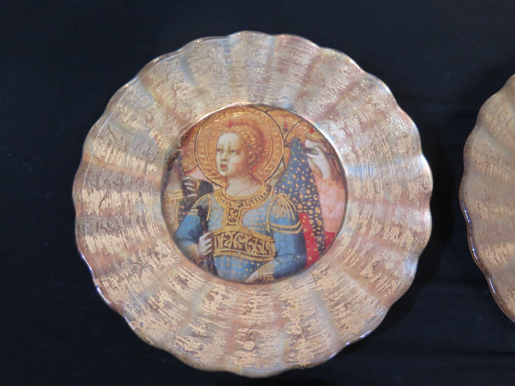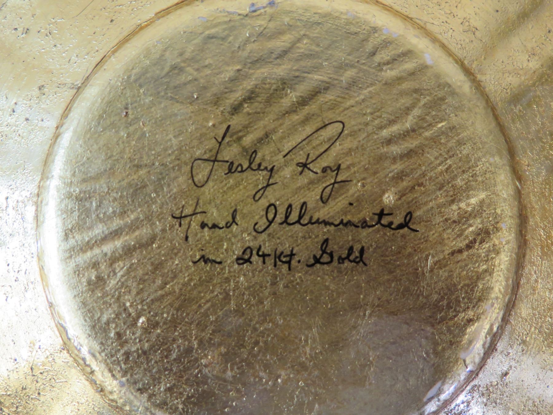 Qty 8 Lesley Roy Hand Illuminated Minstrel Angels Fluted Plates in 24kt Gold 8" dia
