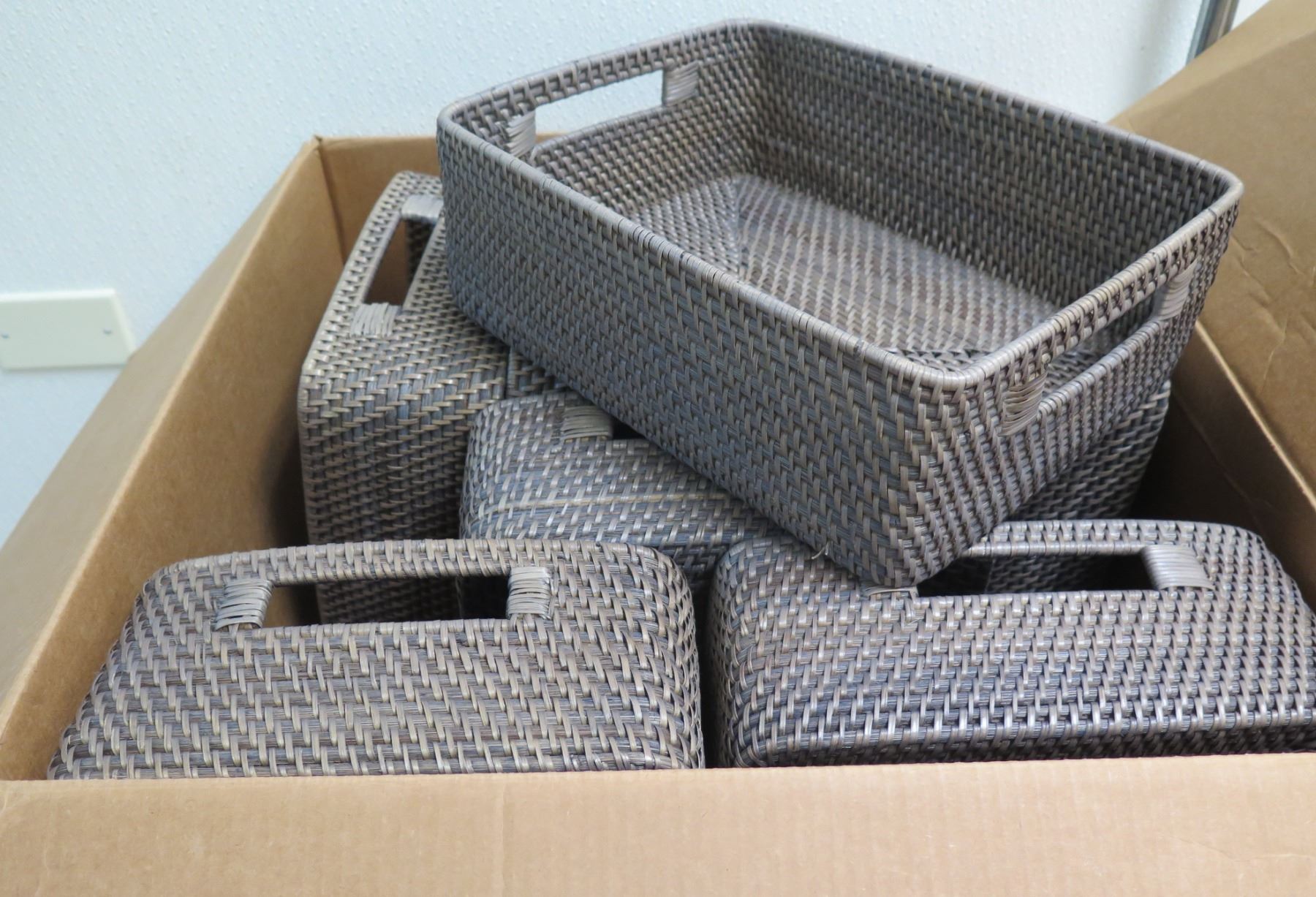 Qty 8 Woven Shoe Boxes w/ Inset Handles 13"x10"x4.5"H